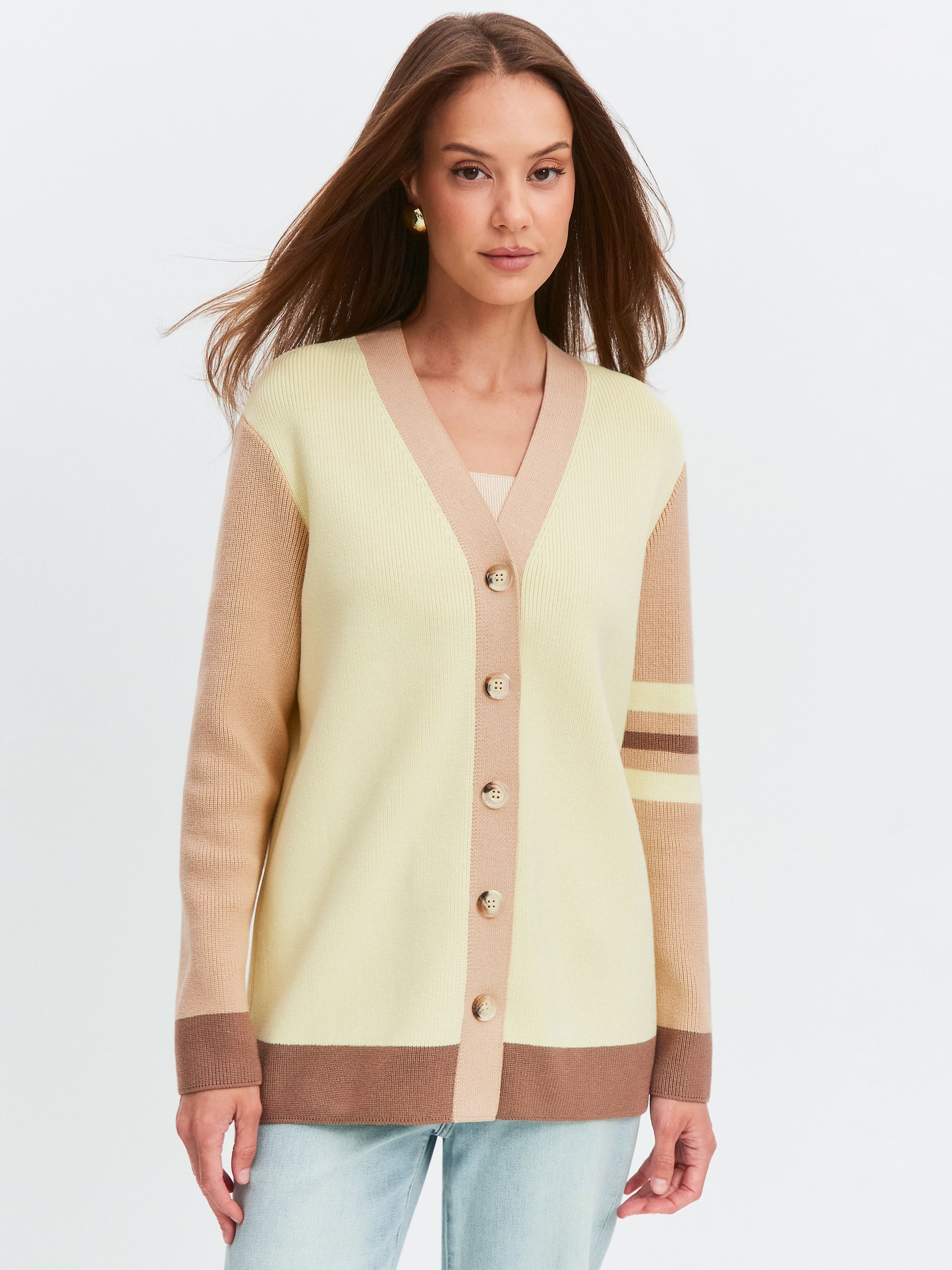 Родос кардиган трикотажный (бледно-желтый/какао, 44-46)