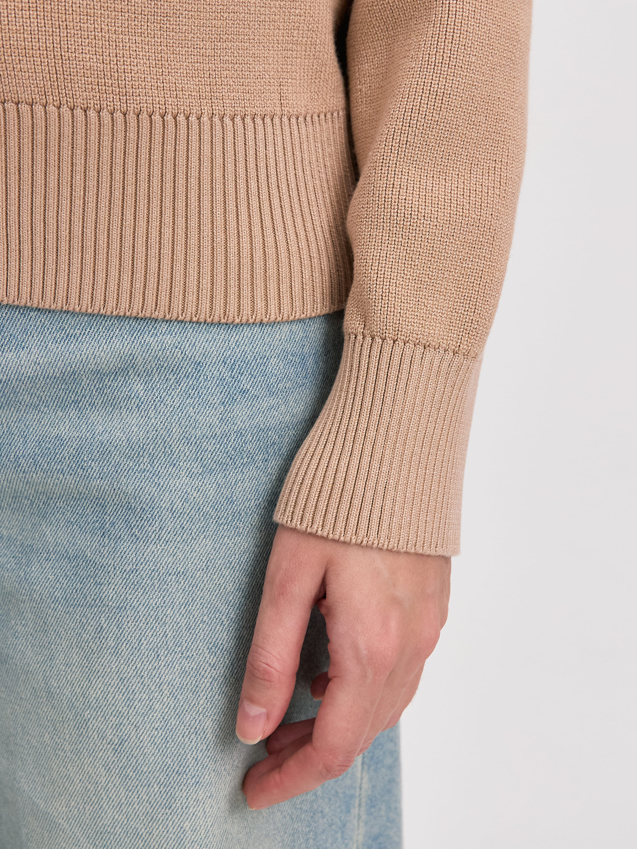 Джемпер лаконичного силуэта с чуть заниженной линией плеча для моментов, когда важно чувствовать себя комфортно и защищенно. Высокий ворот вывязан резинкой и предполагает несколько способов стайлинга, благодаря ряду крупных пуговиц. Горловину можно застегнуть до конца или оставить шею приоткрытой. Хлопковый трикотаж изделия сбалансирован вискозой, которая помогает ему удерживать форму в посадке. Идеальный вариант джемпера для морских прогулок и весенних вечеров. Плотный, дышащий, достаточно просторный, чтобы разместить под собой нижний слой в виде футболки.