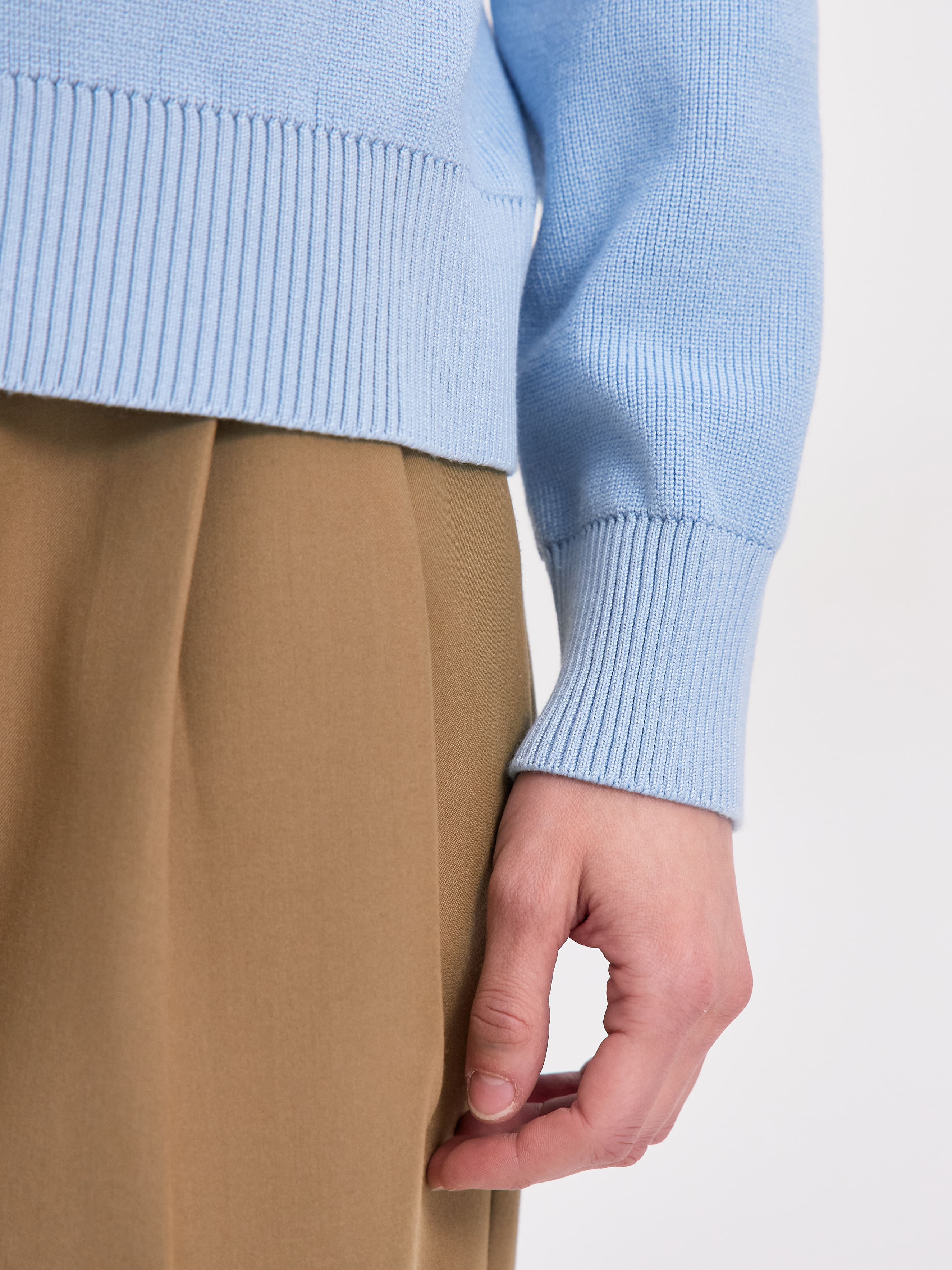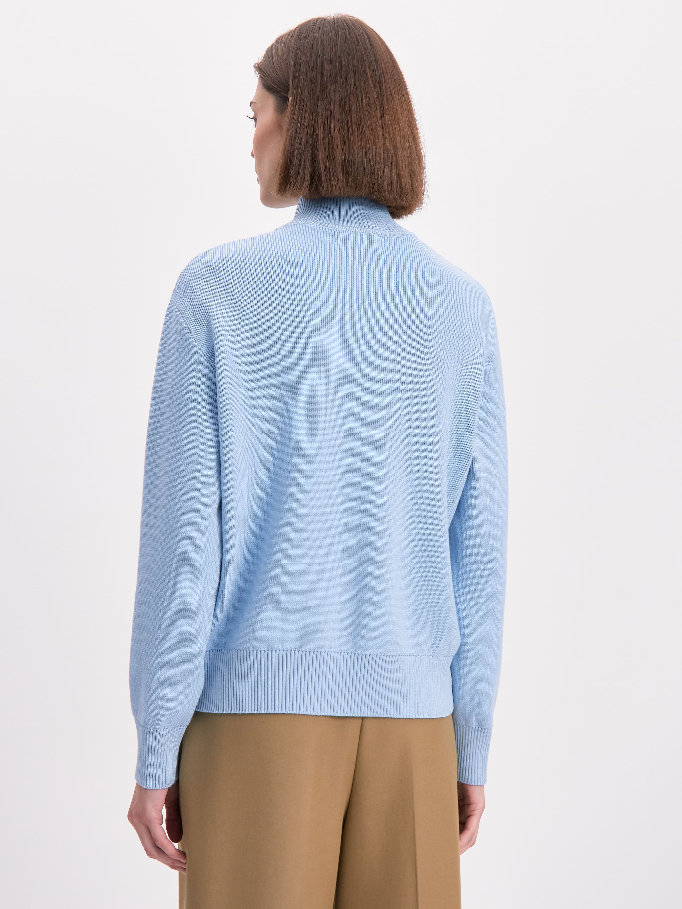 Джемпер лаконичного силуэта с чуть заниженной линией плеча для моментов, когда важно чувствовать себя комфортно и защищенно. Высокий ворот вывязан резинкой и предполагает несколько способов стайлинга, благодаря ряду крупных пуговиц. Горловину можно застегнуть до конца или оставить шею приоткрытой. Хлопковый трикотаж изделия сбалансирован вискозой, которая помогает ему удерживать форму в посадке. Идеальный вариант джемпера для морских прогулок и весенних вечеров. Плотный, дышащий,  достаточно просторный, чтобы разместить под собой нижний слой в виде футболки.
