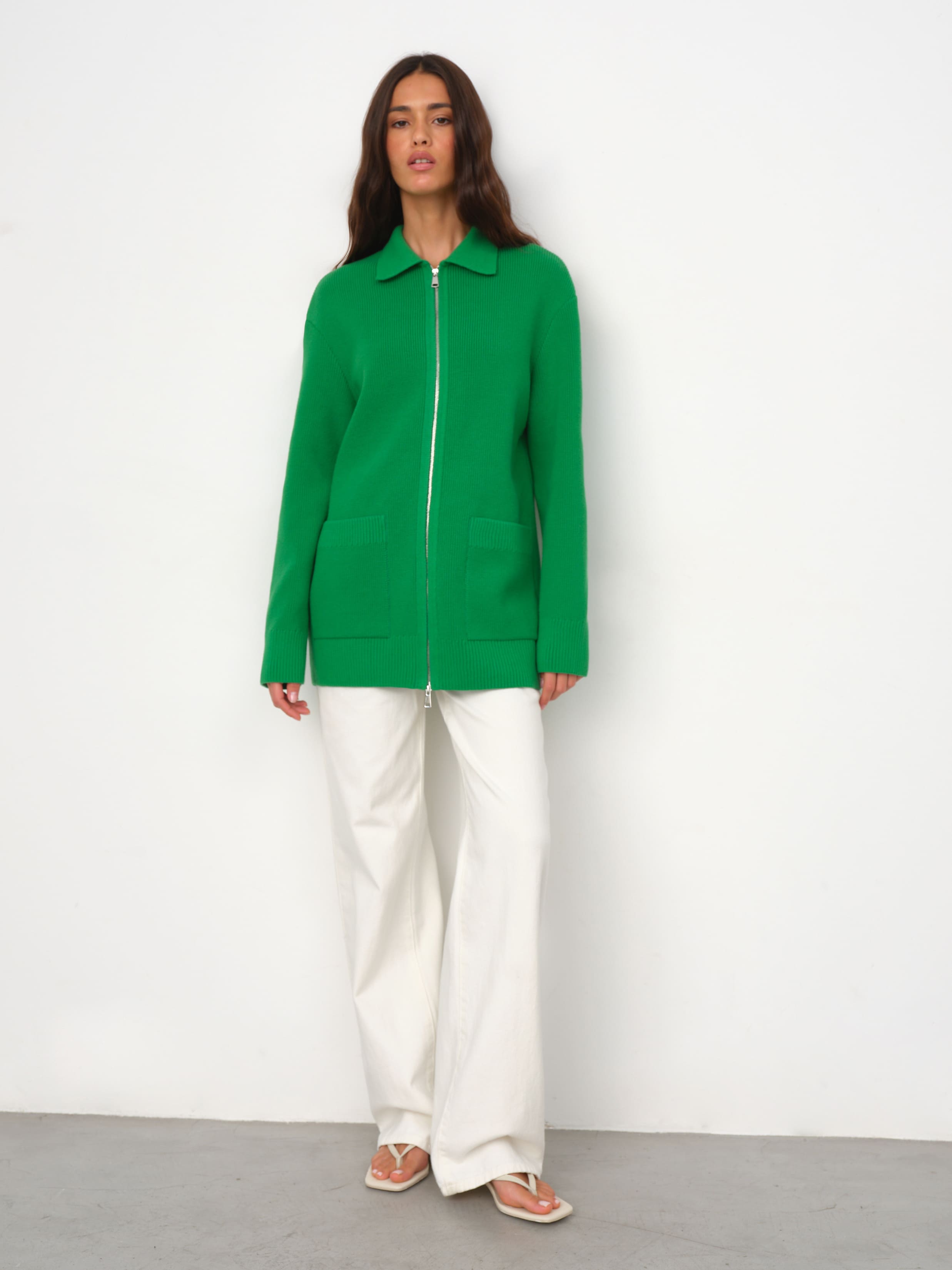 Лаконичный кардиган из премиального хлопка предназначен для дней, которые хочется провести на предельном релаксе. Ключевая деталь фасона – молния с двойным ходом, расстегивающаяся одновременно сверху и снизу. Такая фишка позволяет каждый раз по-новому обыгрывать кардиган. Мягкий натуральный трикотаж превосходно вентилируется и даже в летние месяцы телу в нем потрясающе комфортно. Модель с максимальной стилевой нейтральностью, поэтому легко комбинируется с чем угодно.