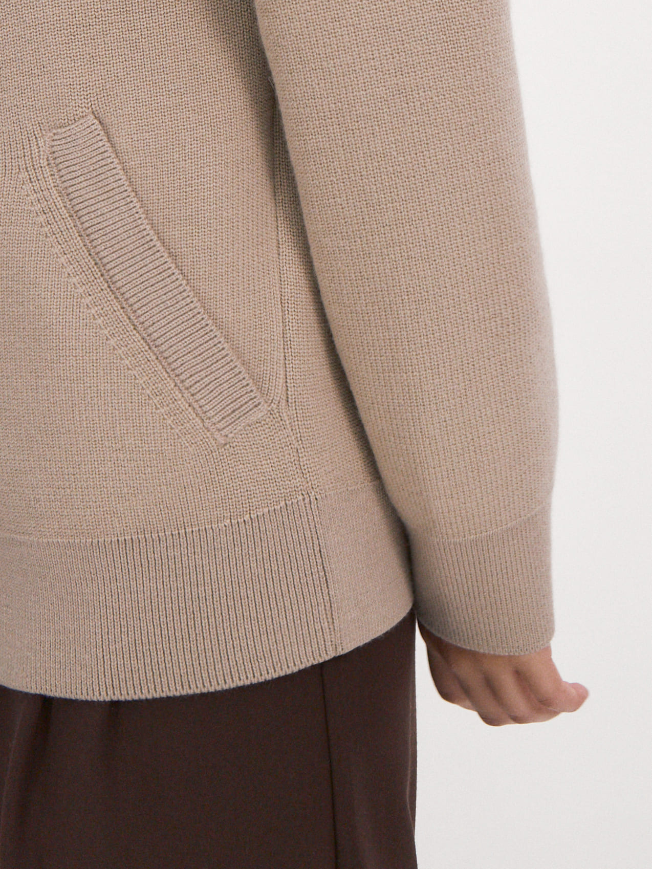 Теплый кардиган с рукавом реглан, удобными боковыми карманами и отделанным резинкой низом. Мягкие линии силуэта и свободная посадка позволяют задействовать изделие в неограниченном количестве образов. Доминирующее волокно – шерсть австралийского мериноса, которая оптимальна для чувствительной кожи. Мы использовали премиальную пряжу с включением воздушного акрила, делающим натуральную нить шелковистой, а само полотно – еще более легким. Результат: носить кардиган, не ощущая шершавости и покалывания шерстяных ворсинок, можно даже поверх самых тонких блузок.
