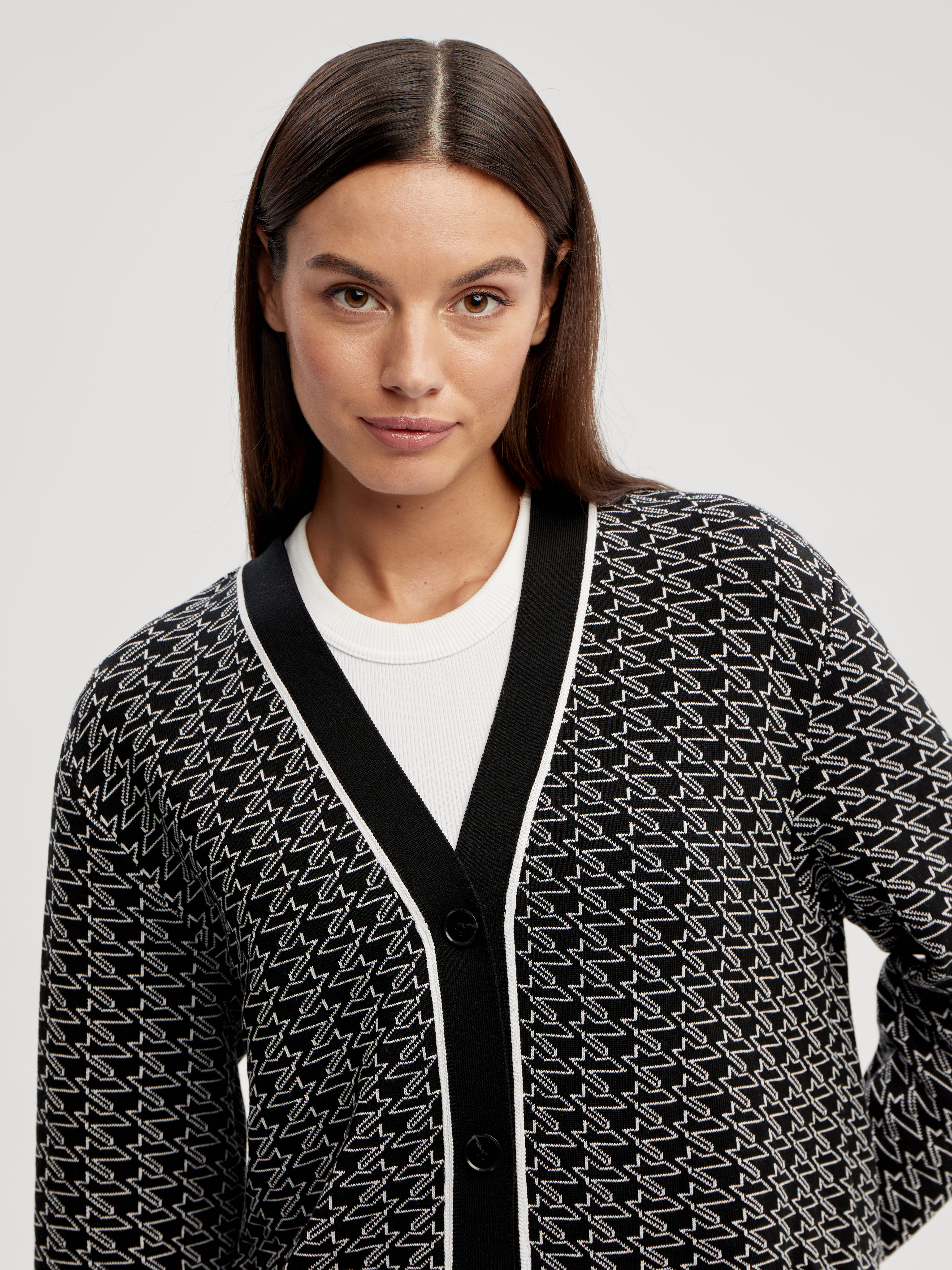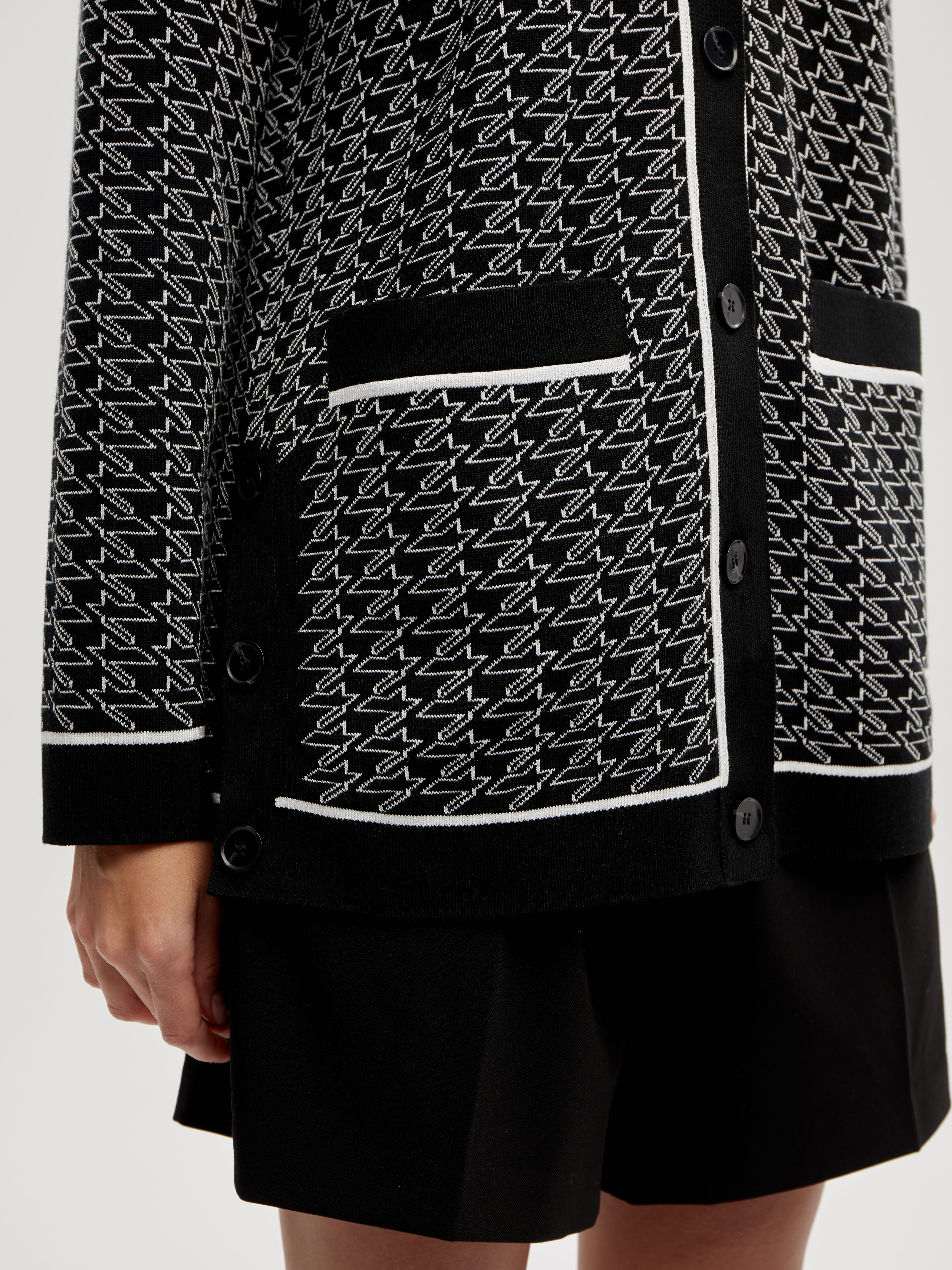 Стильный кардиган из шелковистой, приятной телу вискозы создавался, чтобы поддержать тренд на тактильность. В итоге трикотаж приобрел оптимальную плотность, но остался невероятно комфортным на ощупь. Удлиненная модель дополнительно усилена сложным принтом, так что станет ярким акцентом в любом повседневном образе.