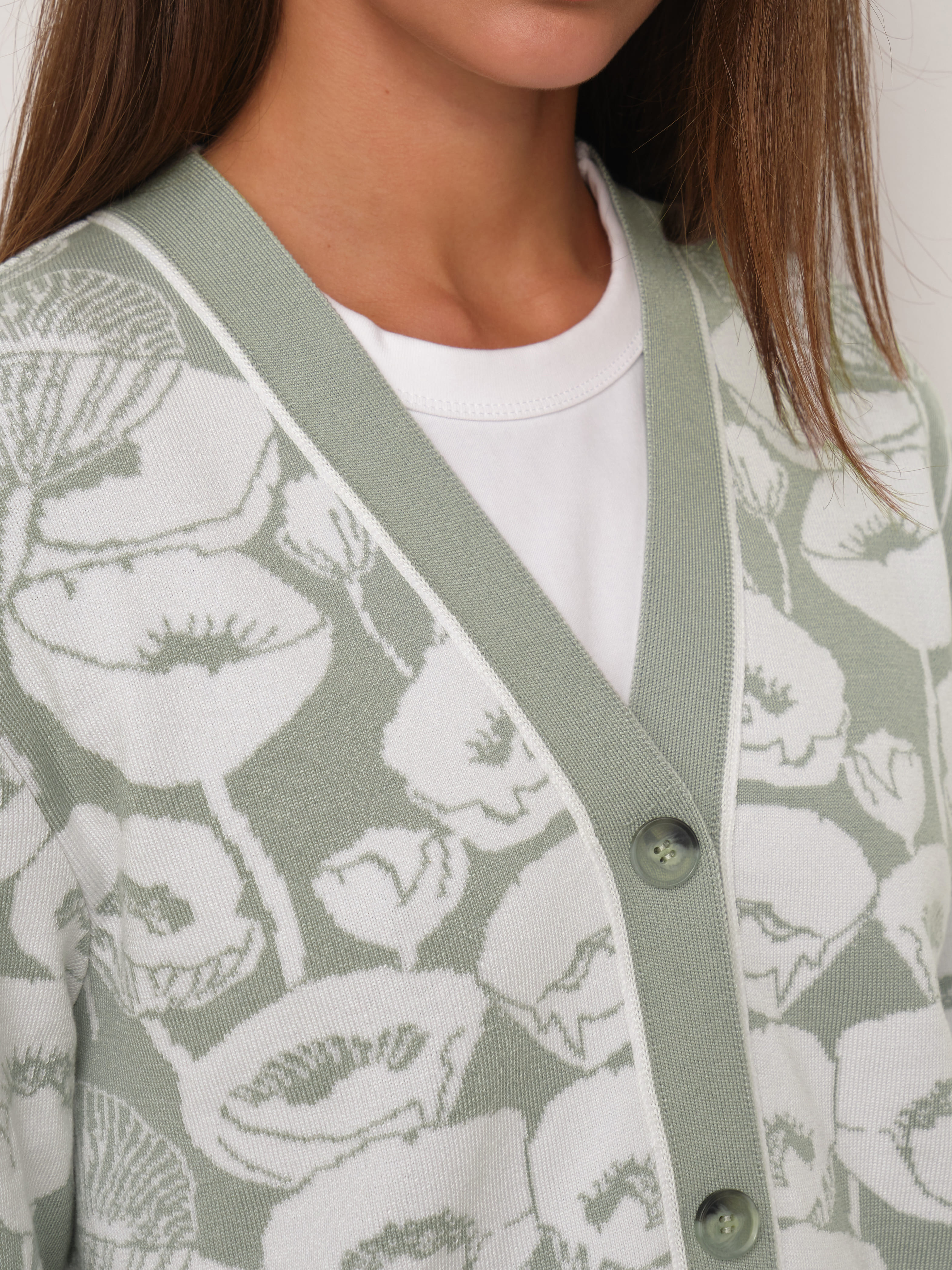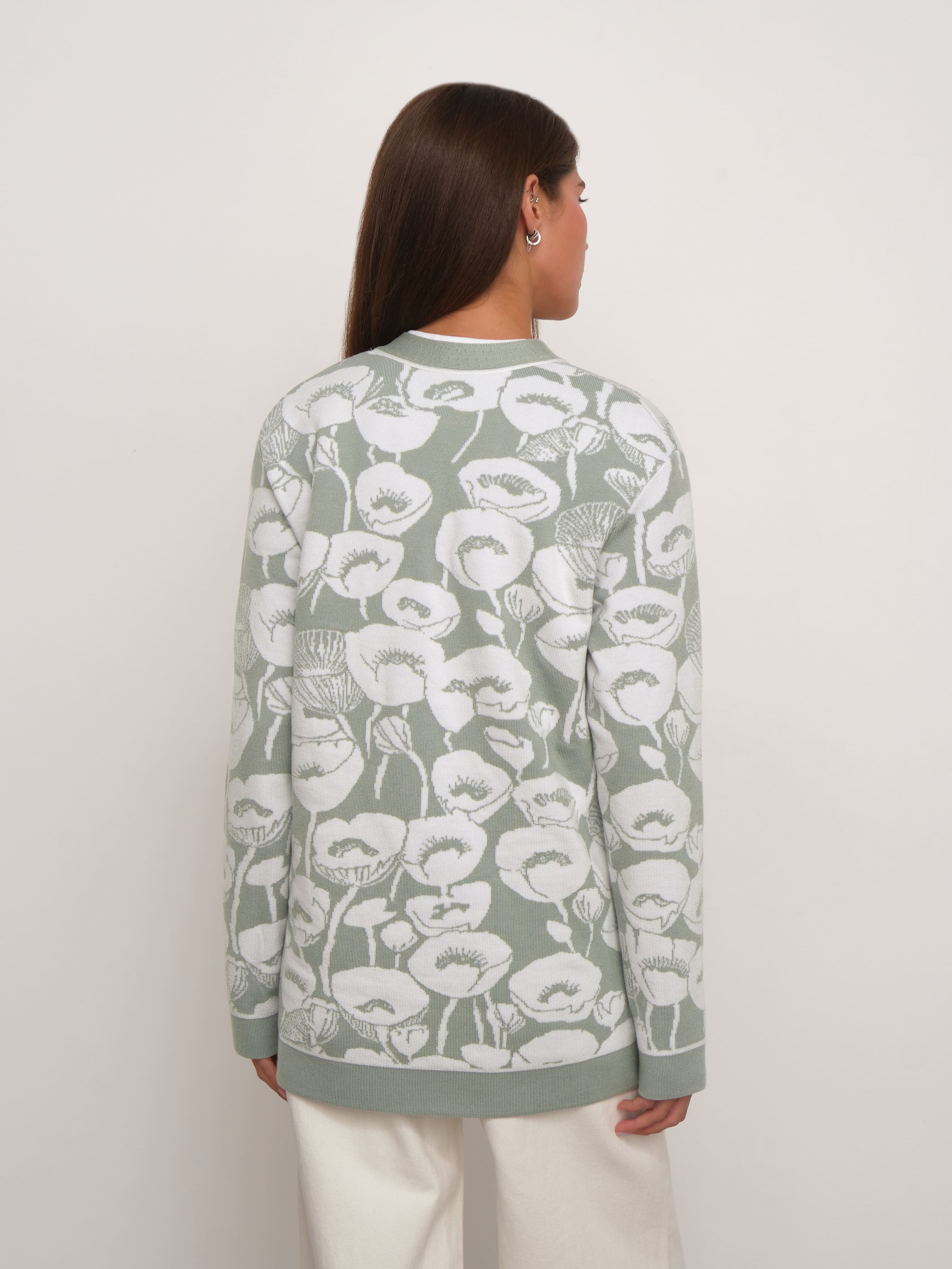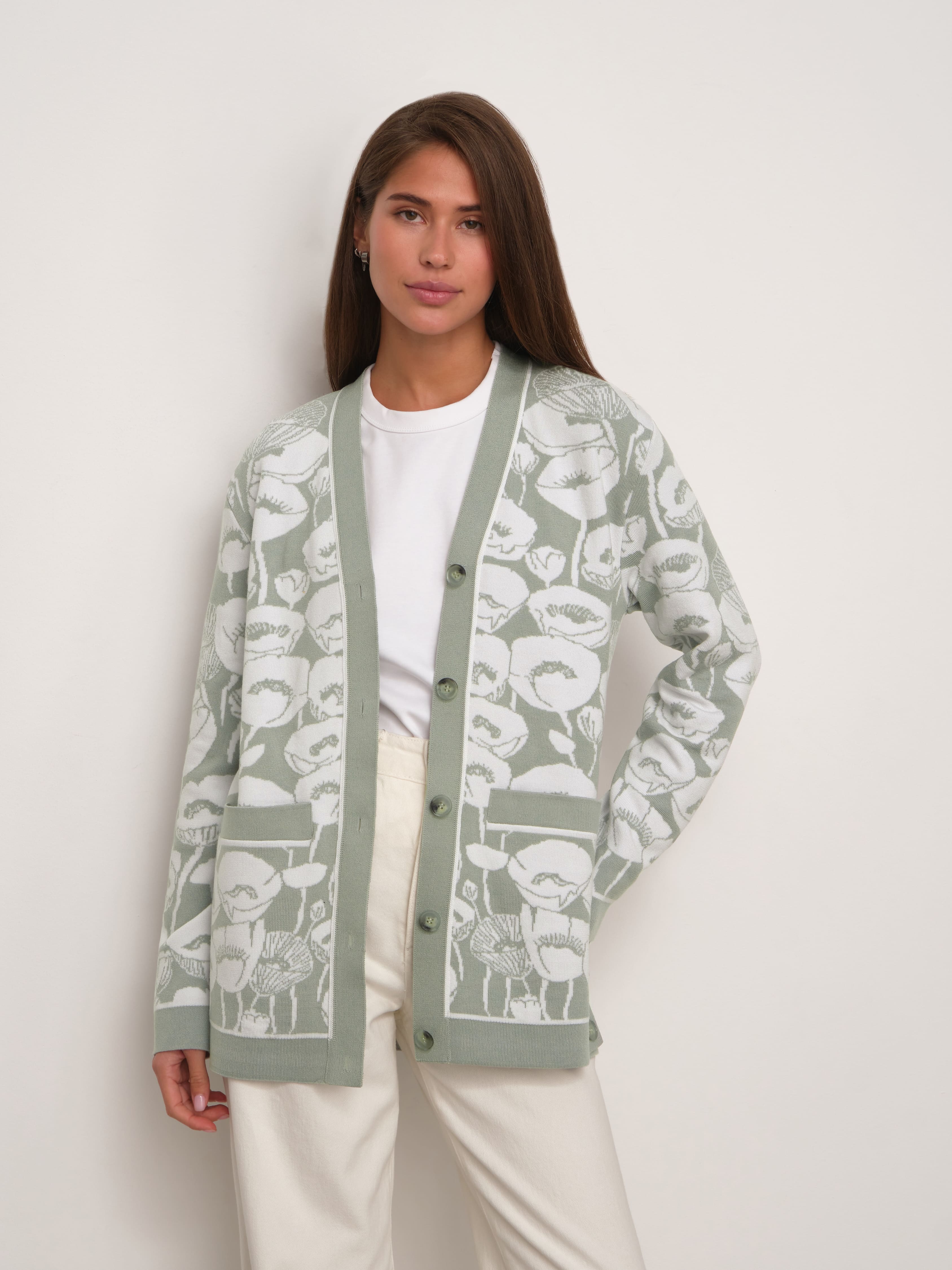 Стильный кардиган из шелковистой, приятной телу вискозы создавался, чтобы поддержать тренд на тактильность. В итоге трикотаж приобрел оптимальную плотность, но остался невероятно комфортным на ощупь. Удлиненная модель дополнительно усилена сложным принтом, так что станет ярким акцентом в любом повседневном образе.