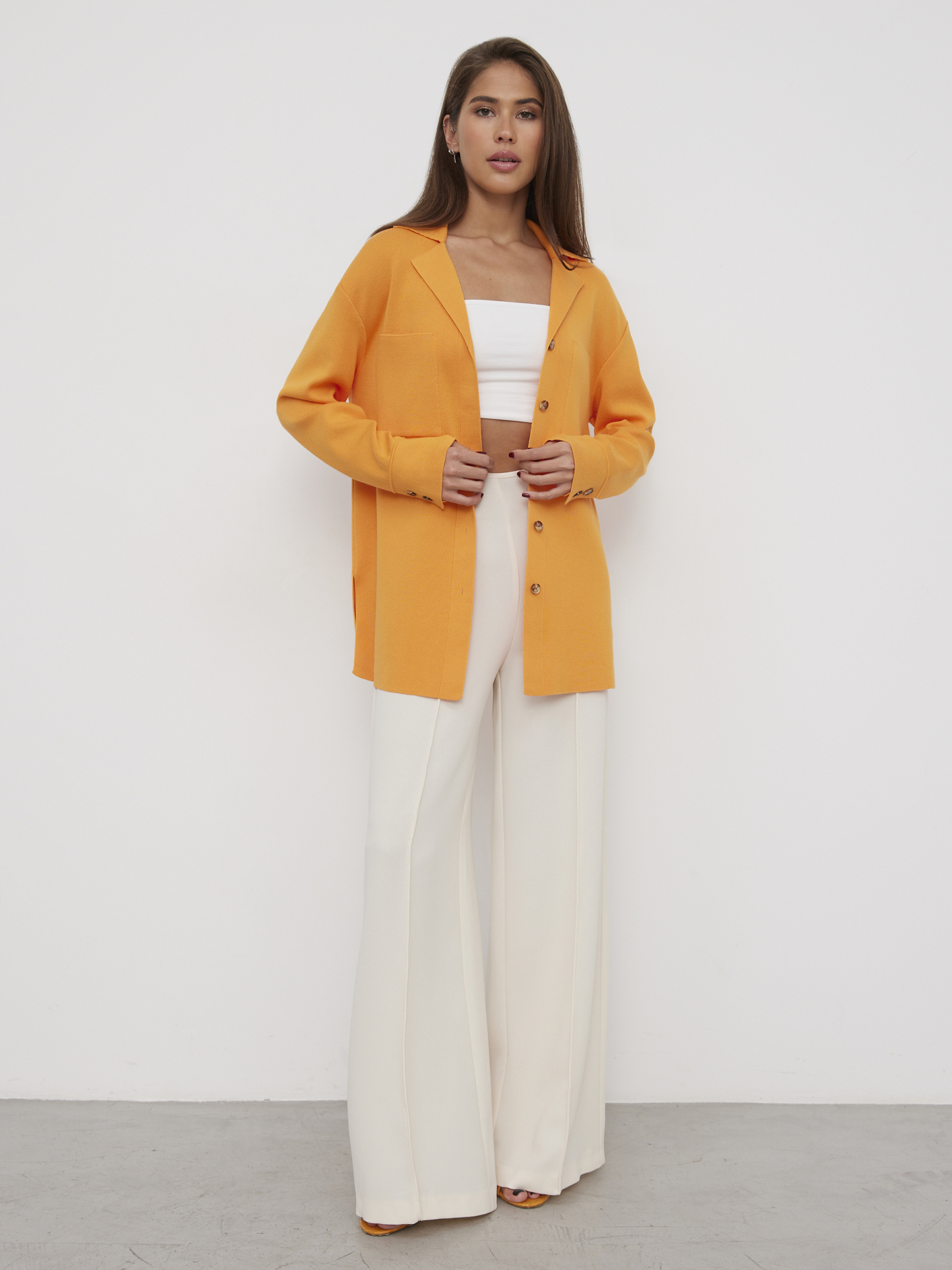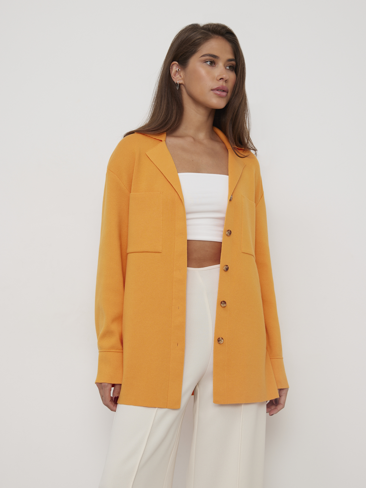 Невероятно пластичный кардиган рубашка станет идеальным вторым слоем на лето и весну. Найдите для него местечко в чемодане для отпуска. На морских прогулках рубашка с разрезами защитит от солнца и подарит приятную прохладу. Безупречная гладкость трикотажа из тонкой, скользящей вискозы порадует тело деликатными прикосновениями.
