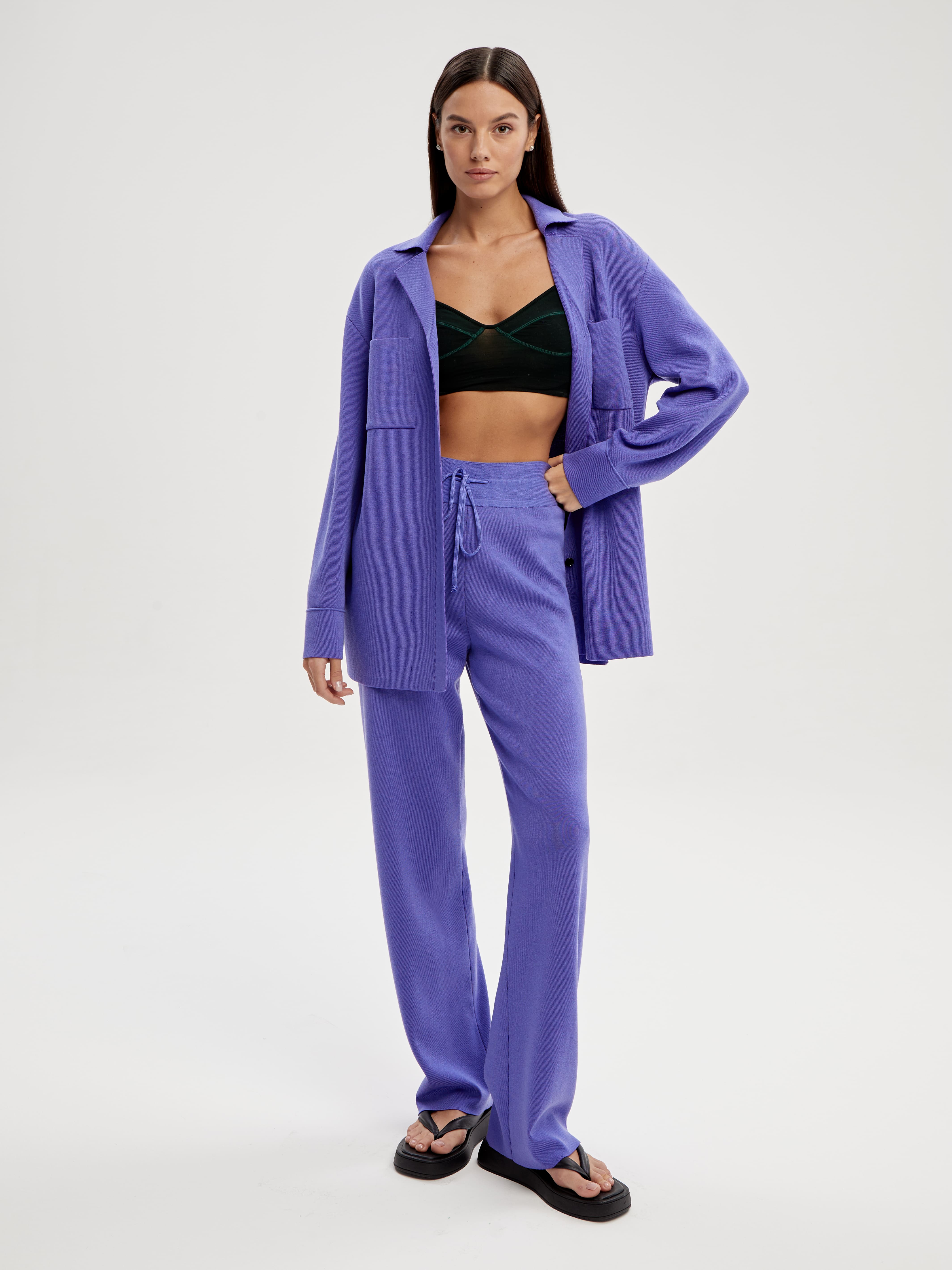 Добиться гладкой фактуры этого костюма нам помогла премиальная вискозная пряжа. В сочетании с непринужденностью посадки и аристократичным дизайном это еще на одну ступеньку приблизило комплект к стилю "олд мани". Костюм не требует сложных стилизаций – просто возьмите в руки модную сумочку и добавьте на шею яркий аксессуар. Трикотаж с таким составом качественно проводит воздух, долго сохраняет вид нового и на порядок легче традиционного хлопка.