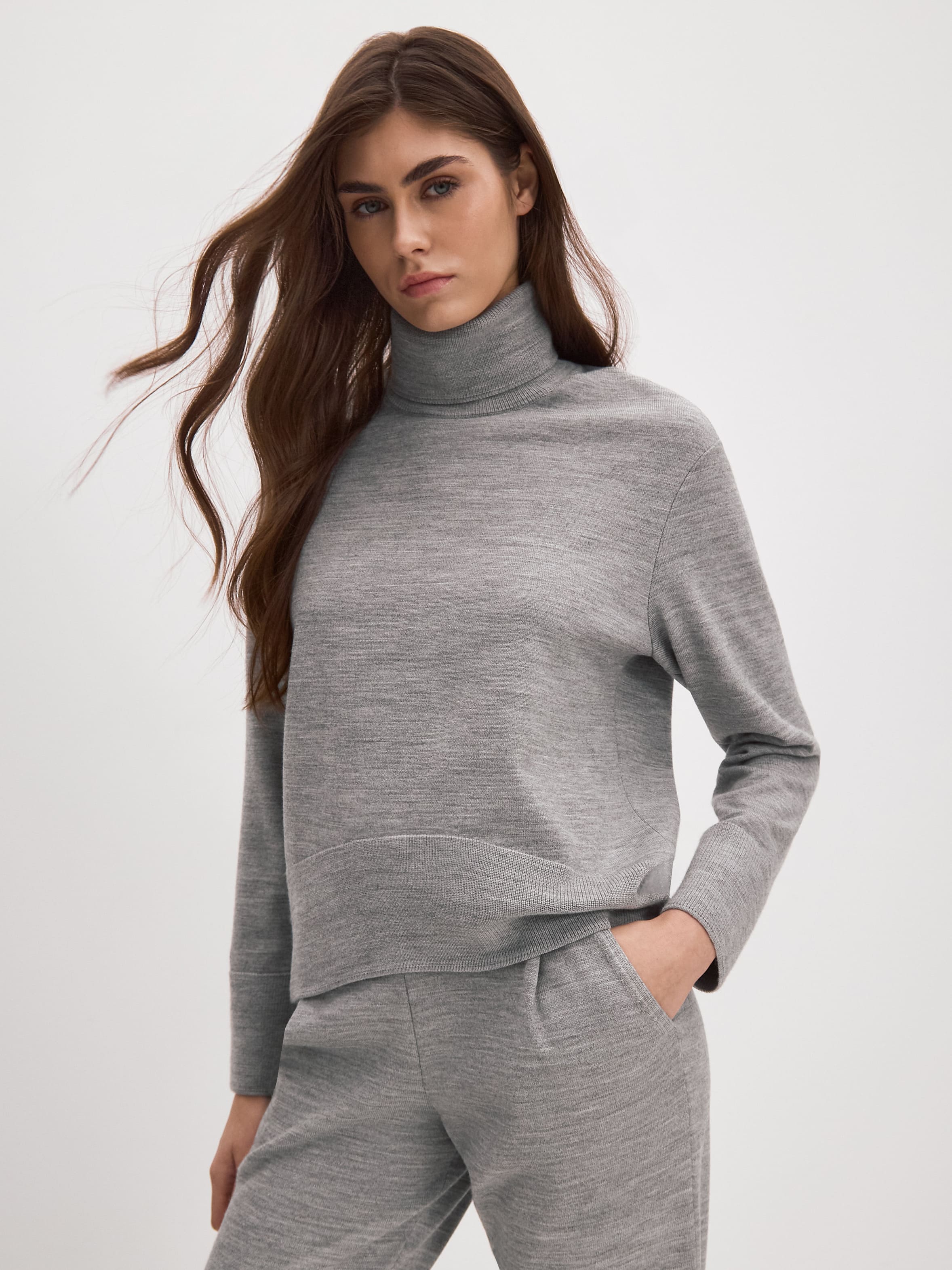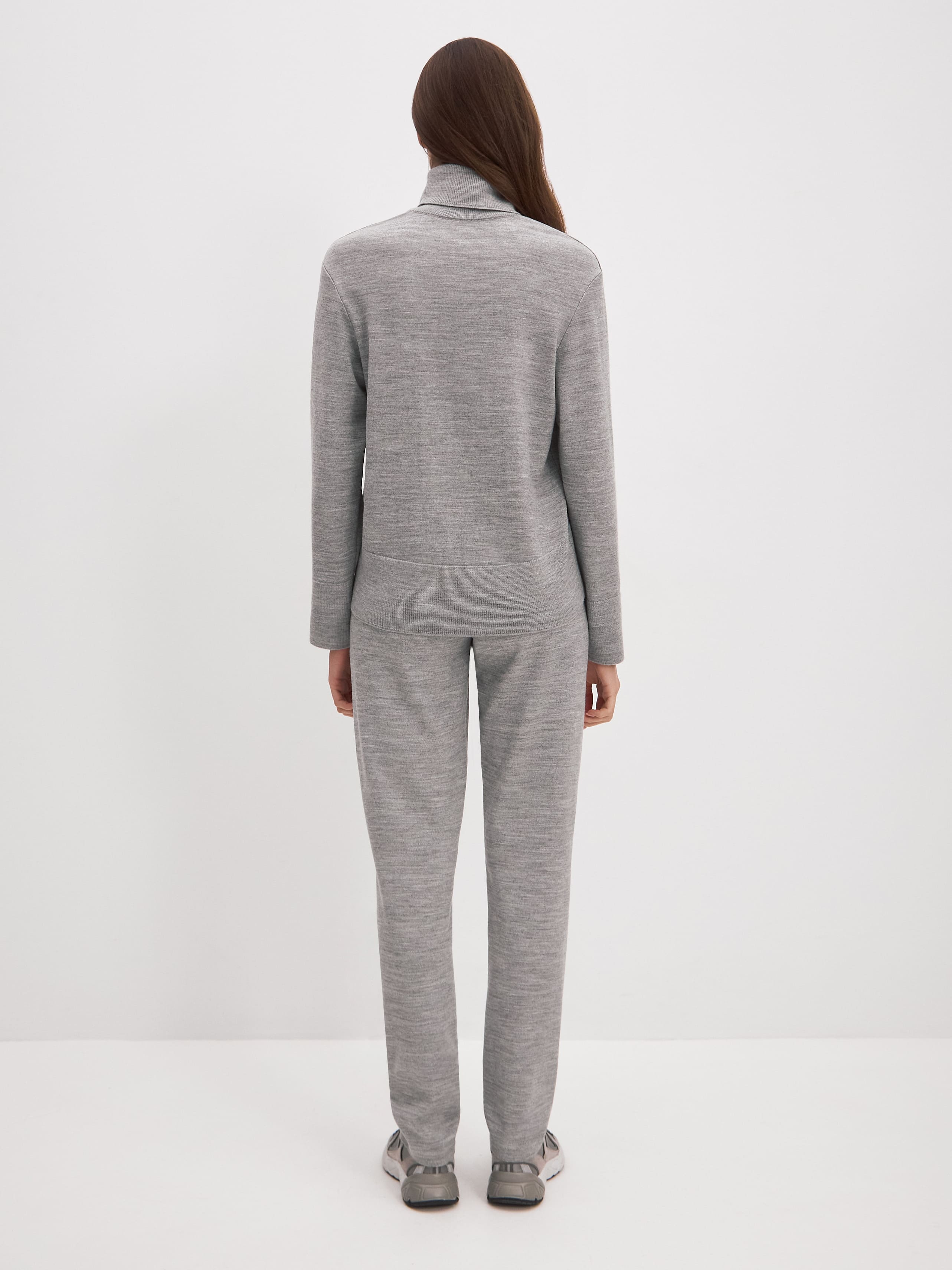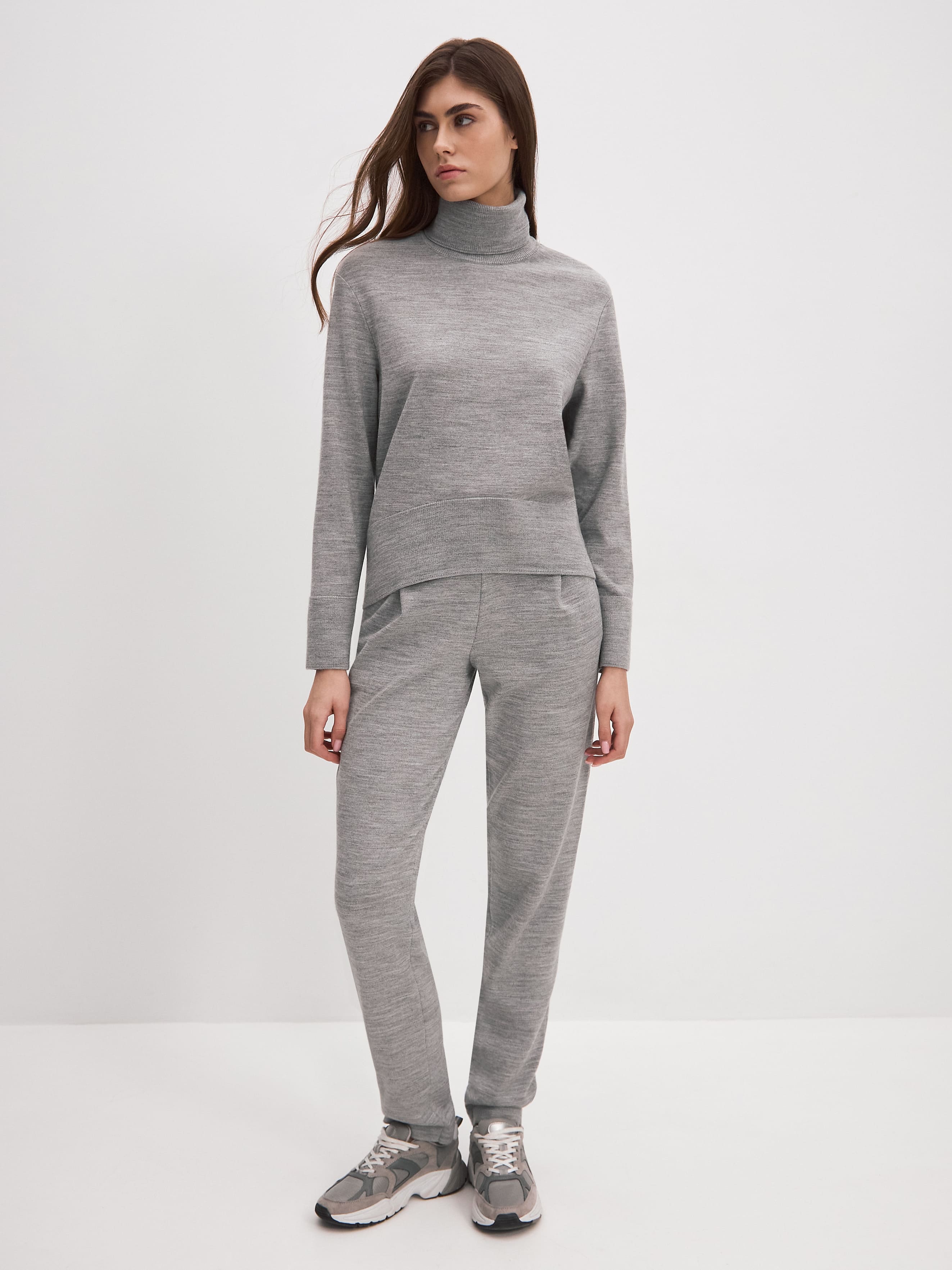 В этой шерстяной двойке мы попытались передать философию расслабленного, мягко струящегося силуэта. Уютный джемпер с высоким горлом гармонично сочетается с удобными брюками на кулиске. А гладкая вискоза в составе сработала на защиту трикотажной формы от обвисания и растягивания. Можно носить полноценным комплектом или использовать каждую вещь как самостоятельную составляющую образа.