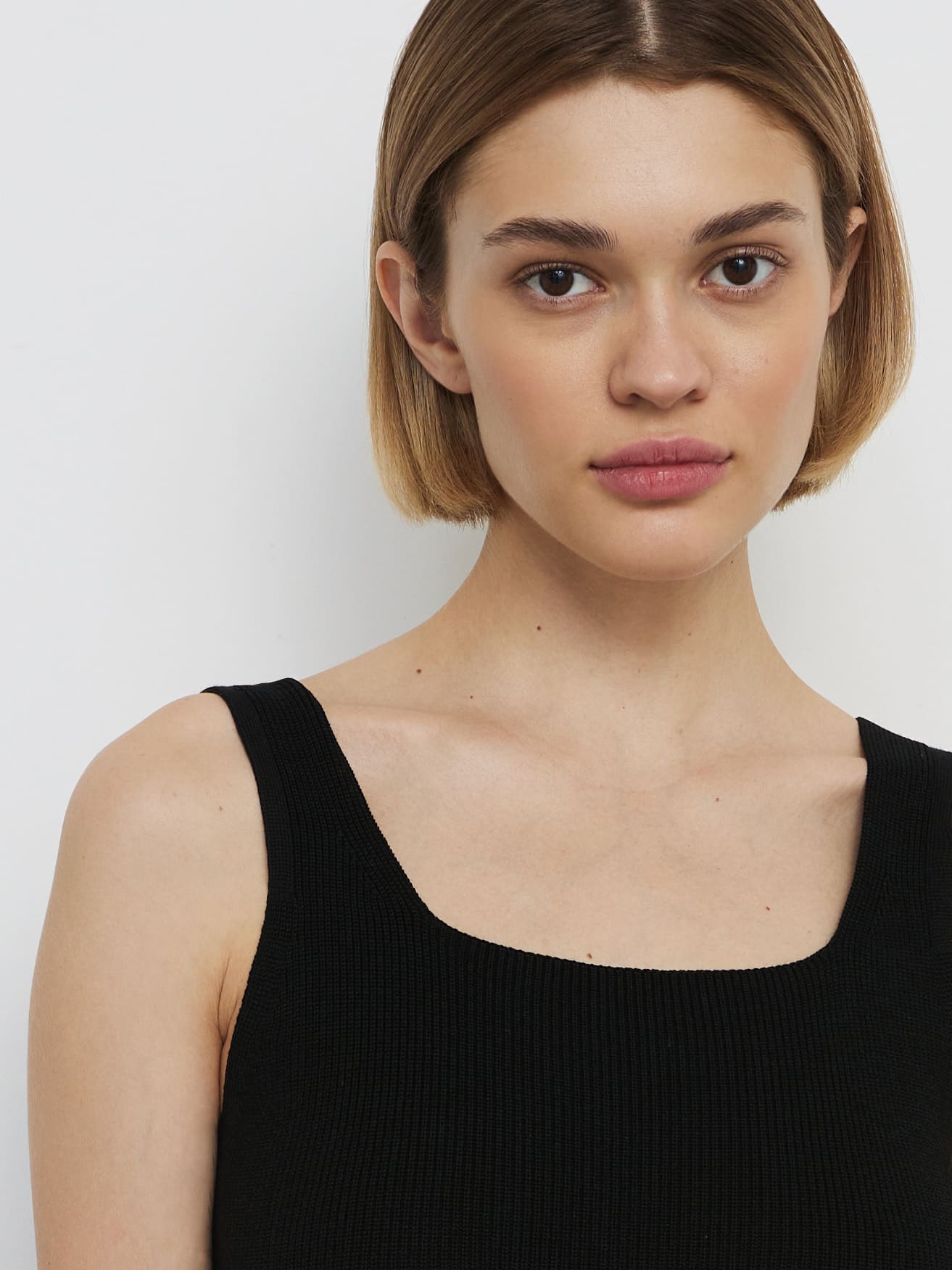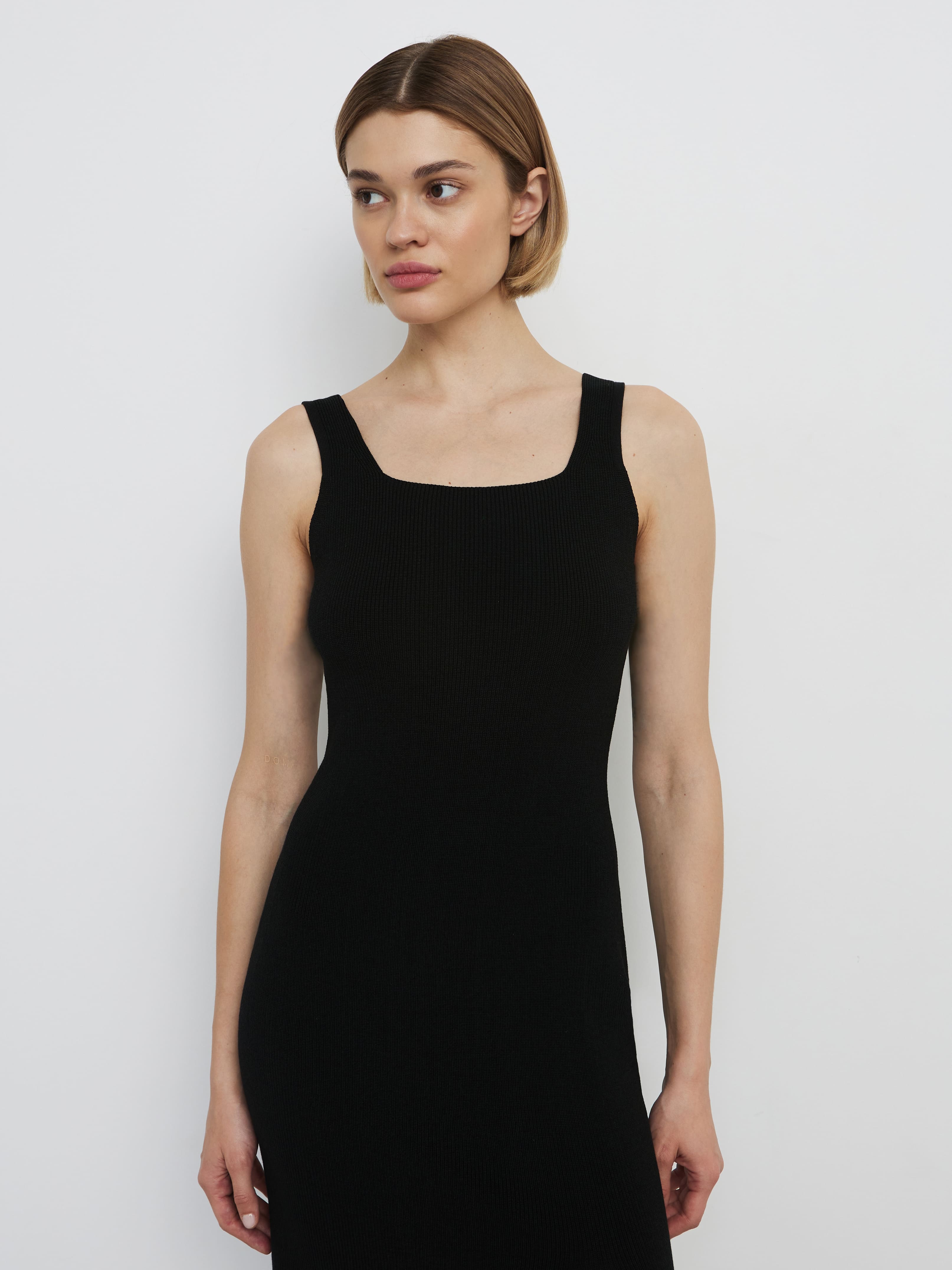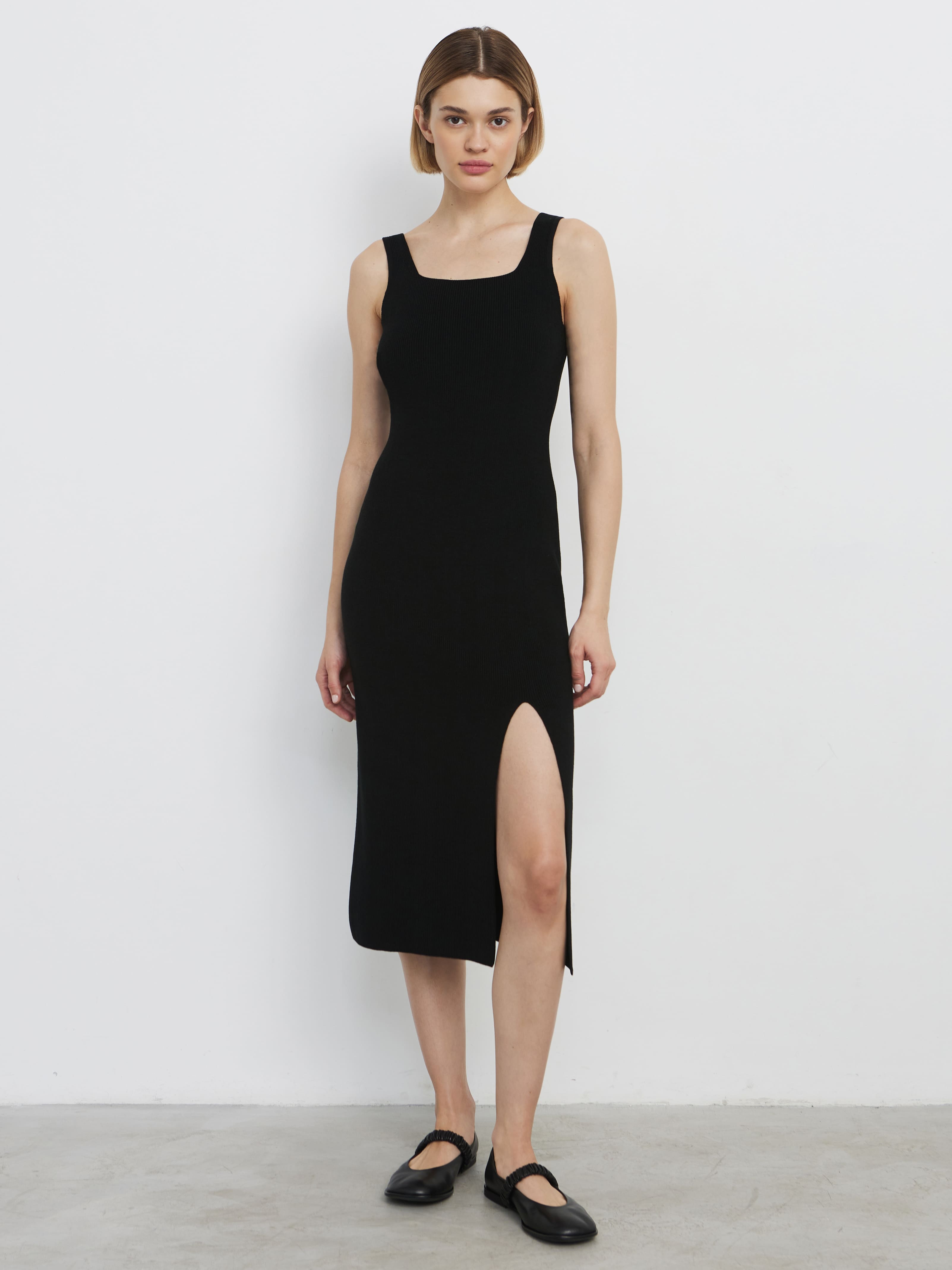 Это облегающее пляжное миди создано для самых жарких дней в году и незабываемых фотосессий. Дополнено сразу двумя интригующими акцентами – вырезом каре и соблазнительным разрезом до середины бедра. Связано в плотный, пружинящий рубчик из шелковистой вискозы, поэтому не потеряет форму. Платье, которое точно пригодится в отпуске на море и гарантирует нескучное лето в мегаполисе!