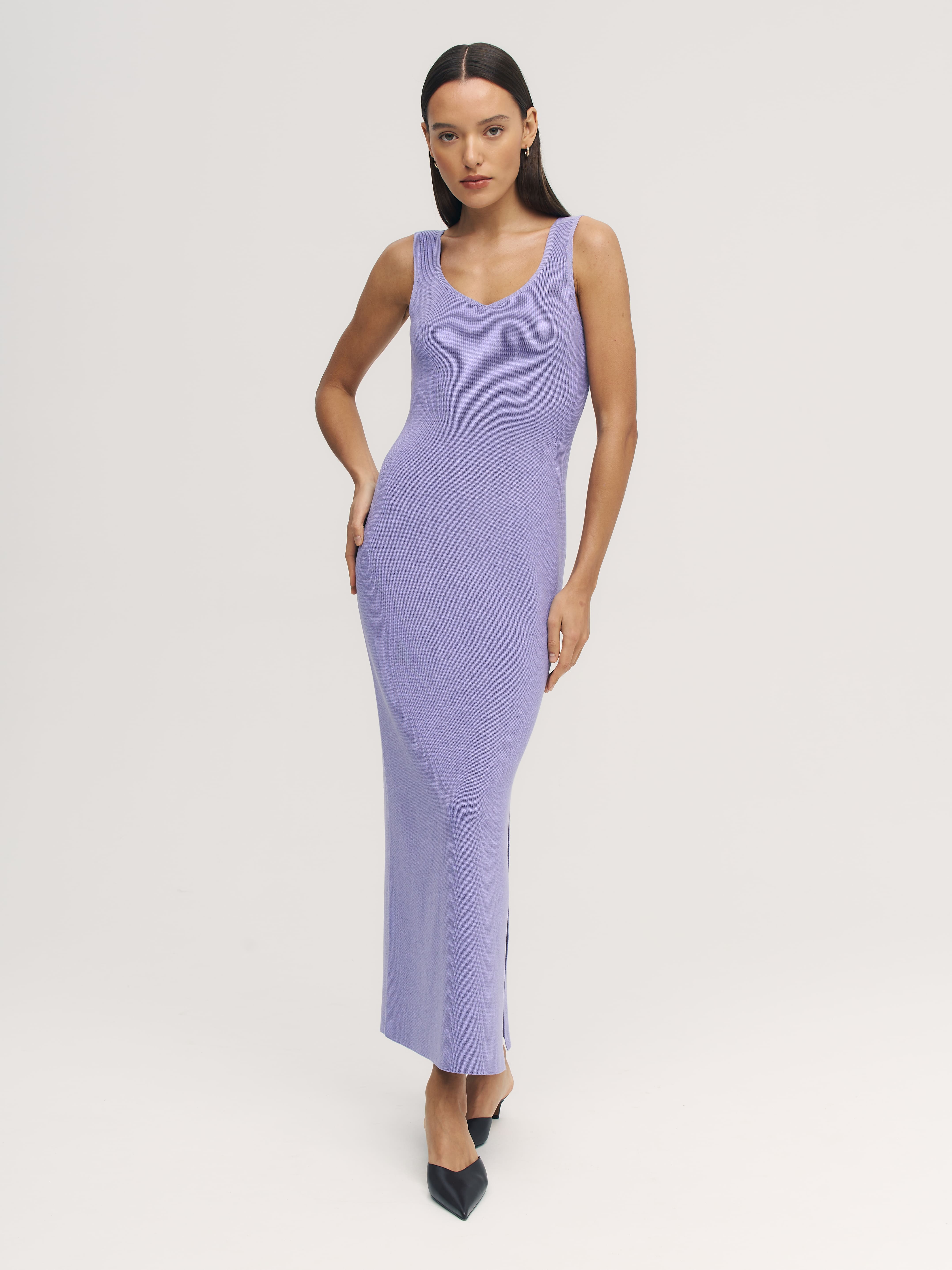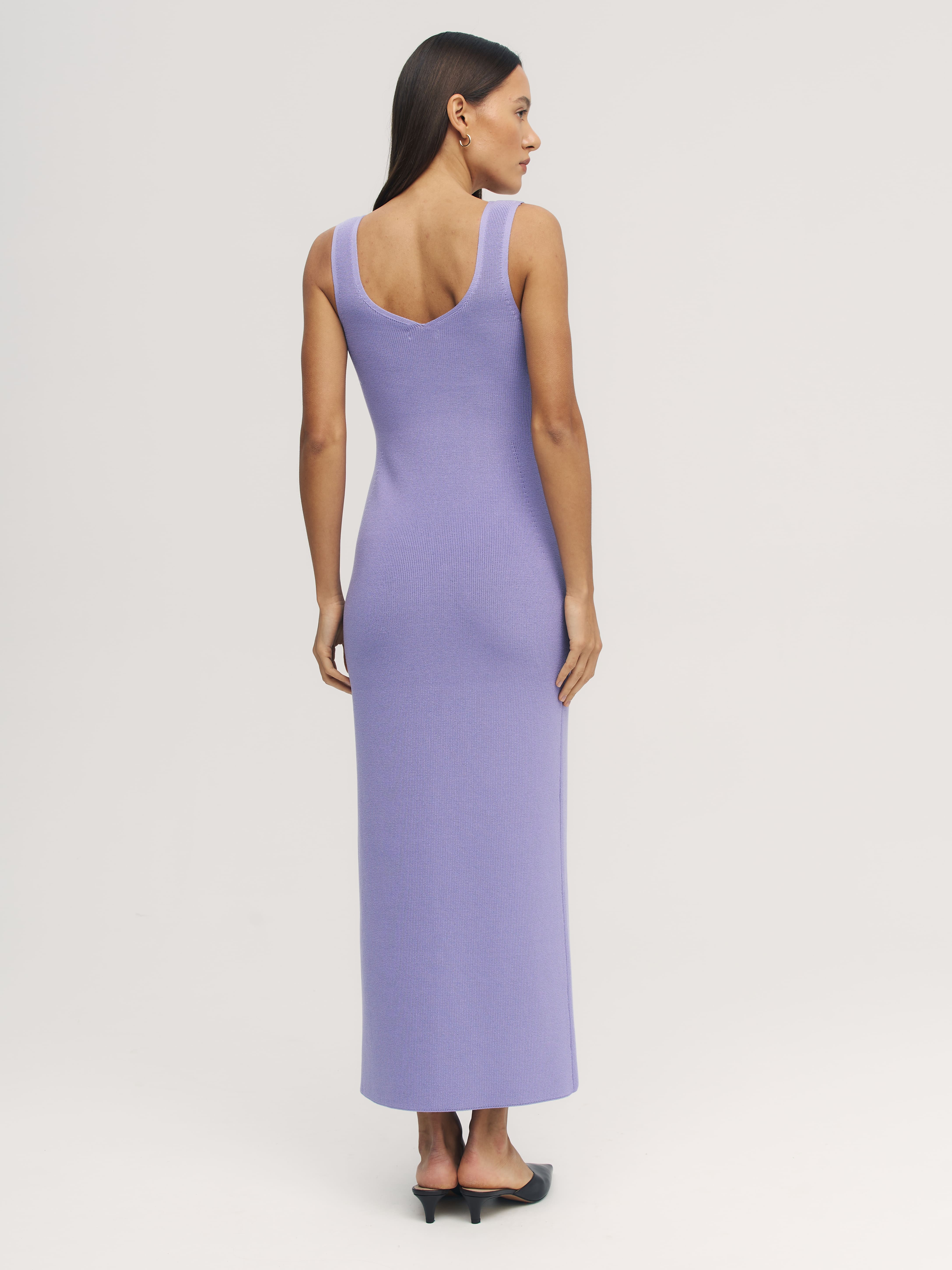 Трикотажное платье-сарафан с фигурным декольте и акцентным разрезом сбоку. Экстраоблегающее летнее миди, призванное собирать тысячи комплиментов. Красиво “играет” в движении. Связано из шелковистой пряжи с вискозой, которая дышит, как натуральный хлопок, но при этом в два раза легче его. Оптимальный вариант для открытия пляжного сезона, вечеринок у бассейна и романтических фотосессий.