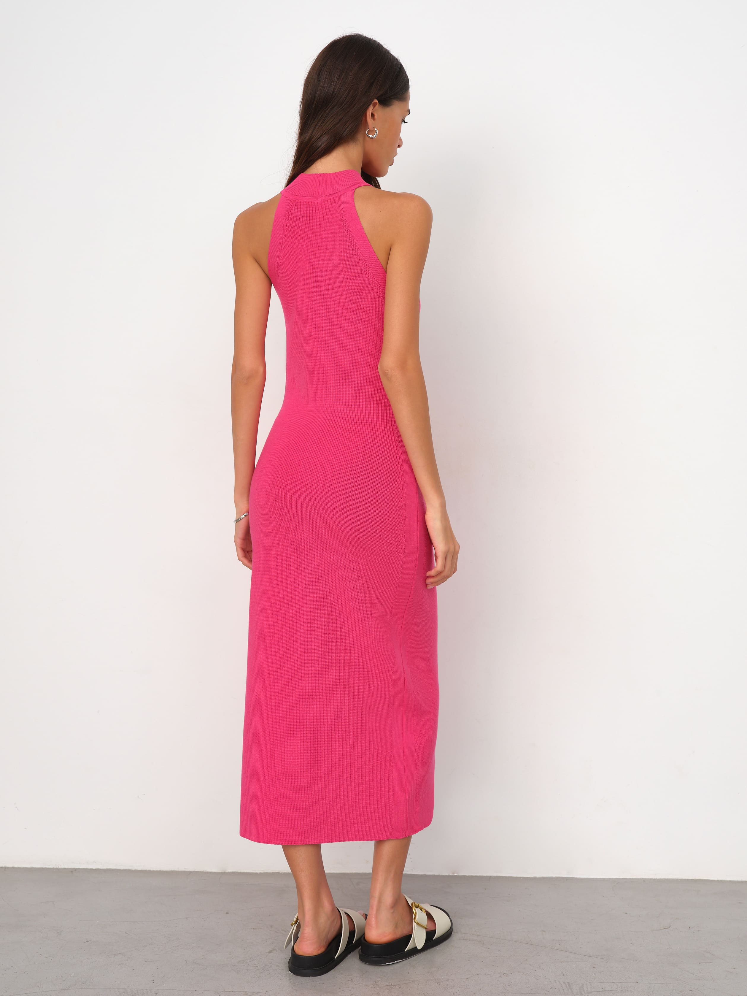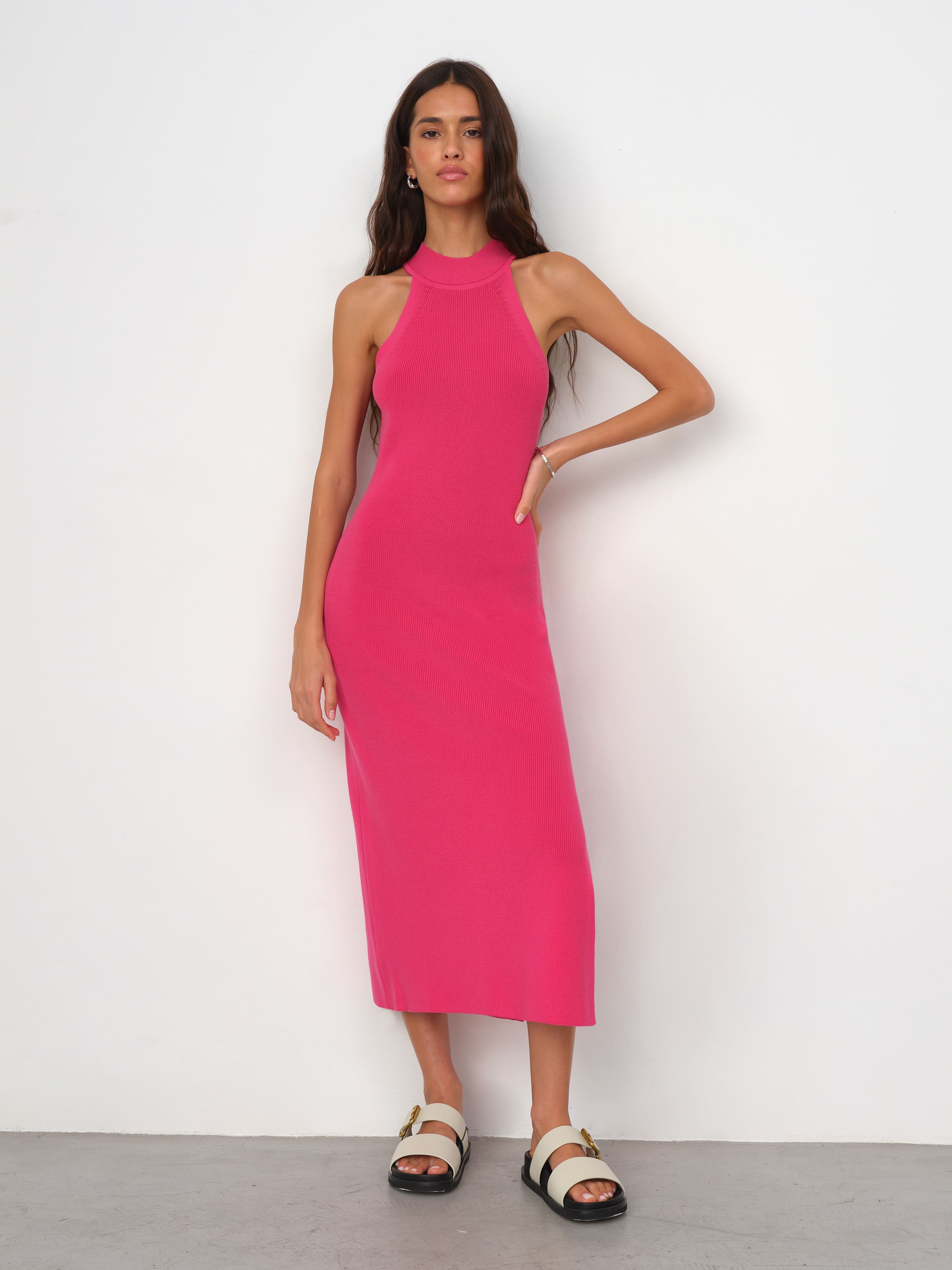 Силуэтное платье из вискозы с беспроигрышным комбо – вырезом «американка» и сексуальным разрезом до бедра. Плотный шелковистый трикотаж красиво ложится по самым выступающим точкам силуэта. Результат: идеальное облегание без просвечивания и акцента на мелких несовершенствах. Идеально смотрится в тандеме с бесшовным бельем.