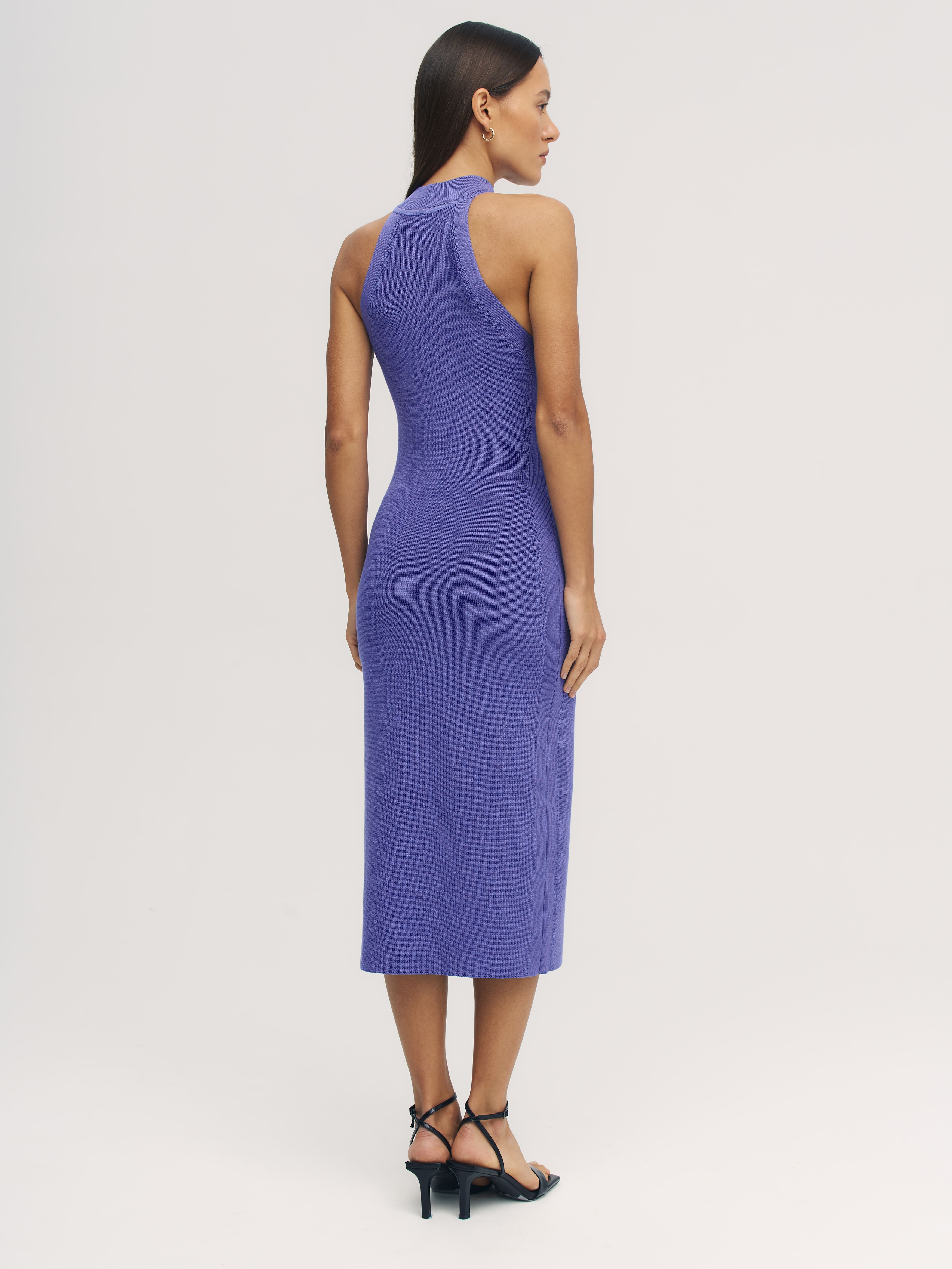 Силуэтное платье из вискозы с беспроигрышным комбо – вырезом «американка» и сексуальным разрезом до бедра. Плотный шелковистый трикотаж красиво ложится по самым выступающим точкам силуэта. Результат: идеальное облегание без просвечивания и акцента на мелких несовершенствах. Идеально смотрится в тандеме с бесшовным бельем.