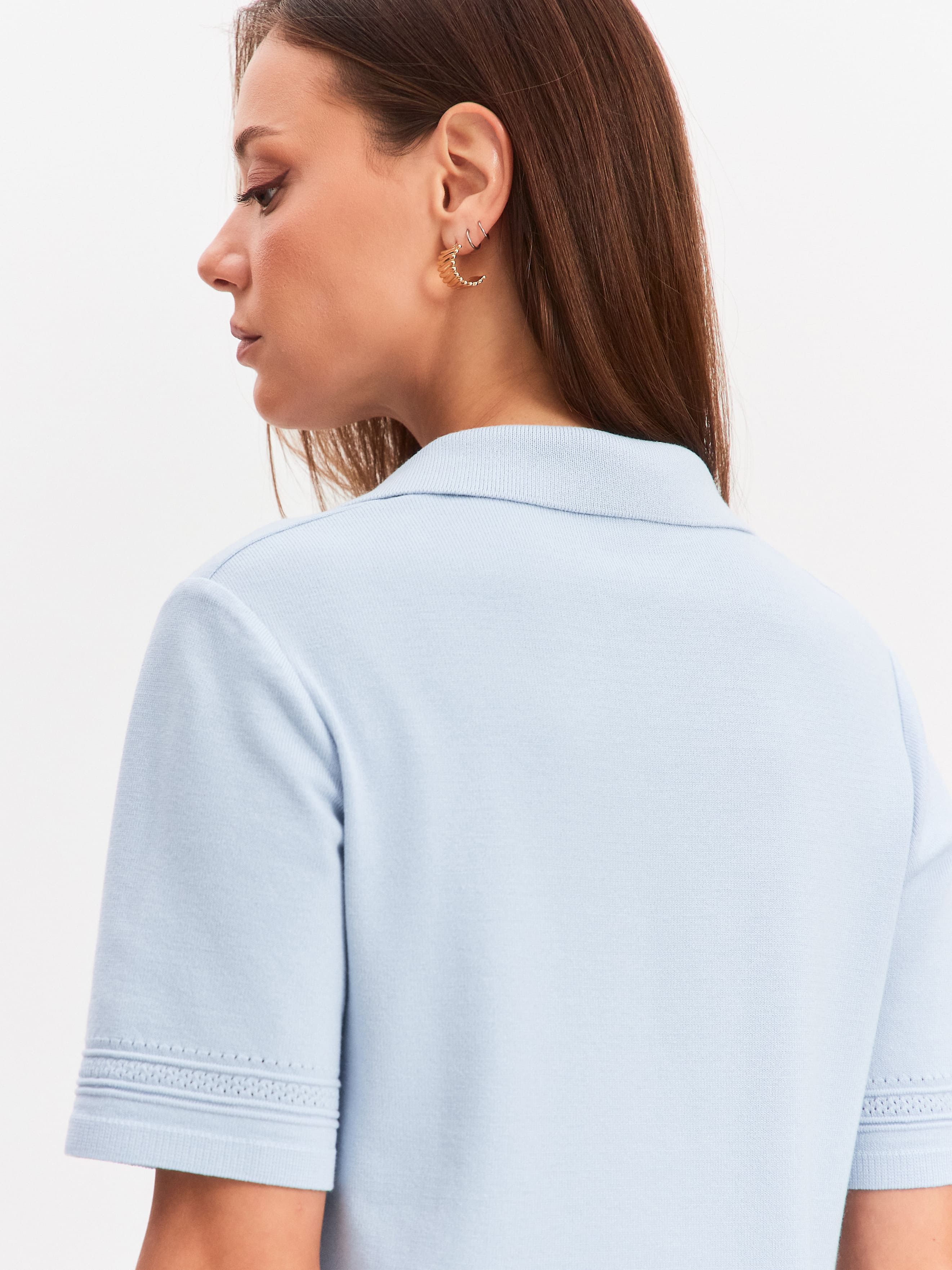 В каталоге нашего интернет-магазина представлена обширная линейка женской одежды собственного бренда. В том числе предлагаем сделать онлайн-заказ на стильные модели из премиального трикотажа с воротником поло:
