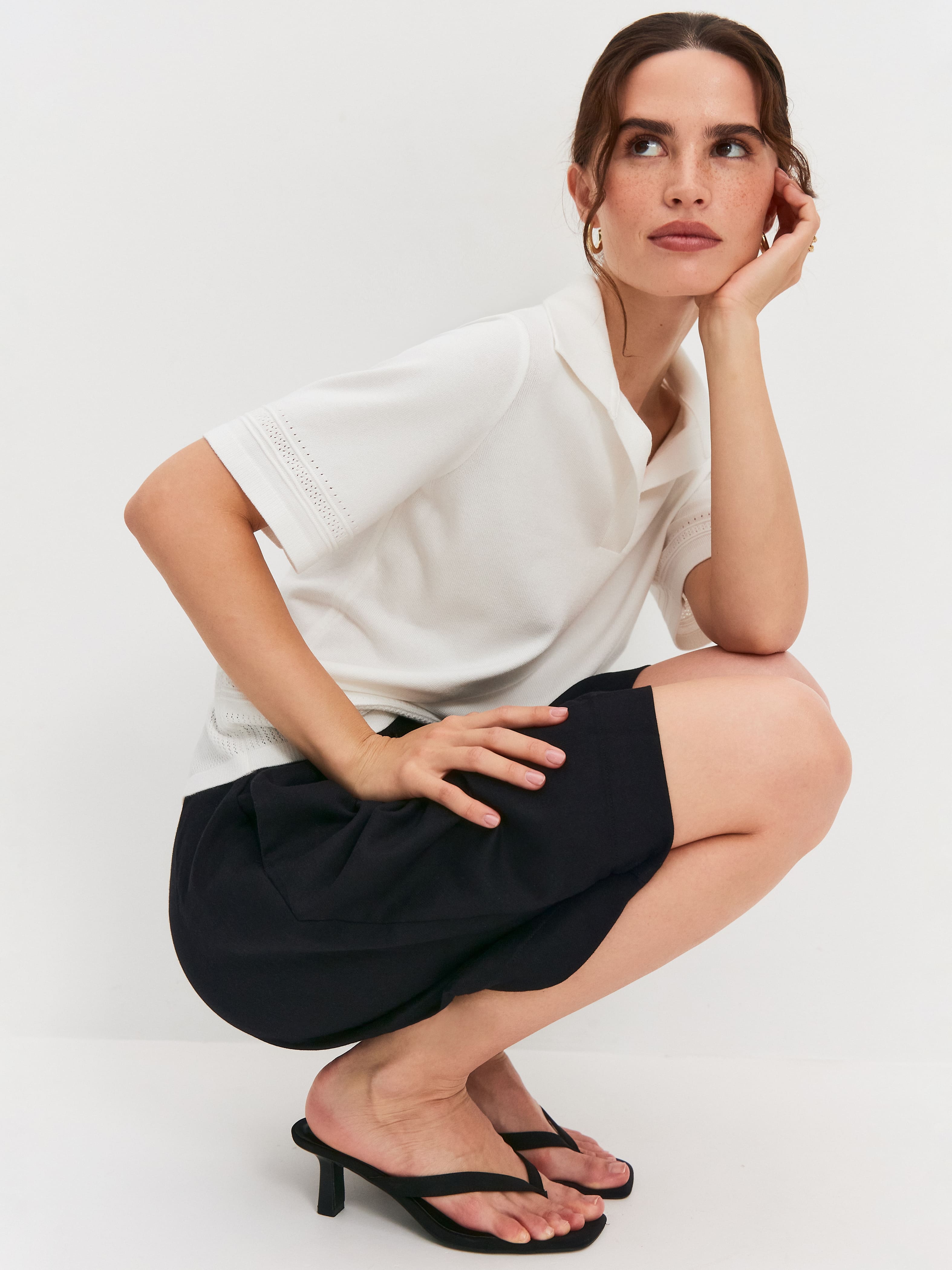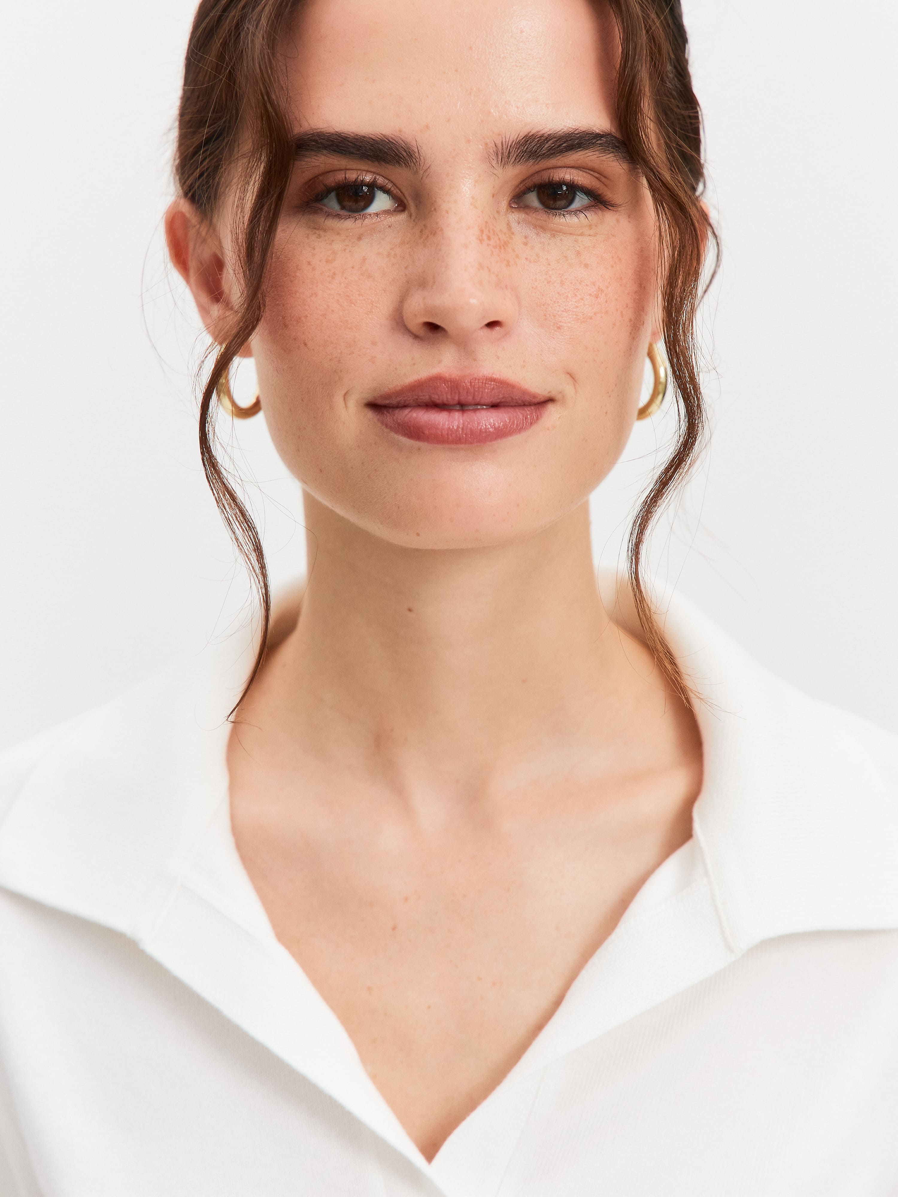 В каталоге нашего интернет-магазина представлена обширная линейка женской одежды собственного бренда. В том числе предлагаем сделать онлайн-заказ на стильные модели из премиального трикотажа с воротником поло: