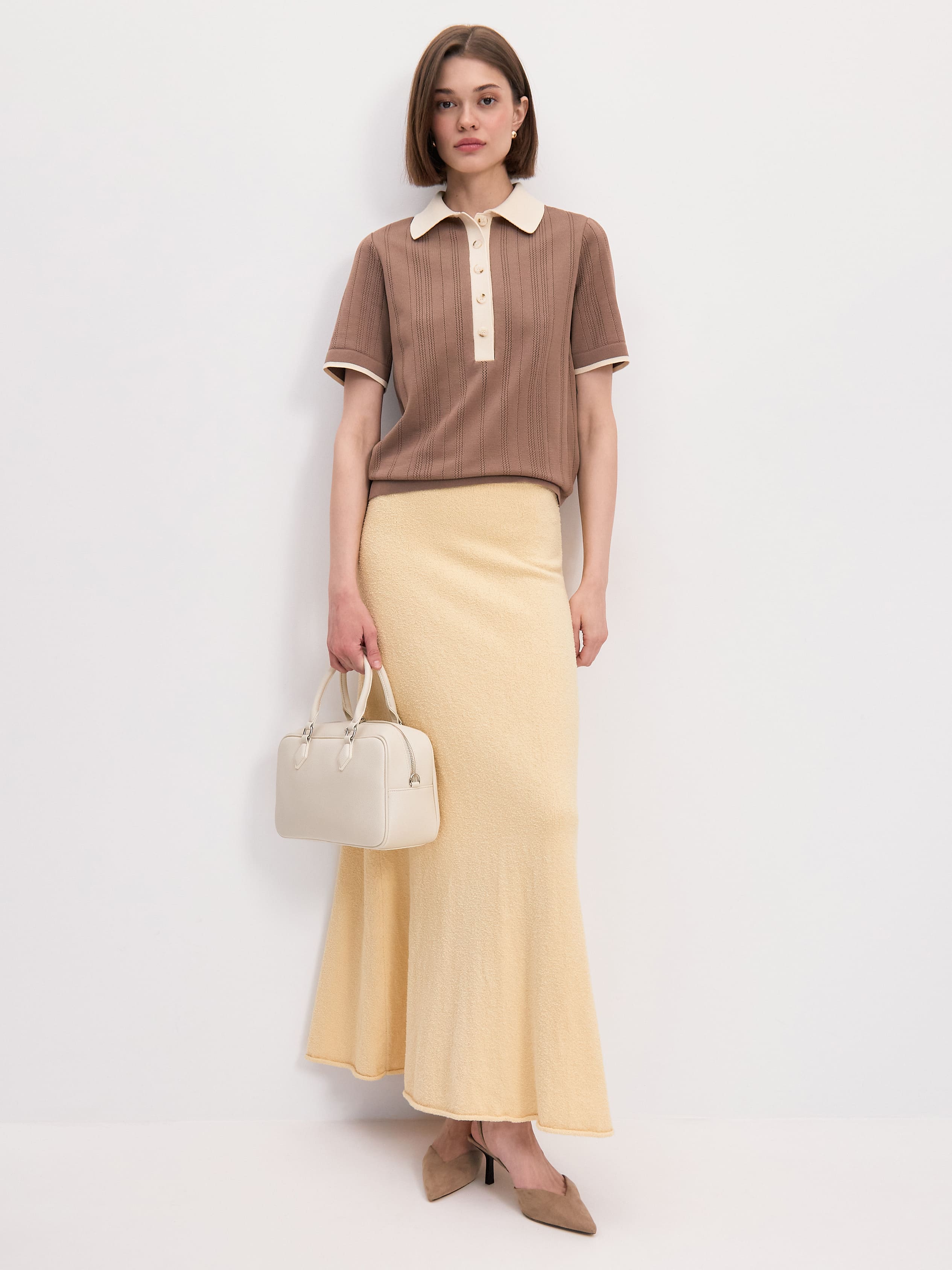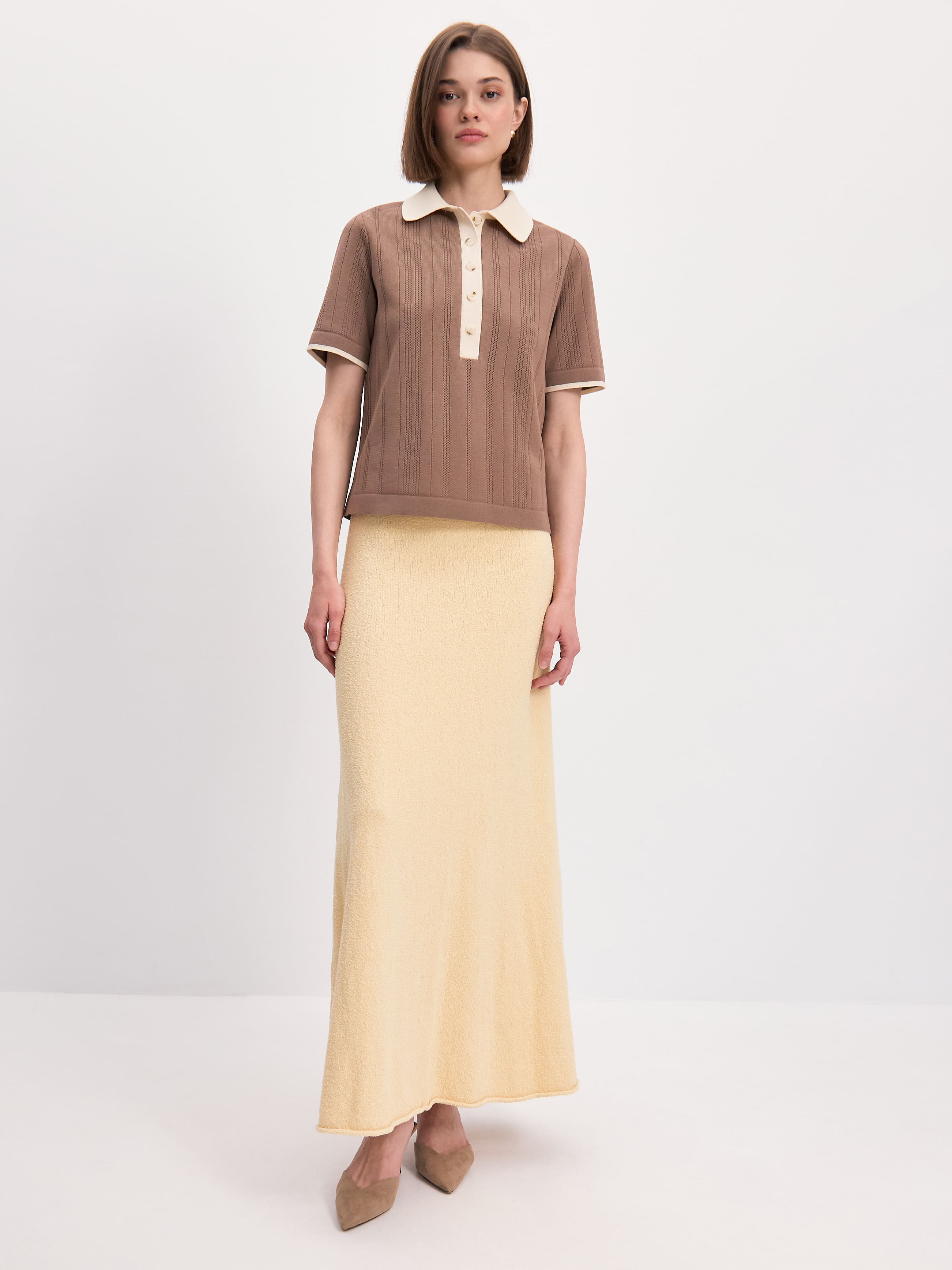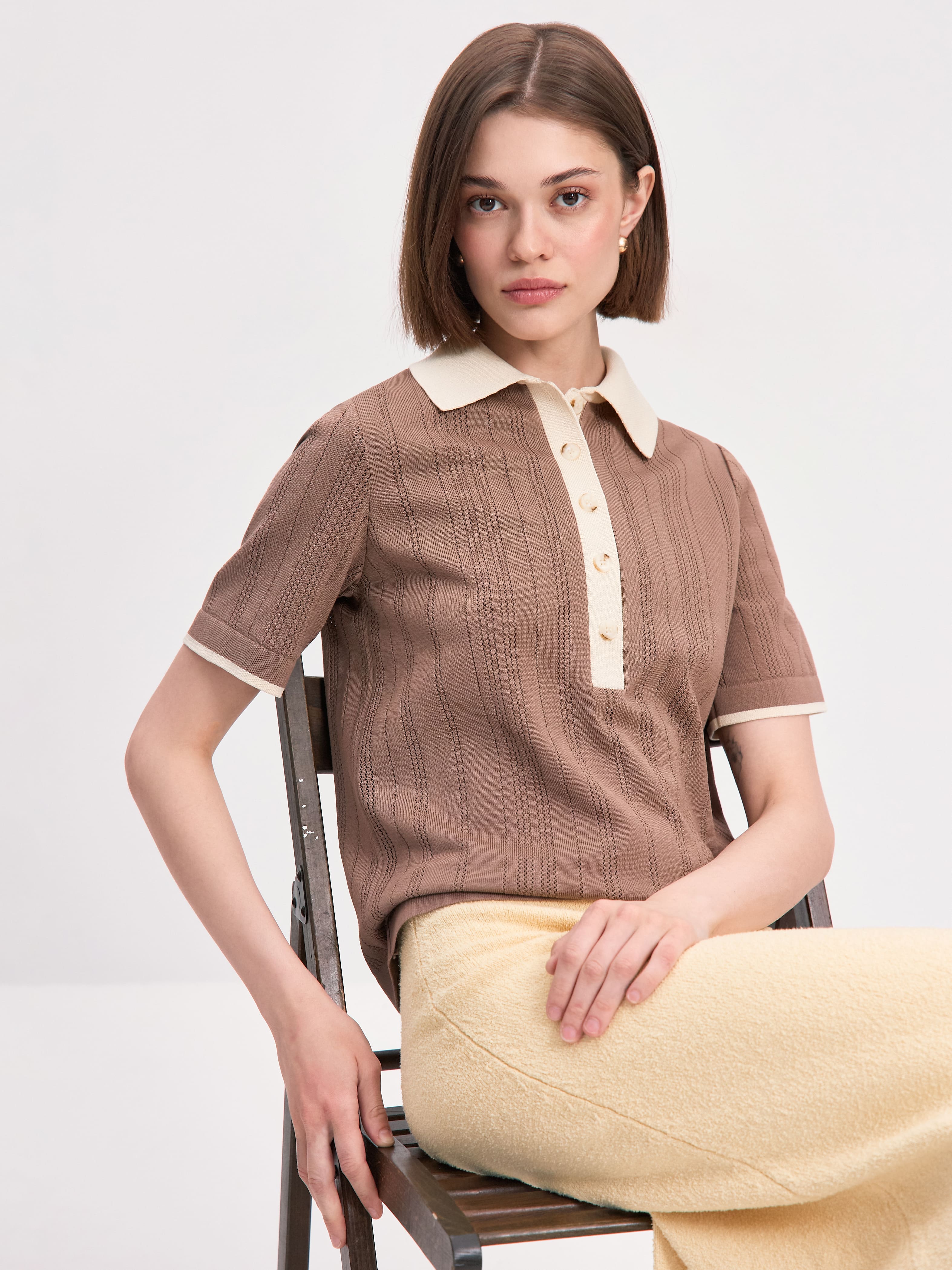 Либерти джемпер (поло) трикотажный (какао/кремовый, 44-46)