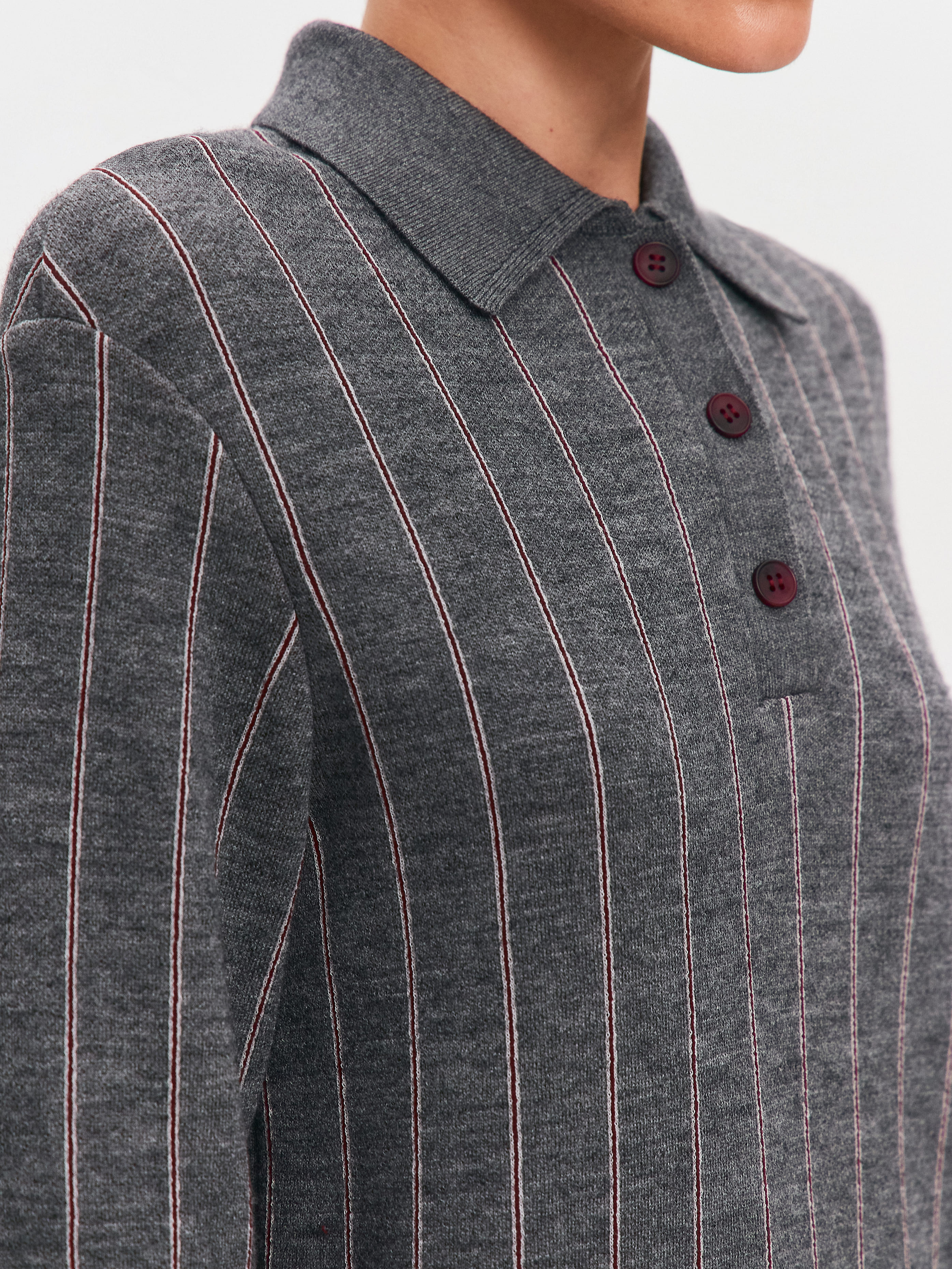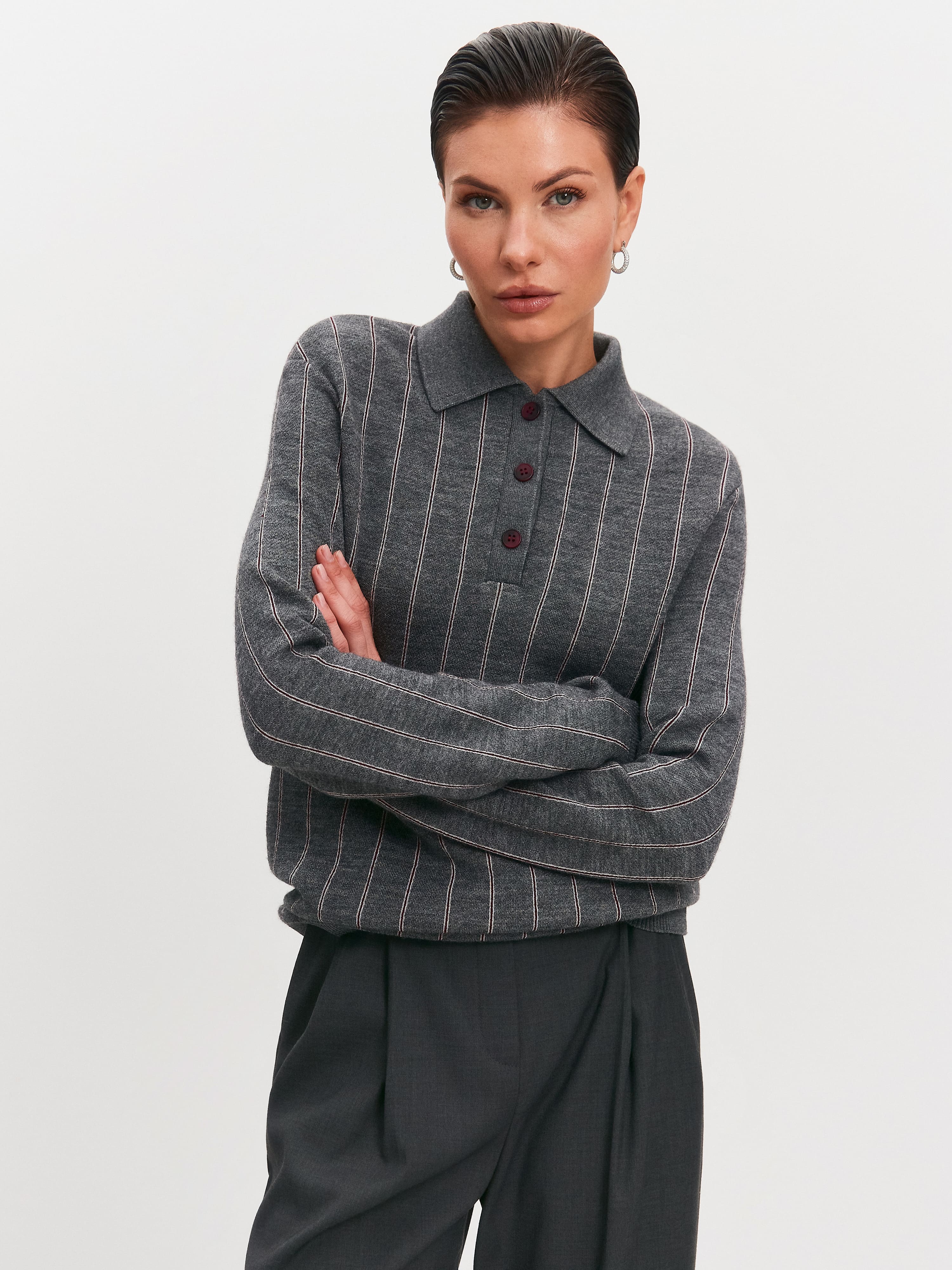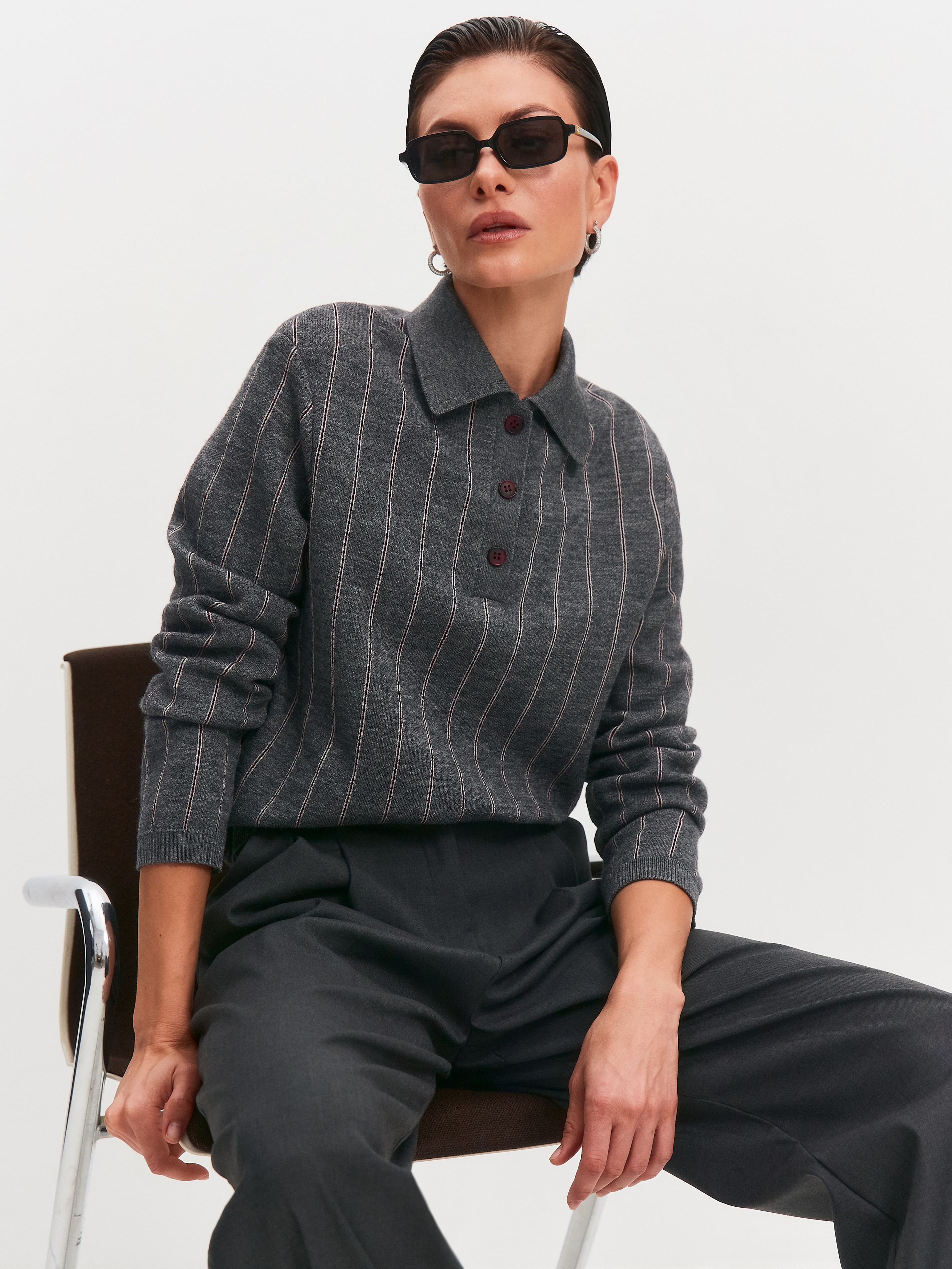 Джемпер-поло из шерсти мериноса тонкого прядения. Согревающая классическая база, в которой так уютно встречать смену сезонов. Основные элементы отделки – воротничок из вязаной рибаны, вертикальная полоска узора и градиентные пуговицы на горловине. Края рукавов и низ оформлены узкой резинкой, помогающей лучше фиксировать подвороты. Модель изготовлена из уютной полушерстяной пряжи с деликатным отношением к коже. Сделать джемпер еще более комфортным для тела позволит нижний слой из хлопчатобумажной майки или топа.