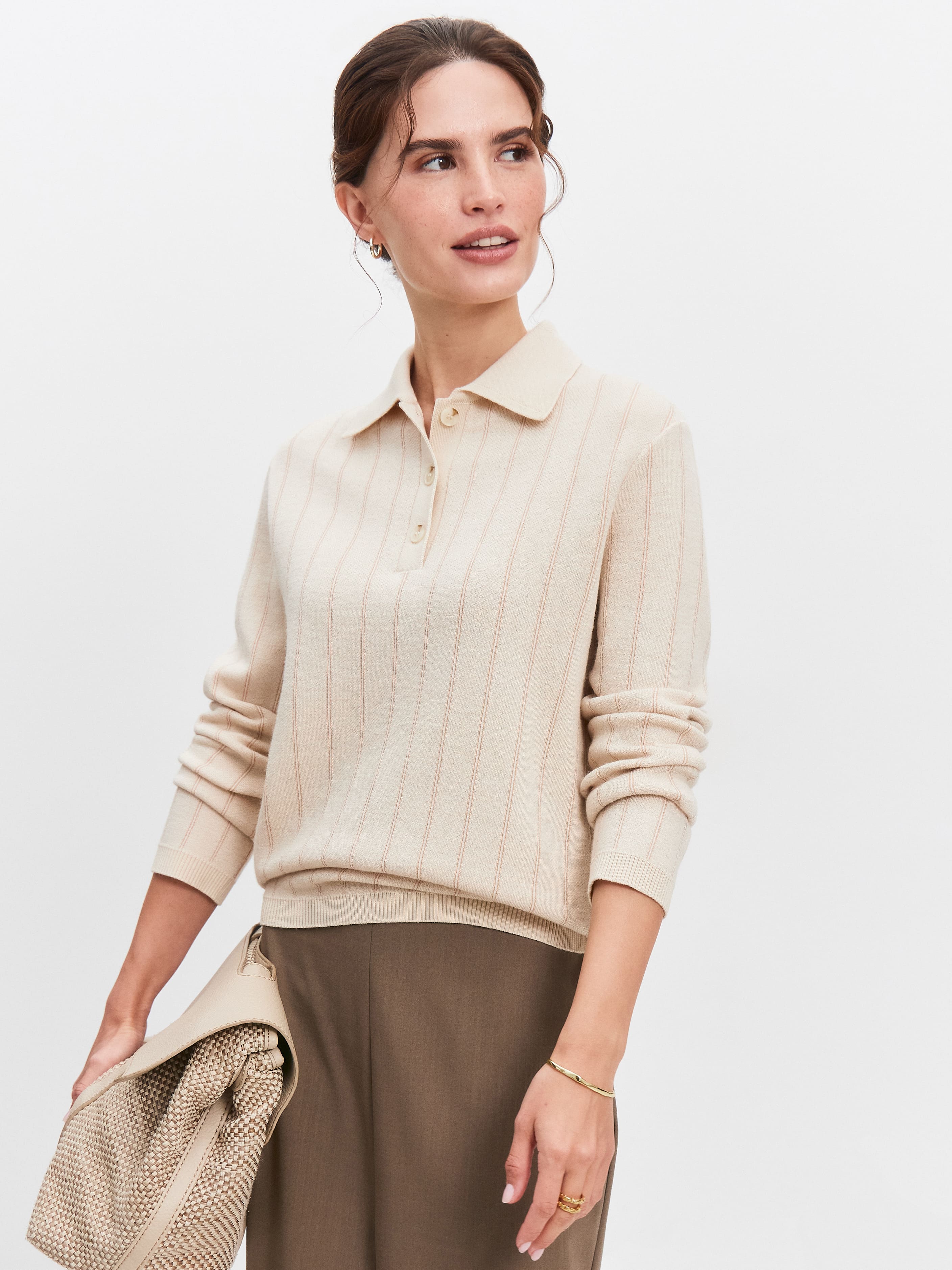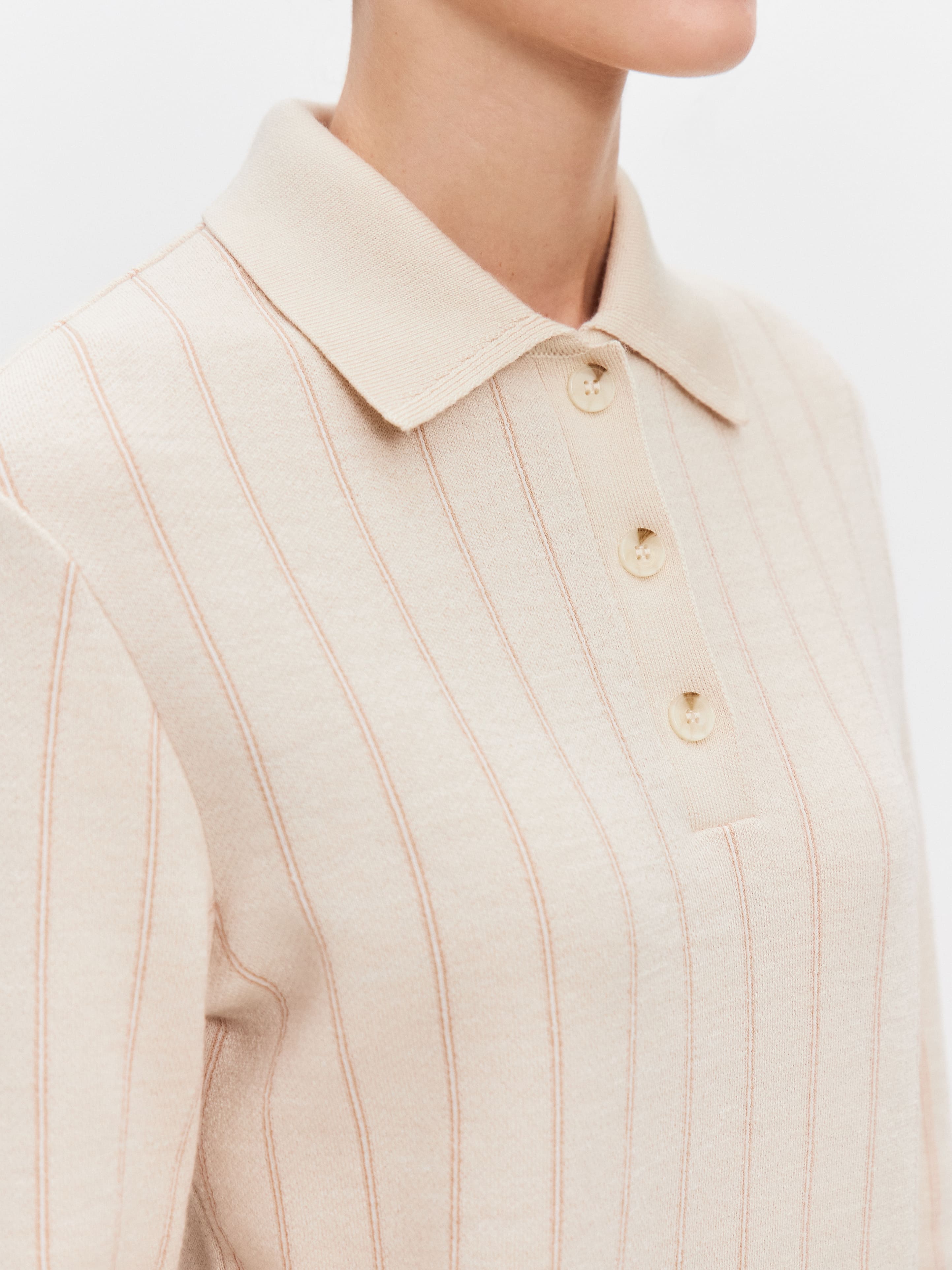 Джемпер-поло из шерсти мериноса тонкого прядения. Согревающая классическая база, в которой так уютно встречать смену сезонов. Основные элементы отделки – воротничок из вязаной рибаны, вертикальная полоска узора и градиентные пуговицы на горловине. Края рукавов и низ оформлены узкой резинкой, помогающей лучше фиксировать подвороты. Модель изготовлена из уютной полушерстяной пряжи с деликатным отношением к коже. Сделать джемпер еще более комфортным для тела позволит нижний слой из хлопчатобумажной майки или топа.