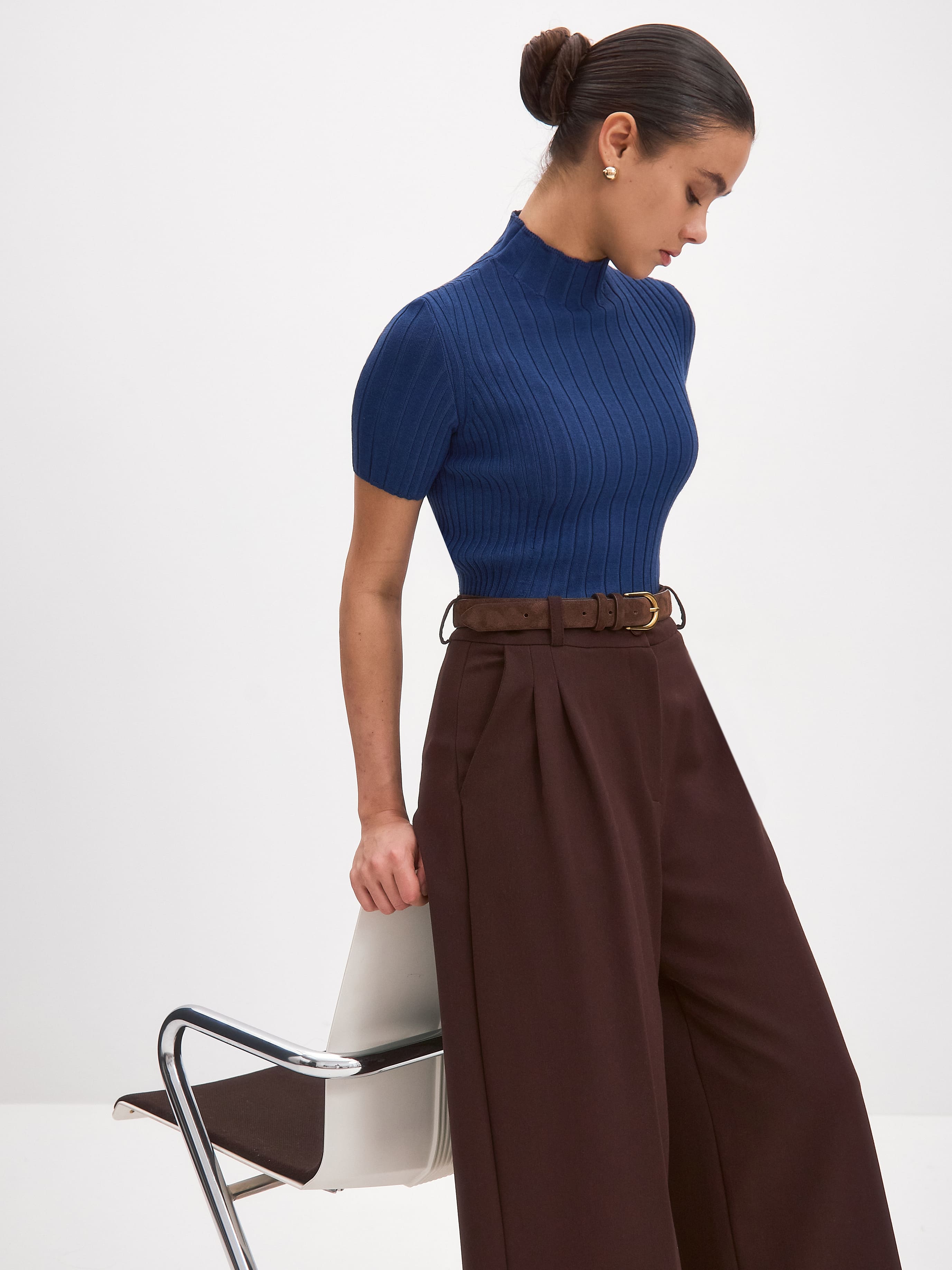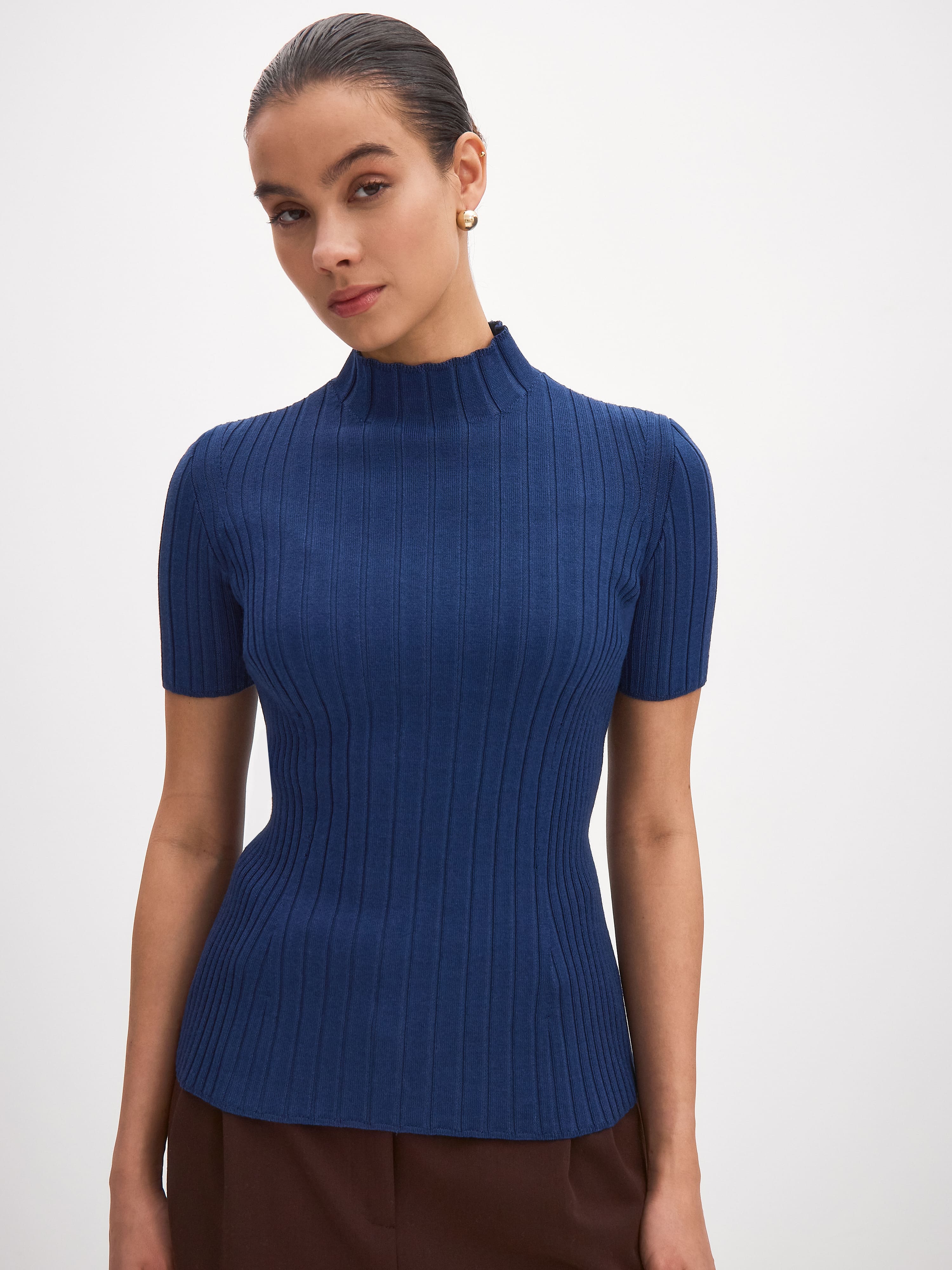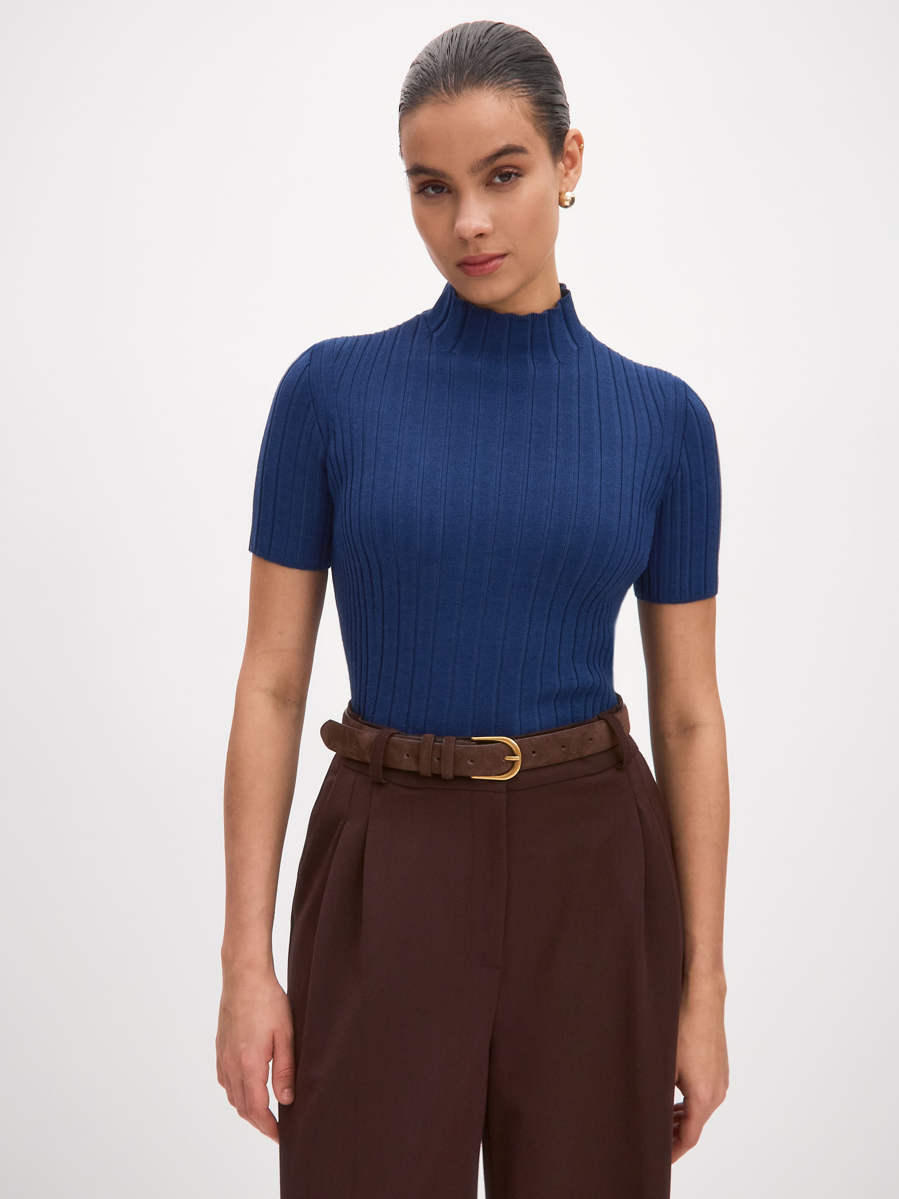 Водолазка из шерсти мериноса и вискозы с коротким рукавом Дайси