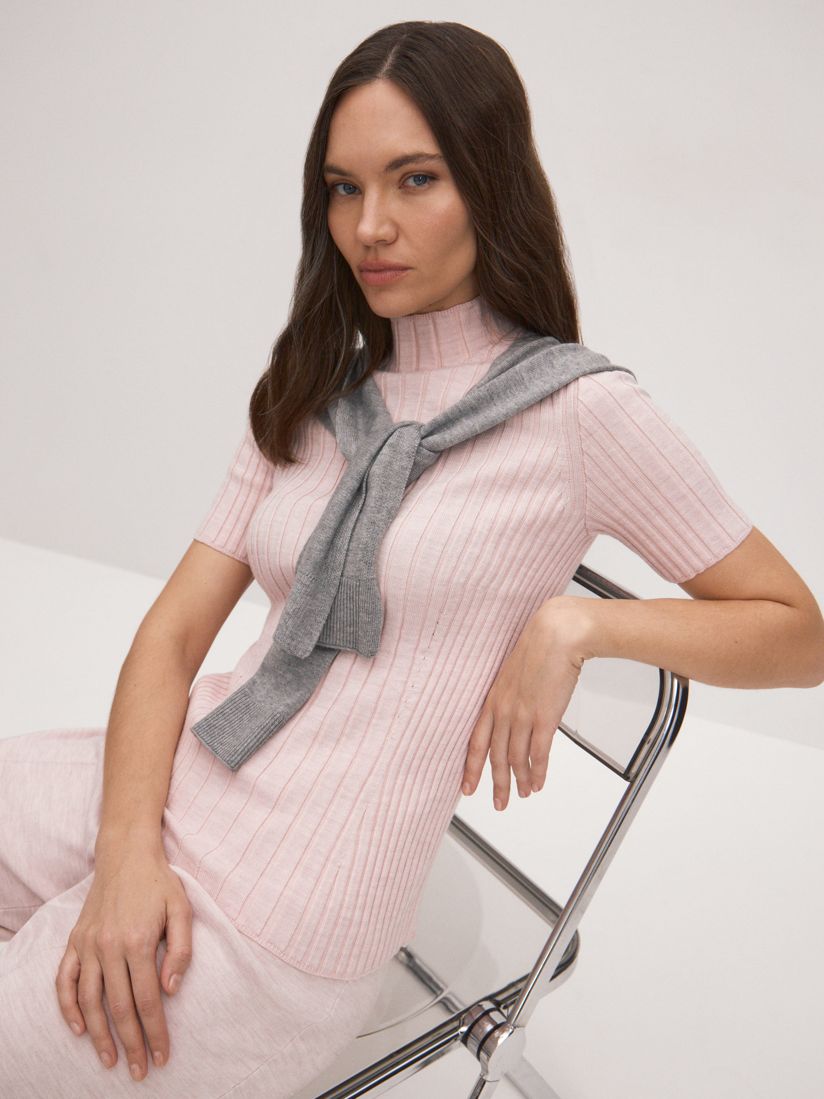 Водолазка из шерсти мериноса и вискозы с коротким рукавом Дайси