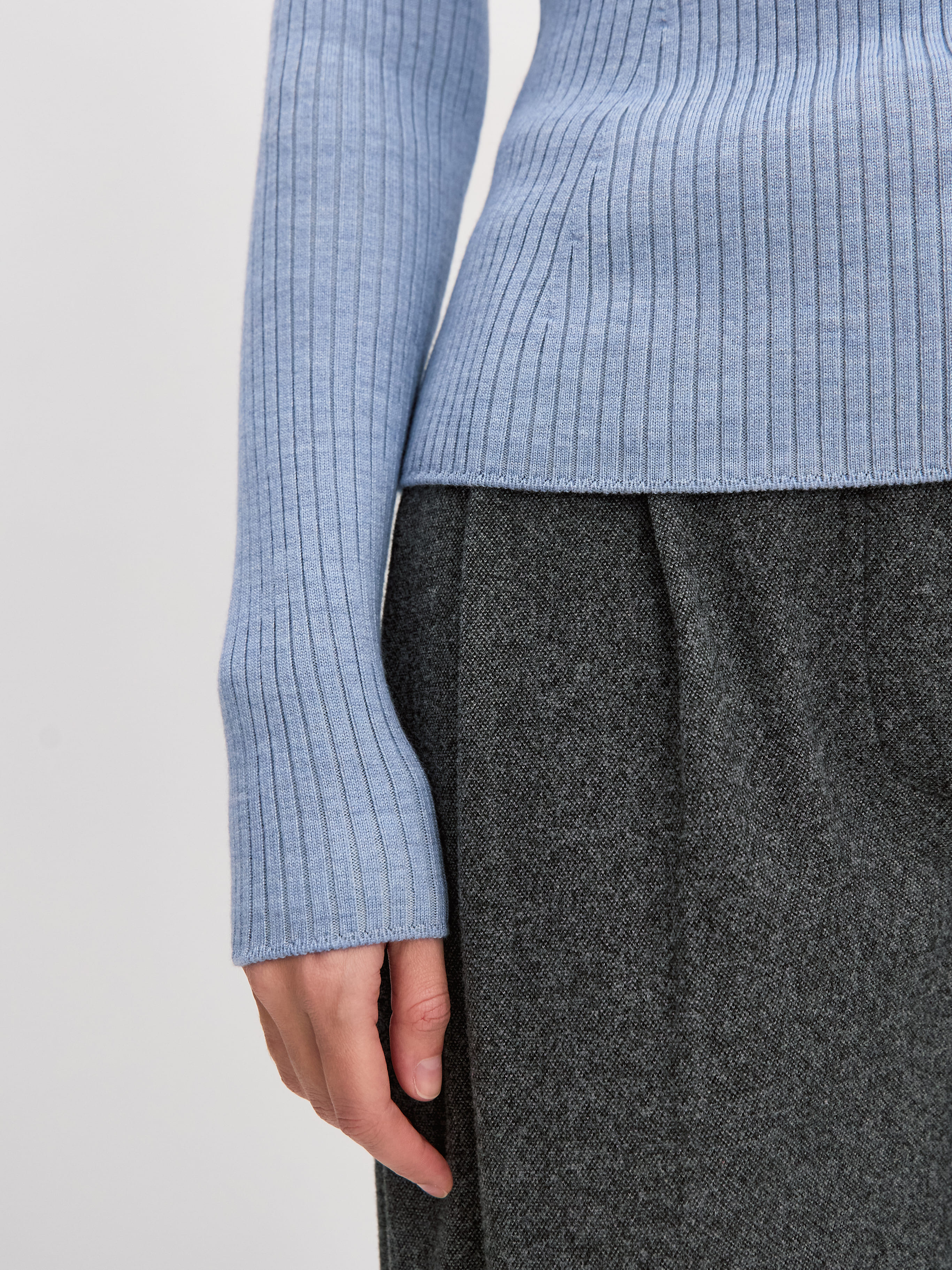 Водолазка из мягкой полушерсти, которая сделает уютнее самые строгие пиджаки и офисные рубашки. Ключевые детали изделия – рубчиковая фактура и рукава реглан с подчеркнутой линией проймы. Высота плотно прилегающего ворота корректируется подворотом – можно закрыть шею полностью или приспустить горловину до удобного уровня. Универсальный первый слой на холода, преимущества которого ощутимы с первого прикосновения. Отличное согревающее дополнение к жилеткам и бомберам из хлопковой коллекции MONONAME.