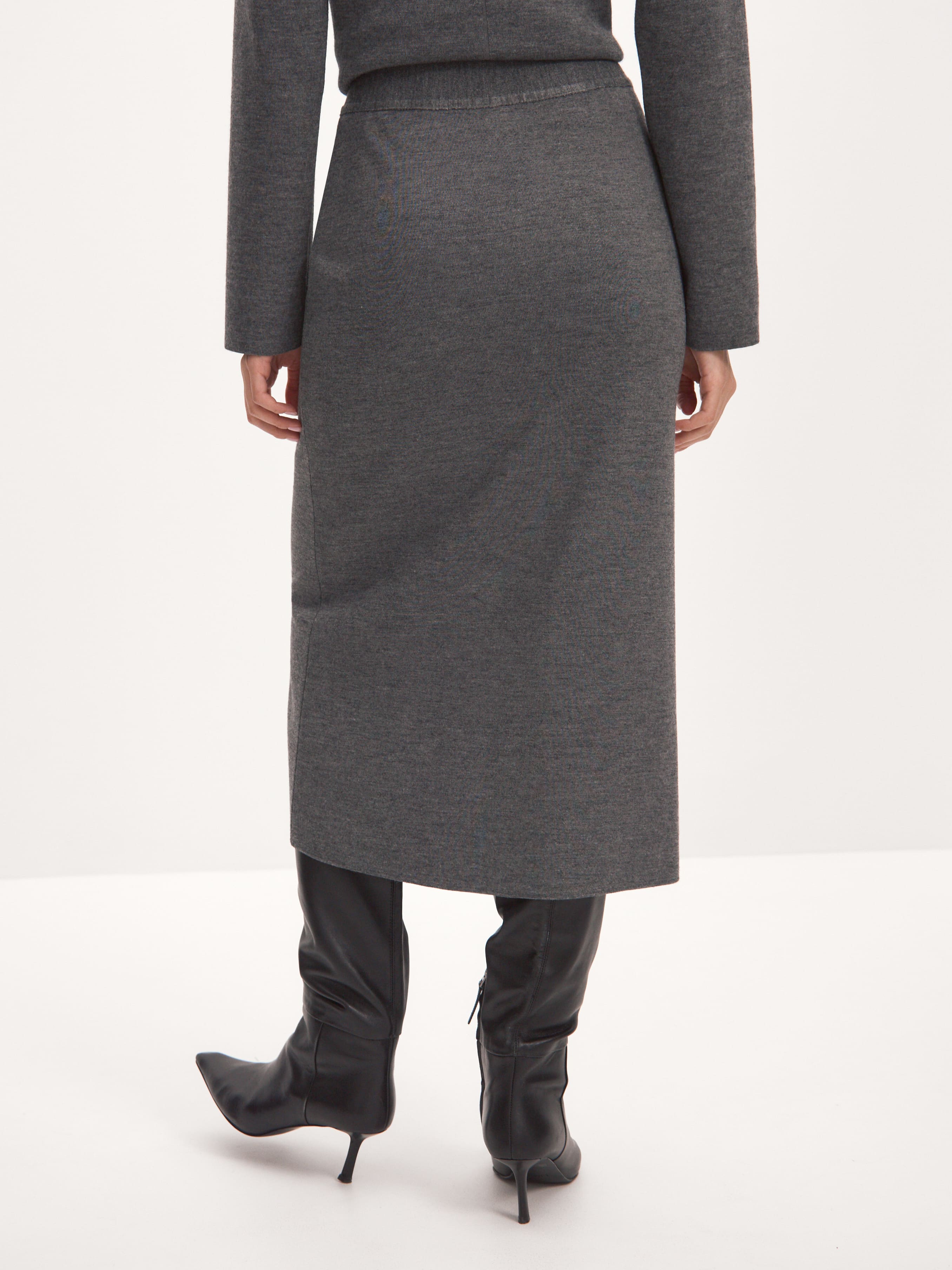 Ничто так не украшает осенний трикотаж как хорошая плотность и качественные материалы. Для этой юбочки мы выбрали аккуратную миди длину и комфортную полушерсть, укрепленную для дополнительной прочности вискозой. Поэтому в ней так тепло и уютно на прогулках. Базовый силуэт позволит совместить модель с сотней самых разных вещей – от французской классики до бизнес-кэжуала. Прекрасно смотрится как в комбинации с экстремально высоким каблуком, так и обувью на плоском ходу.