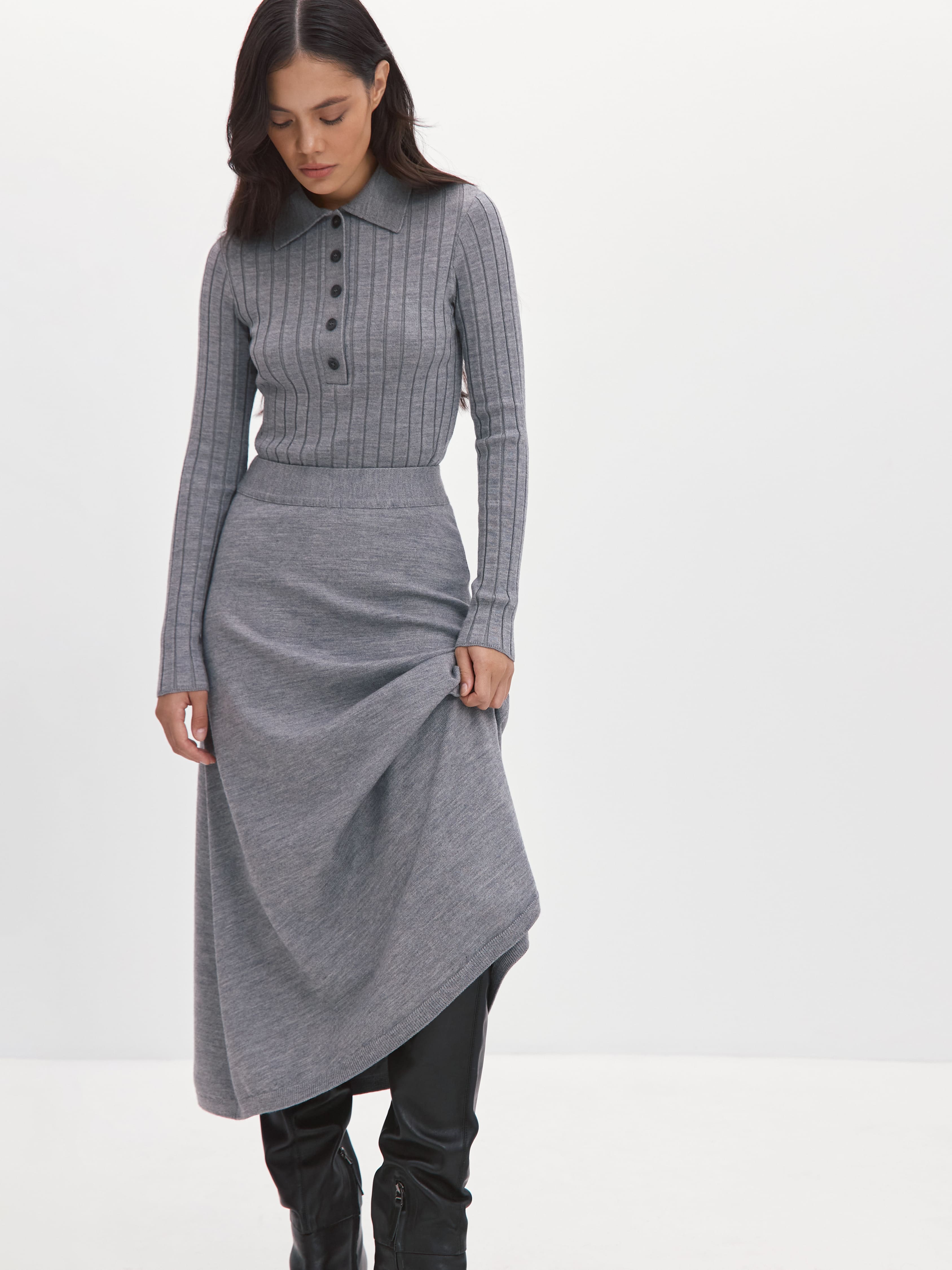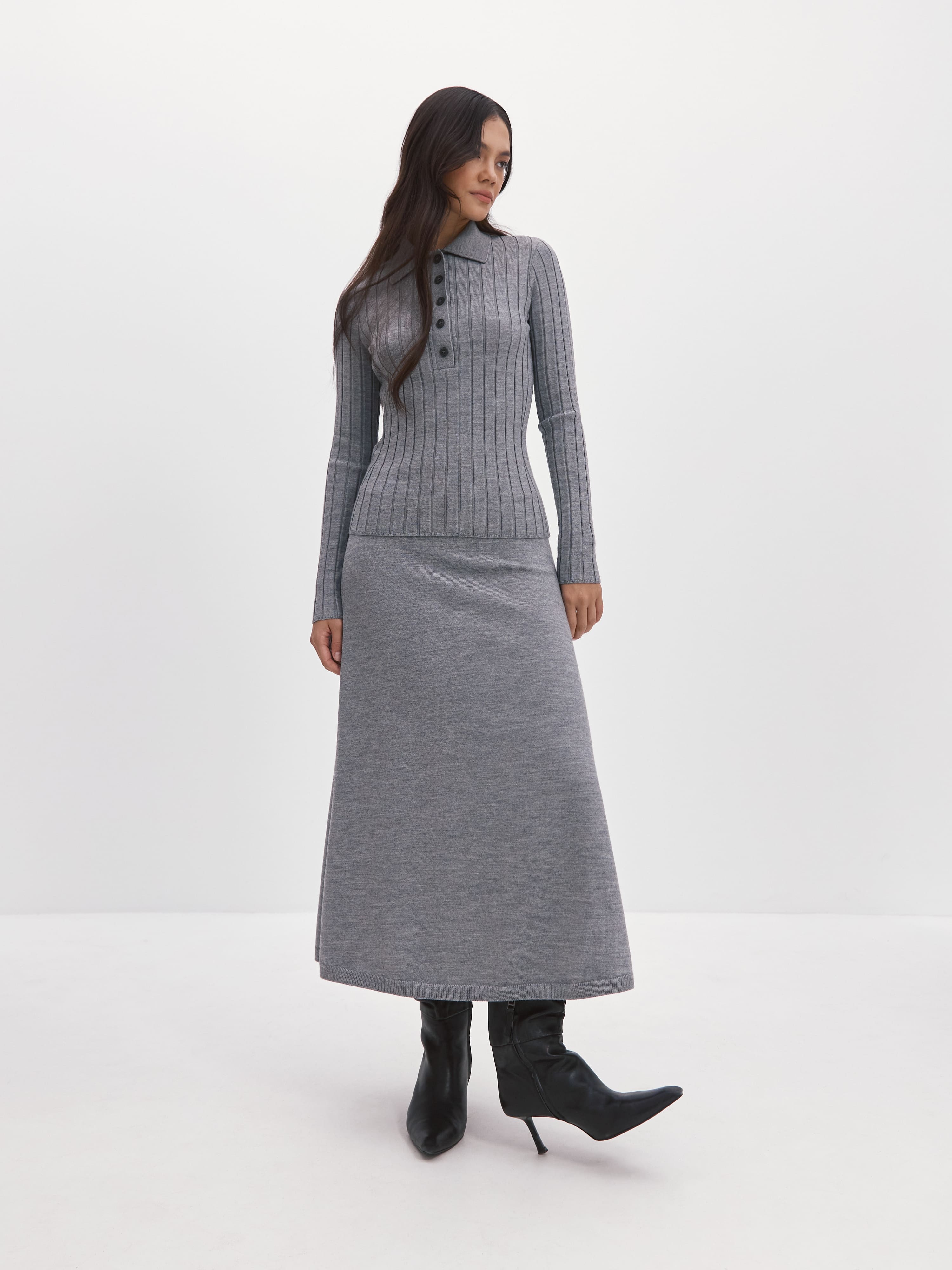 Юбка-миди из шерсти мериноса и вискозы Мисти
