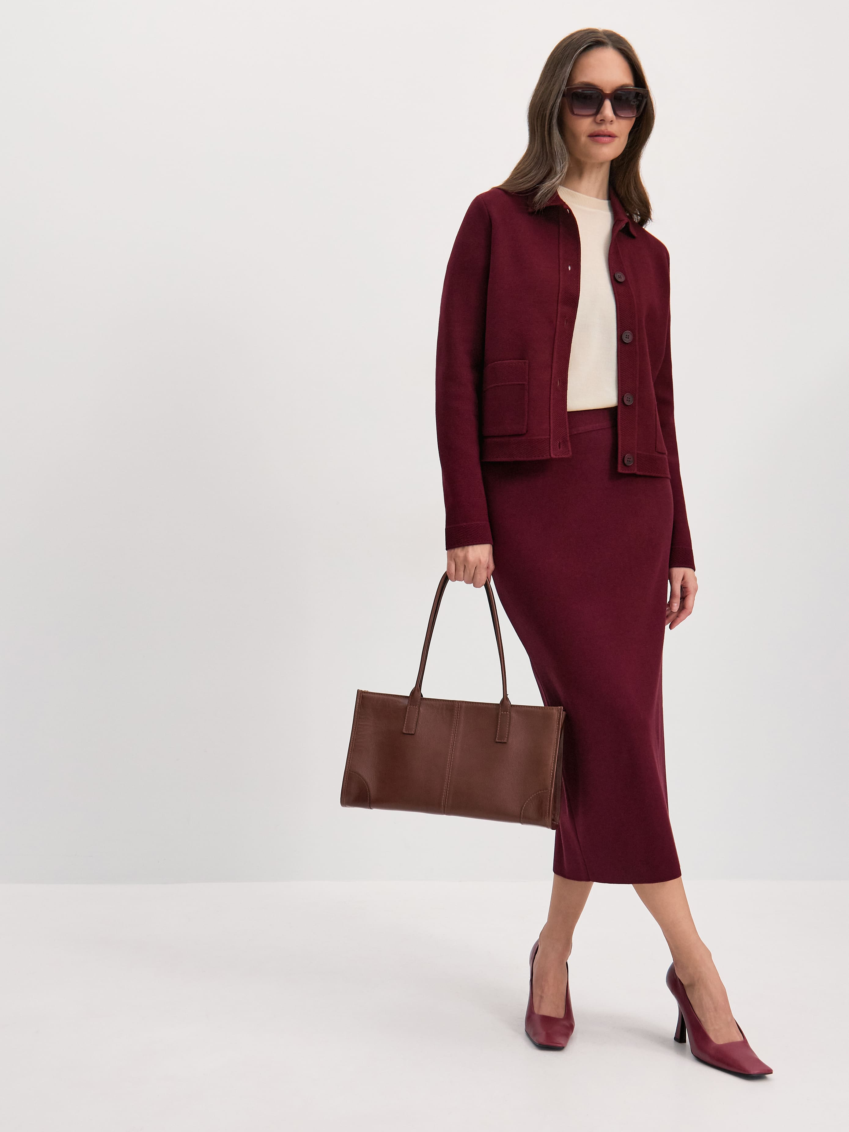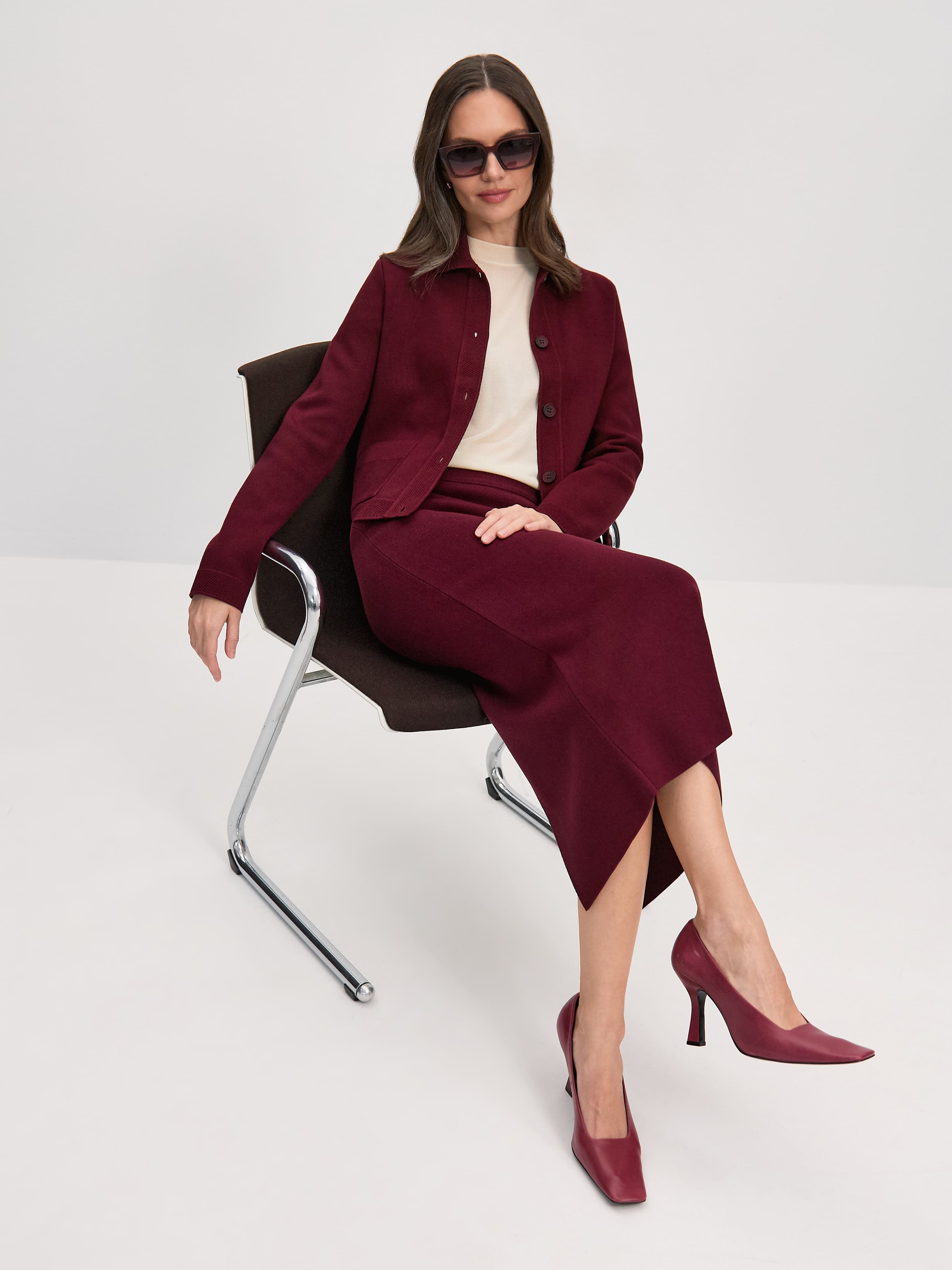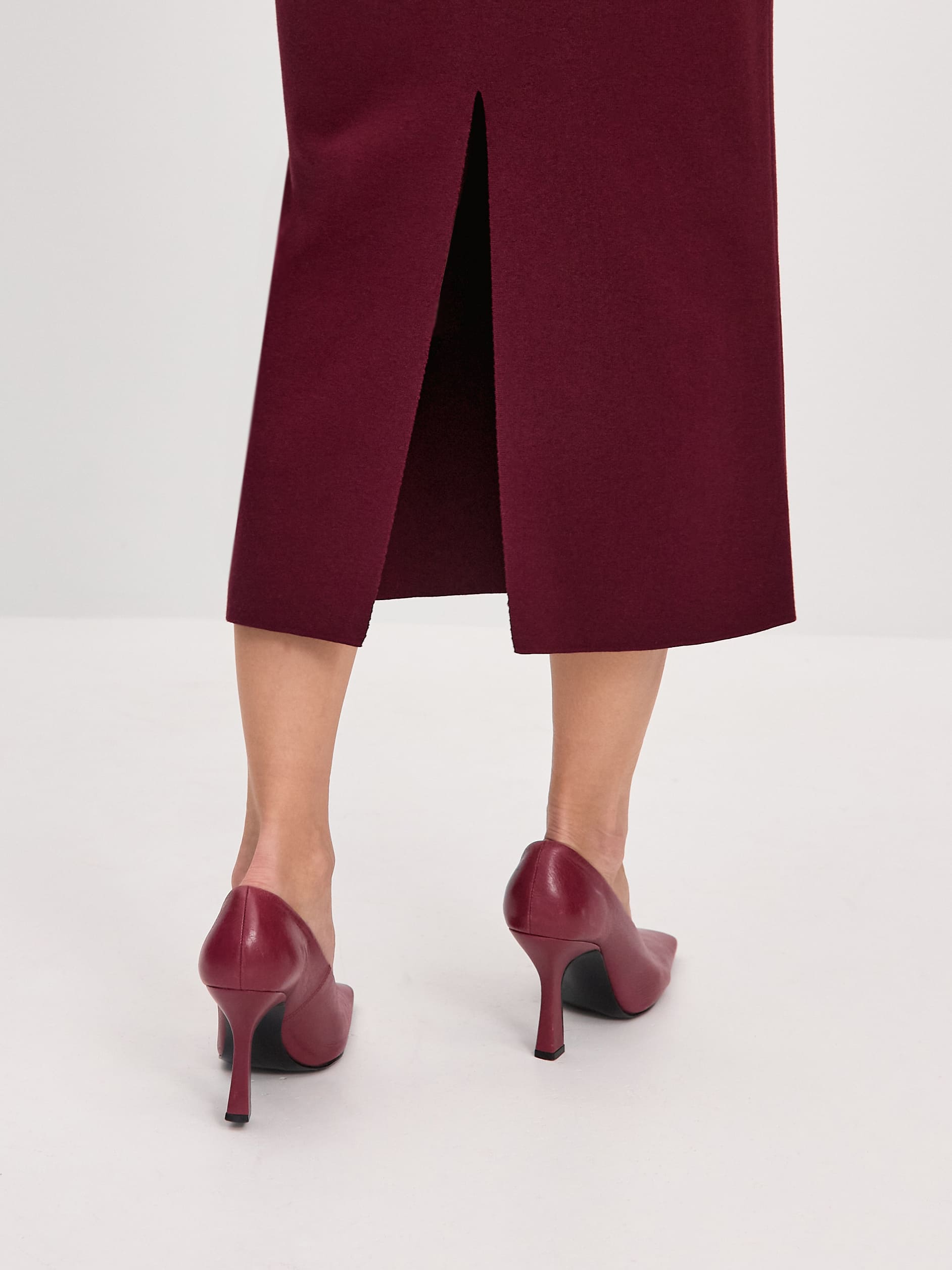 Лаконичное прямое миди с акцентным вырезом сзади – настоящая история соблазнения, воссозданная в премиум-трикотаже. Обладает уникальной способностью «собирать» силуэт – правильно очерчивает контуры, но не облегает больше, чем это необходимо. Глубина выреза и слегка зауженный крой мотивируют на «подиумную походку» и эксперименты с вечерними тотал луками. Трикотаж плотный, с 50% хлопка, сбалансированного вискозой для улучшения воздухопроницаемости полотна.
