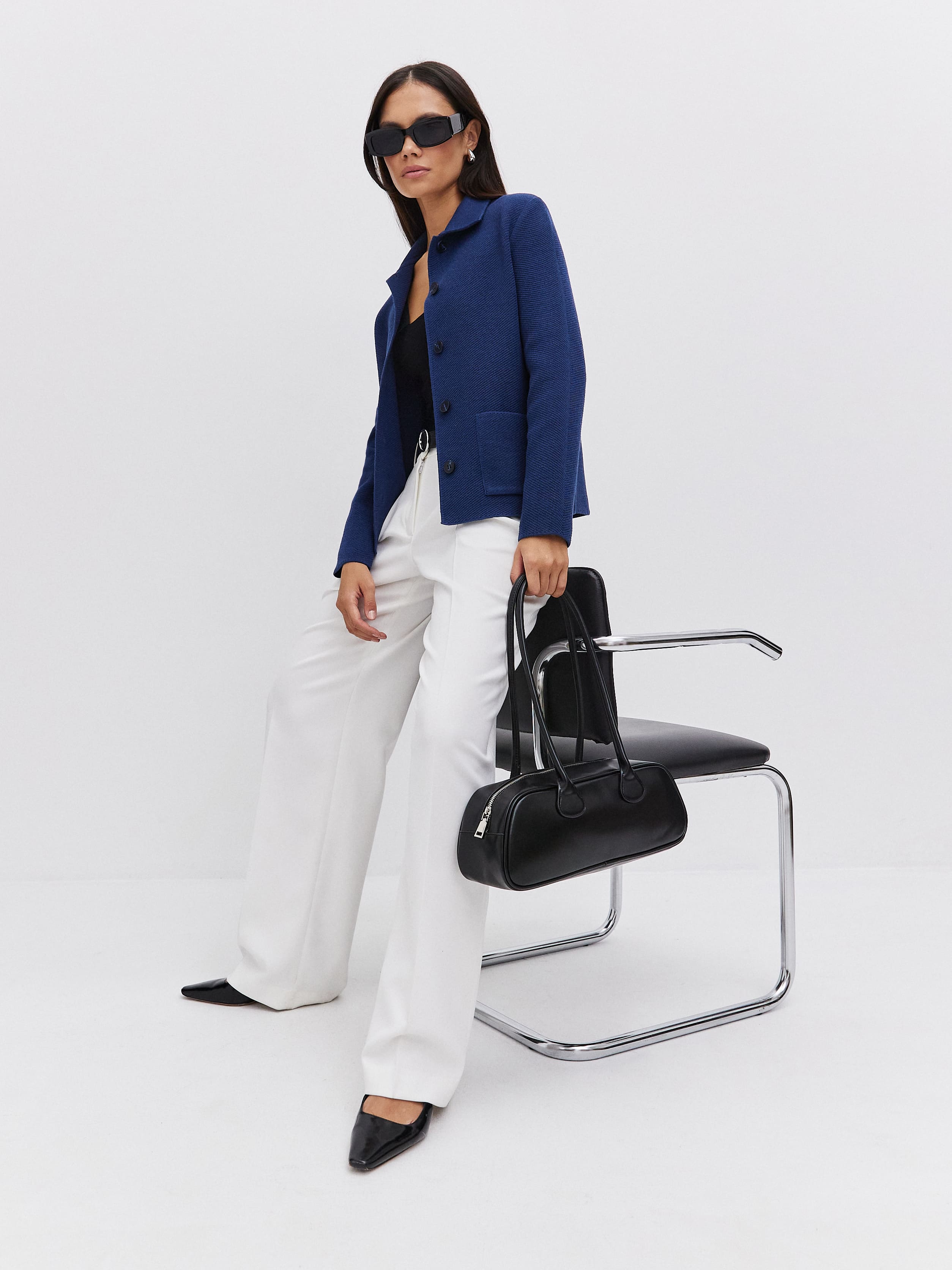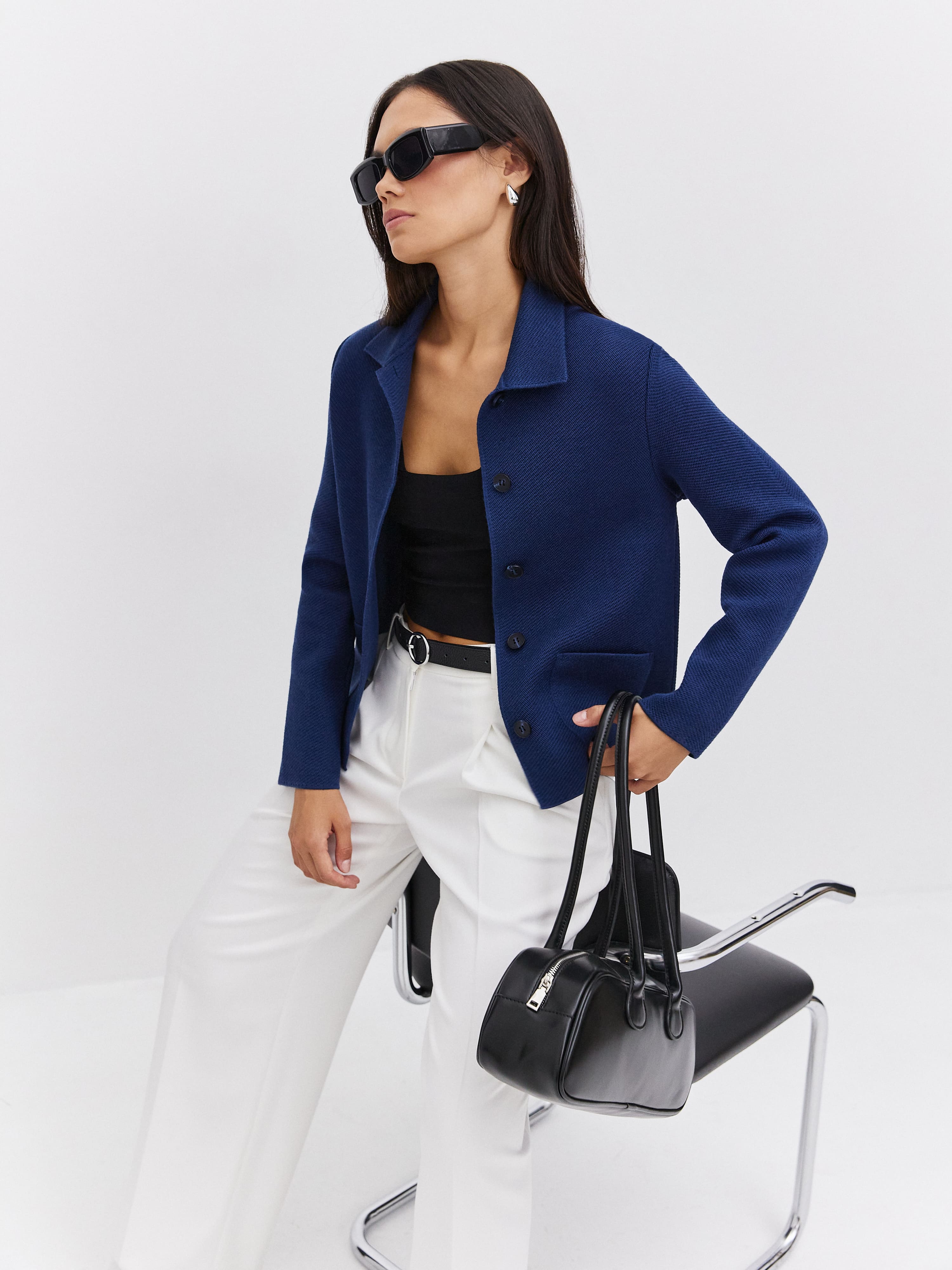 Миссия этого минималистичного жакета из мягкой мериносовой шерсти – сделать офисные образы еще теплее и уютнее. Но это совершенно не мешает комбинировать его с вещами любой формальности – от строгой юбки до трендовых моделей джинсов. Плотный, качественный трикотаж создан с учетом сезонных нюансов. Натуральная шерсть прекрасно вентилируется, но при этом хорошо удерживает тепло.