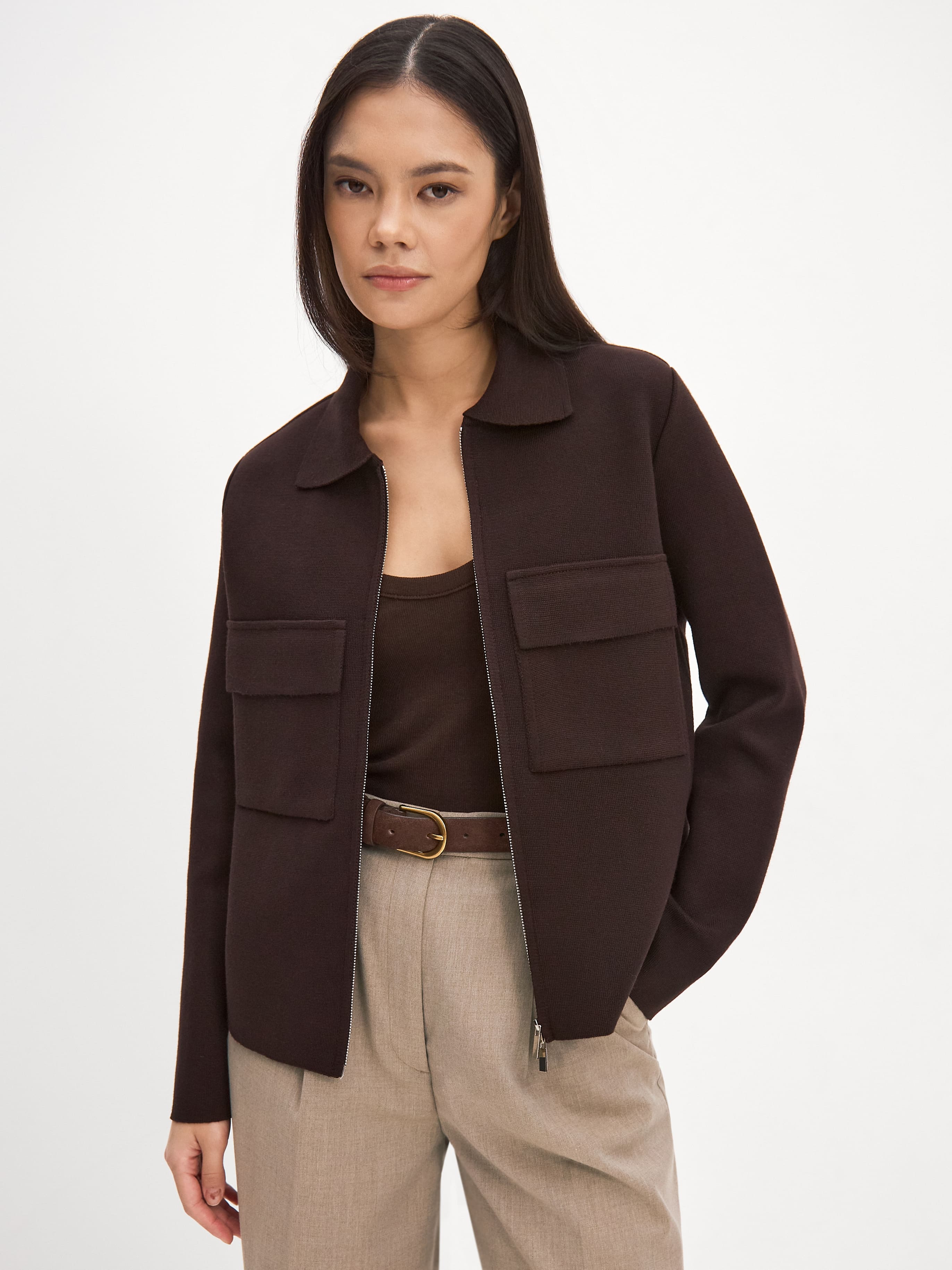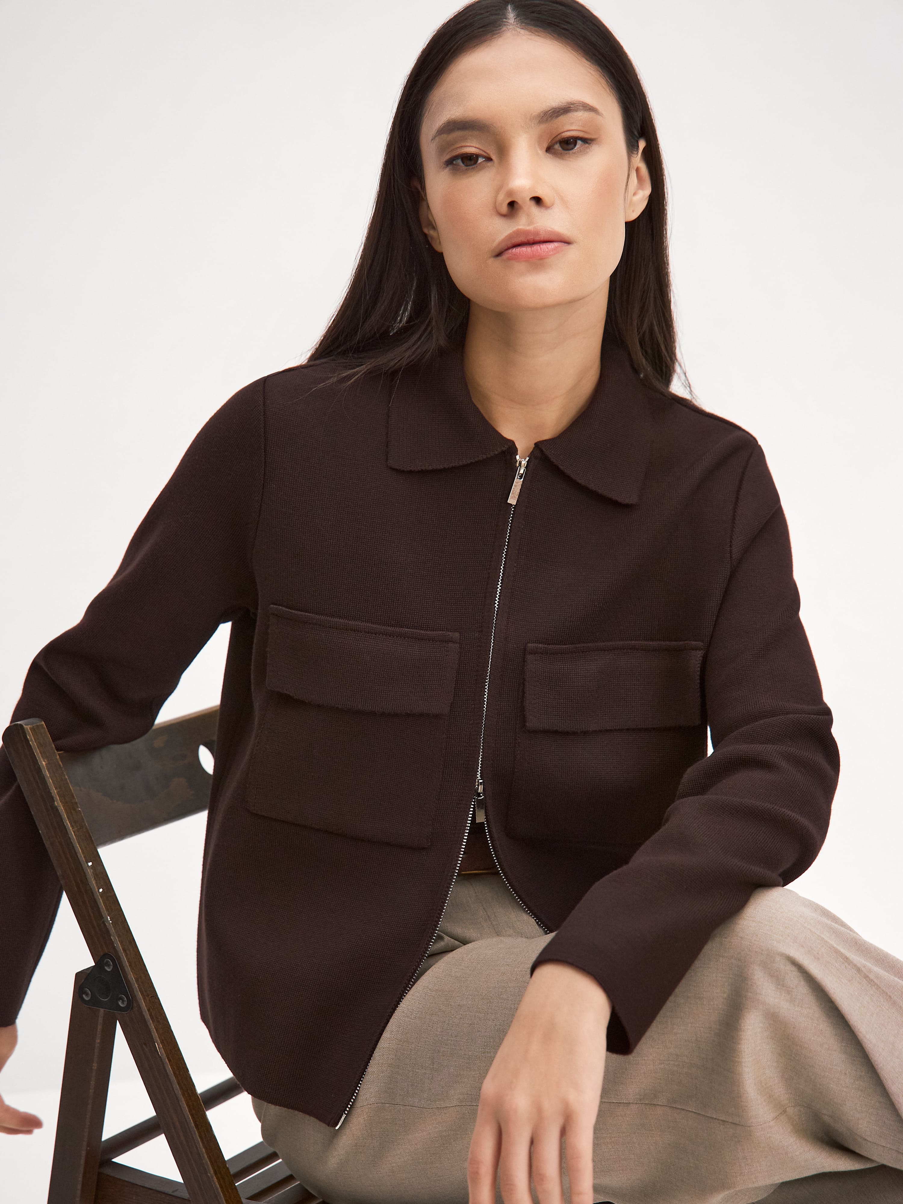 Минималистичный жакет из плотного формоустойчивого хлопка. Наш весенний подарок всем, кто мечтал сменить текстильную ветровку на что-то действительно небанальное. Модель на двойной молнии, с акцентными карманами и аккуратным отложным воротничком. Связана из пряжи с длинноволокнистым хлопком, который практически не создает ворса и пиллей (катышков) на поверхности изделия. За счет высокого содержания вискозы, жакет приятно-шелковистый на ощупь.