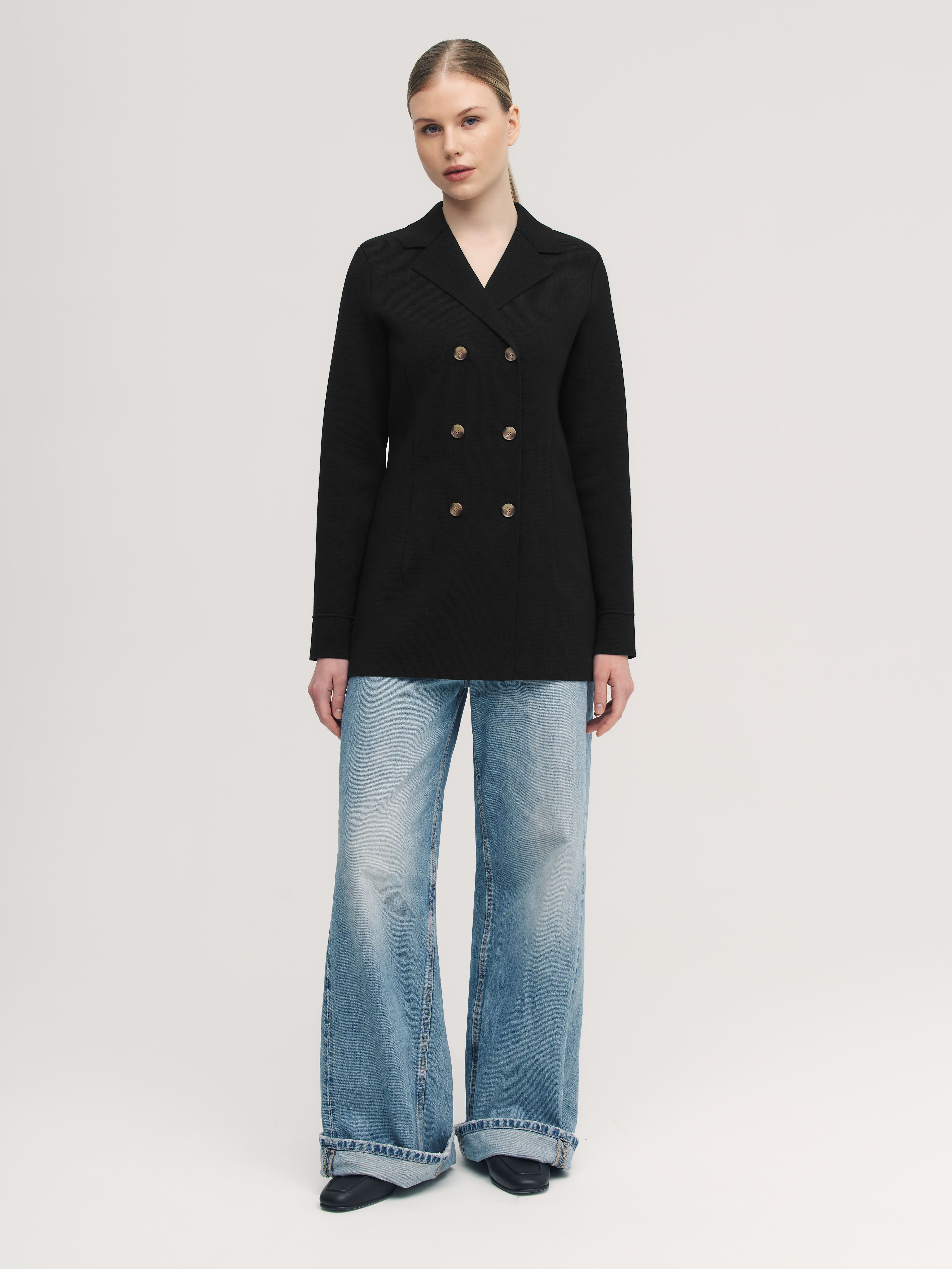 Силуэтный удлиненный жакет из хлопка, который знает все о совершенной талии. Главный секрет изделия – в аккуратных вытачках. Это они моделируют плавные переходы между участками фигуры и задают правильные изгибы. Два ряда роговых пуговиц служат мягким акцентом. Идеальное дополнение к образам в стиле нью лук, которые уже готовы ворваться в тренды этого сезона.