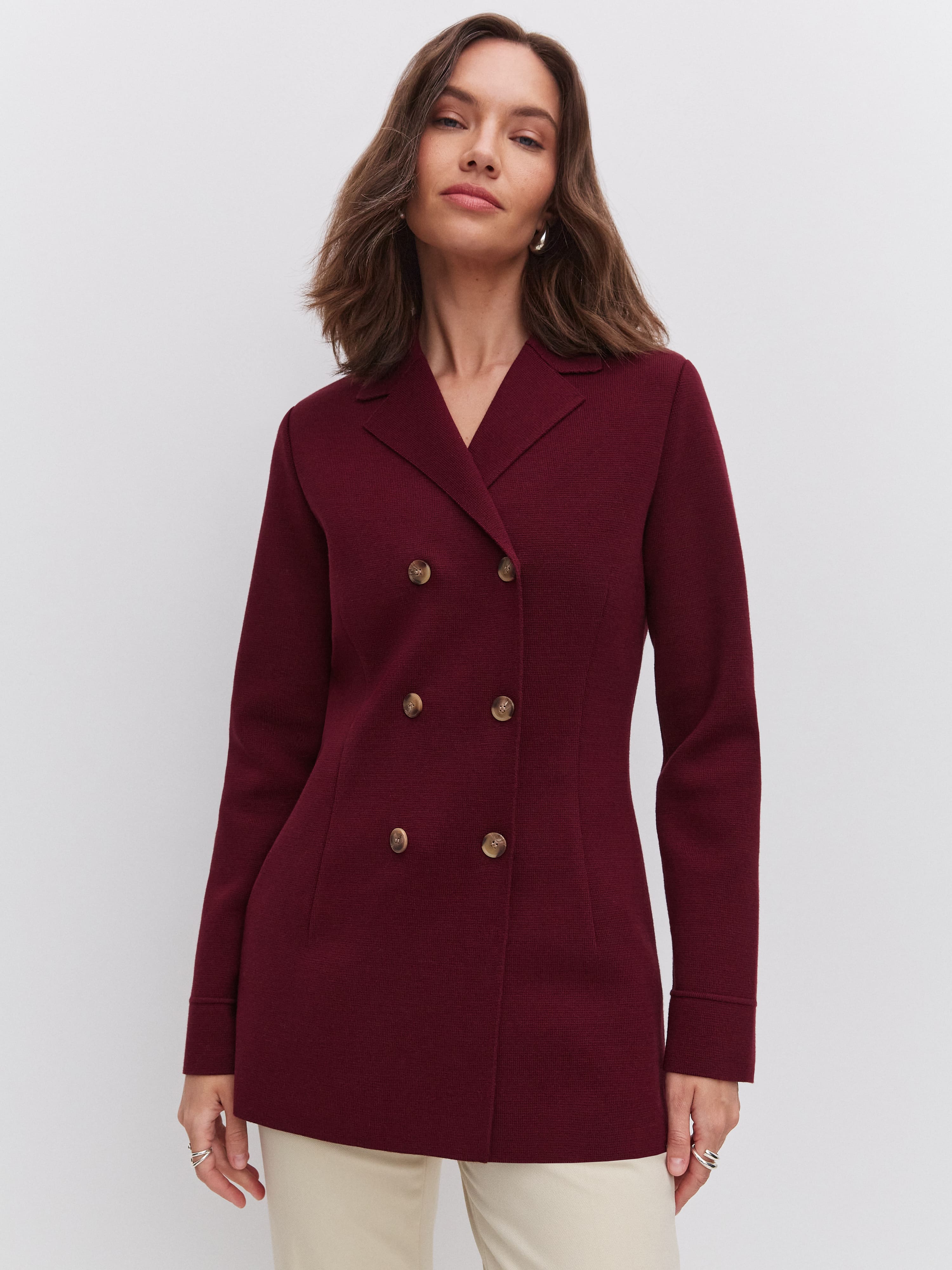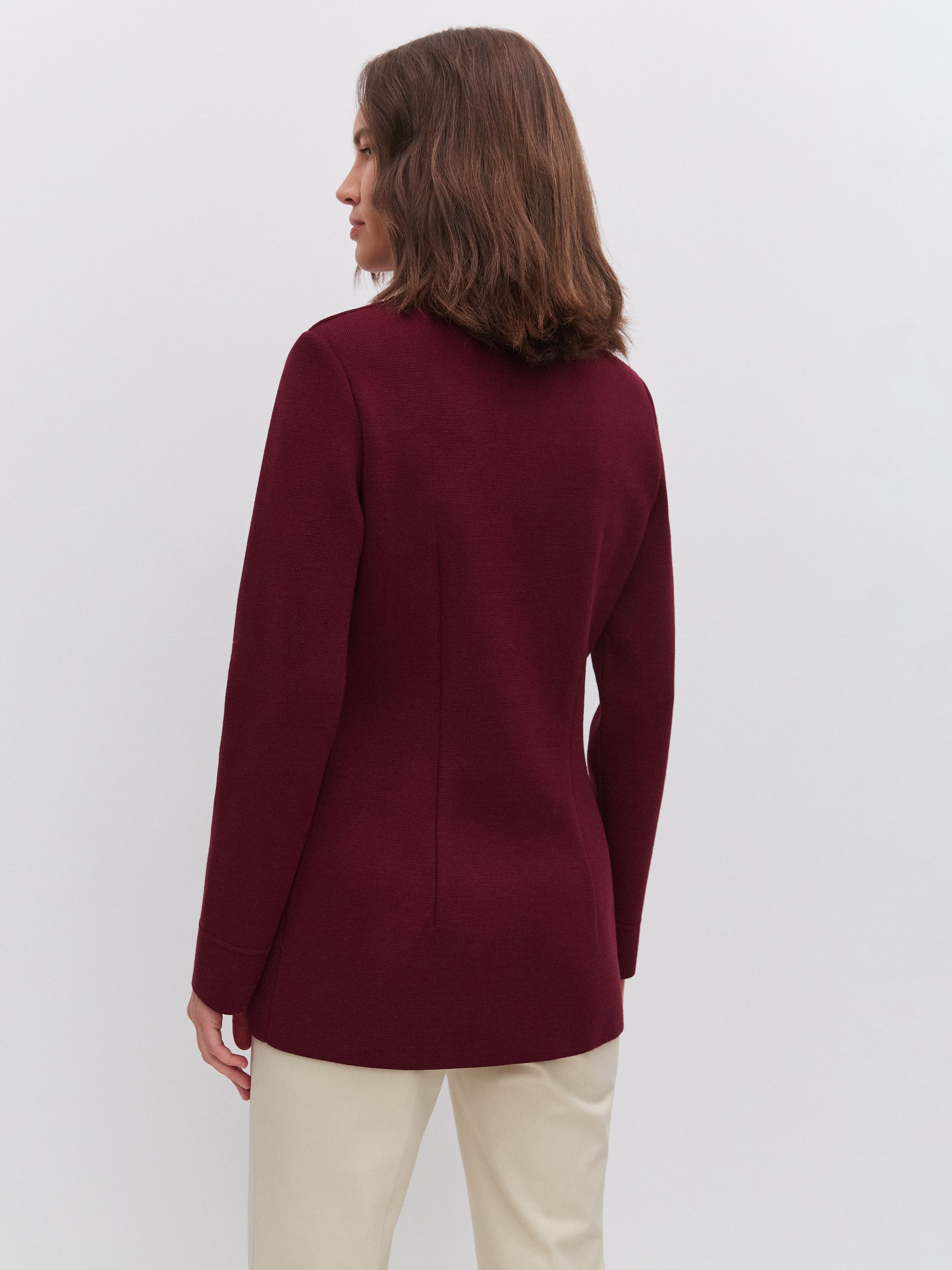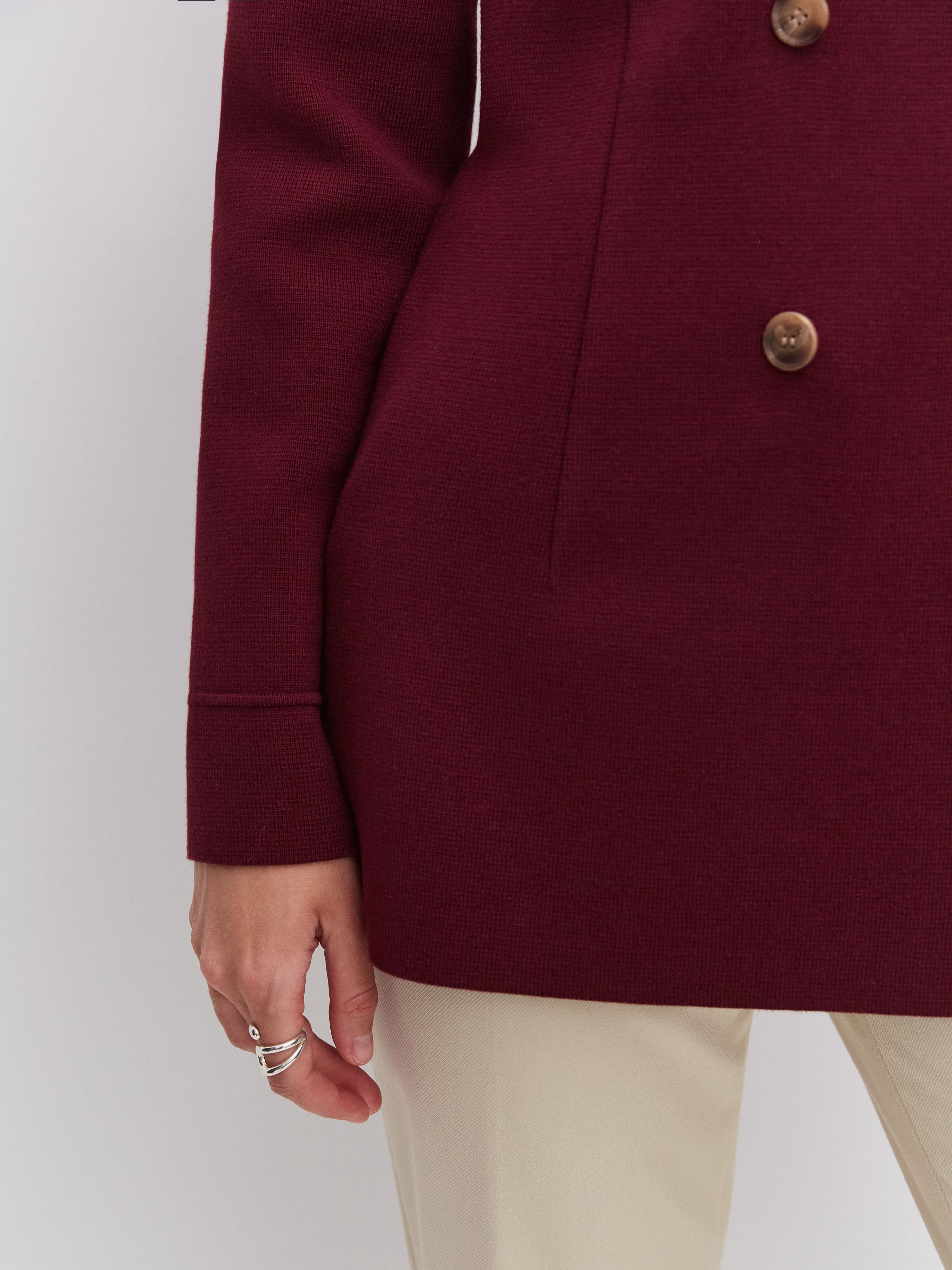 Силуэтный удлиненный жакет из хлопка, который знает все о совершенной талии. Главный секрет изделия – в аккуратных вытачках. Это они моделируют плавные переходы между участками фигуры и задают правильные изгибы. Два ряда роговых пуговиц служат мягким акцентом. Идеальное дополнение к образам в стиле нью лук, которые уже готовы ворваться в тренды этого сезона.