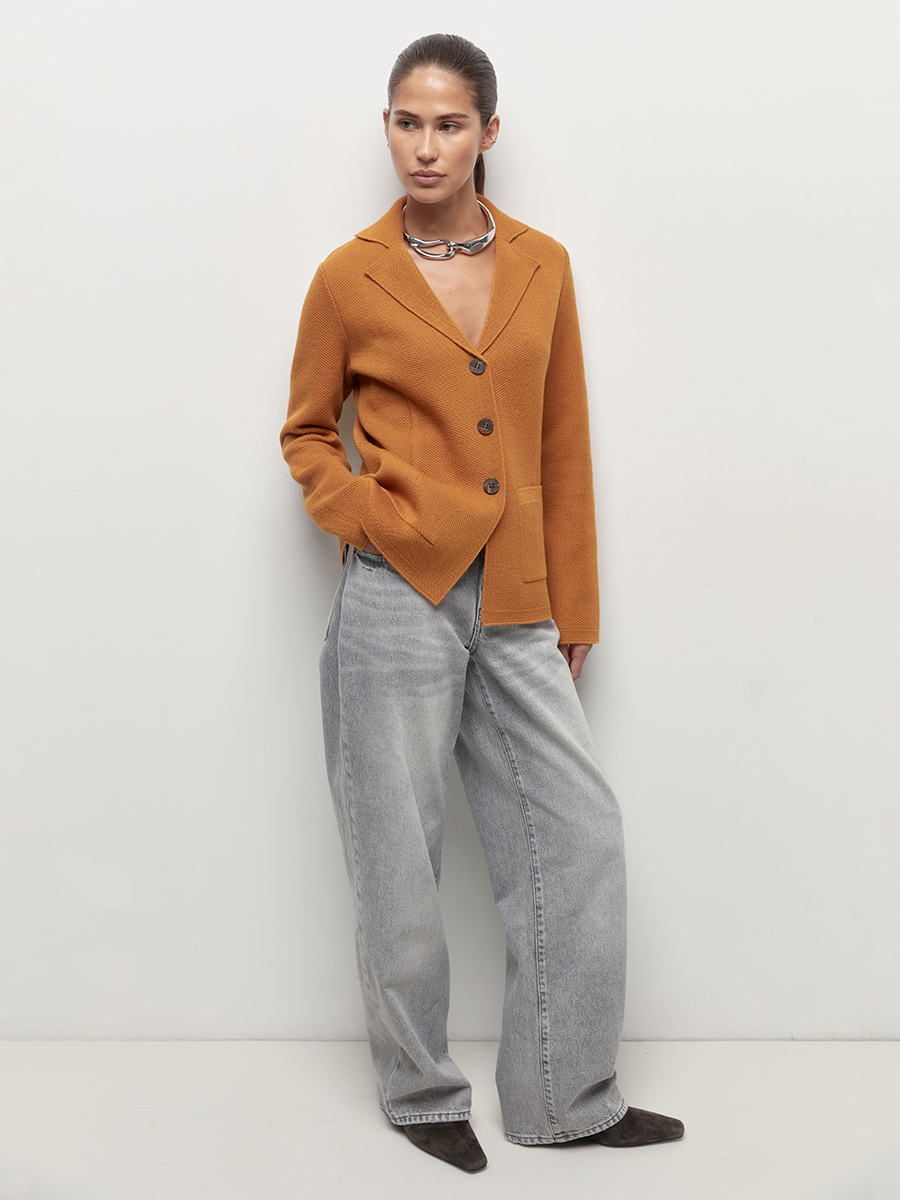 Жакет полуприталенный из шерсти мериноса Имбирь