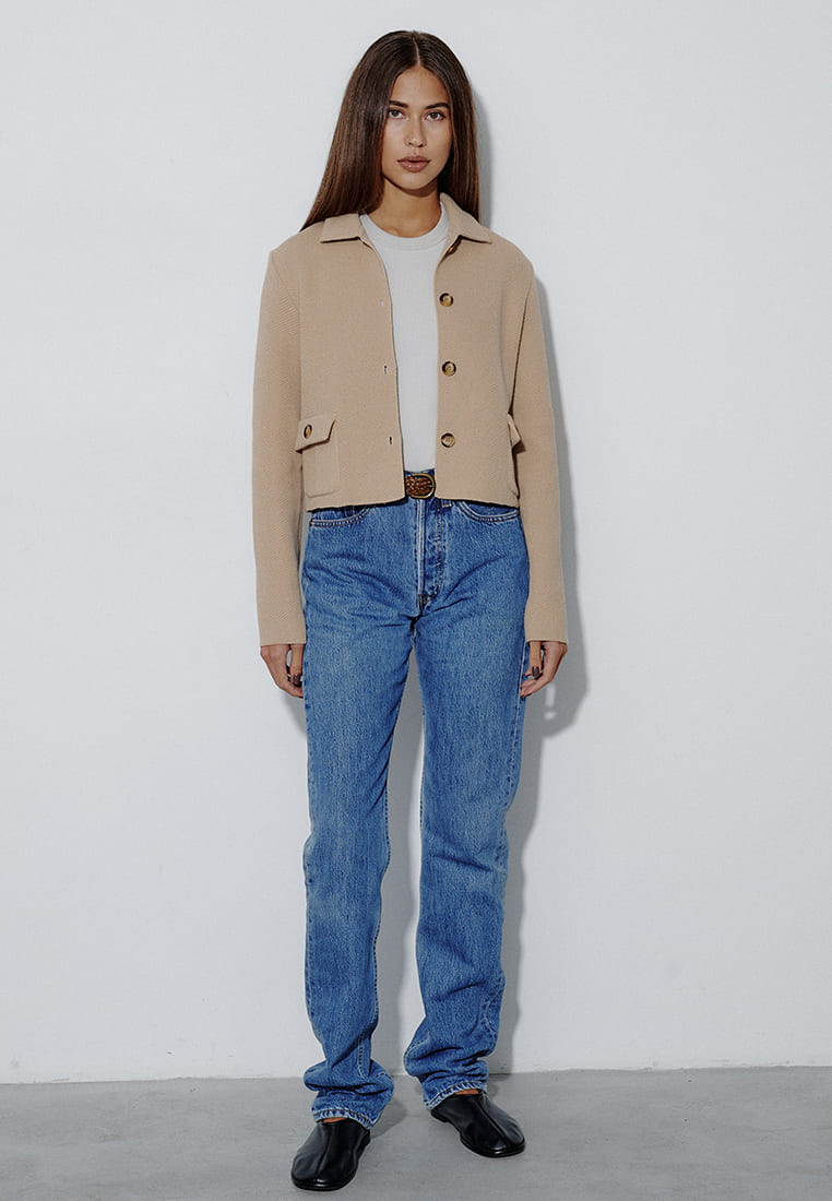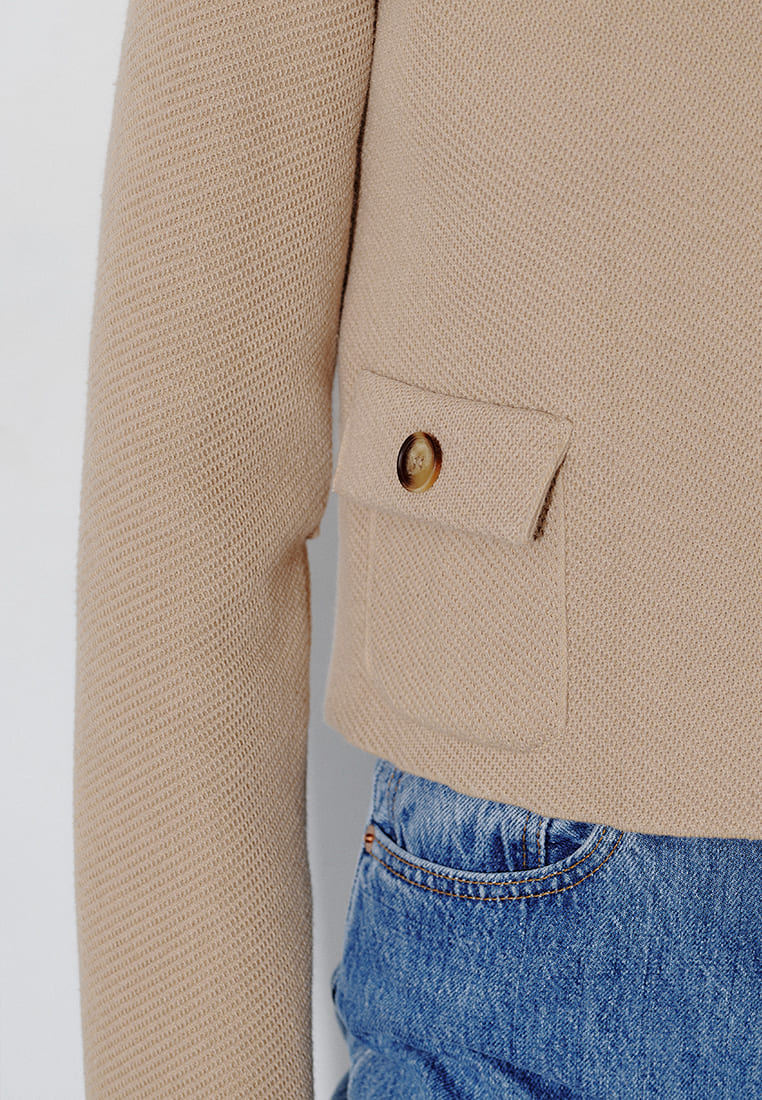 Неоклассика с отсылкой к легендарным пиджакам Шанель. Плотный фактурный трикотаж с хлопком сохраняет четкость линий и полноценно дышит. Отложной воротник, круглые пуговицы и накладные карманы гармонично расставляют акценты. Идеальный жакет, чтобы собрать офисную капсулу во французском стиле или дорогой вечерний дресс-ап