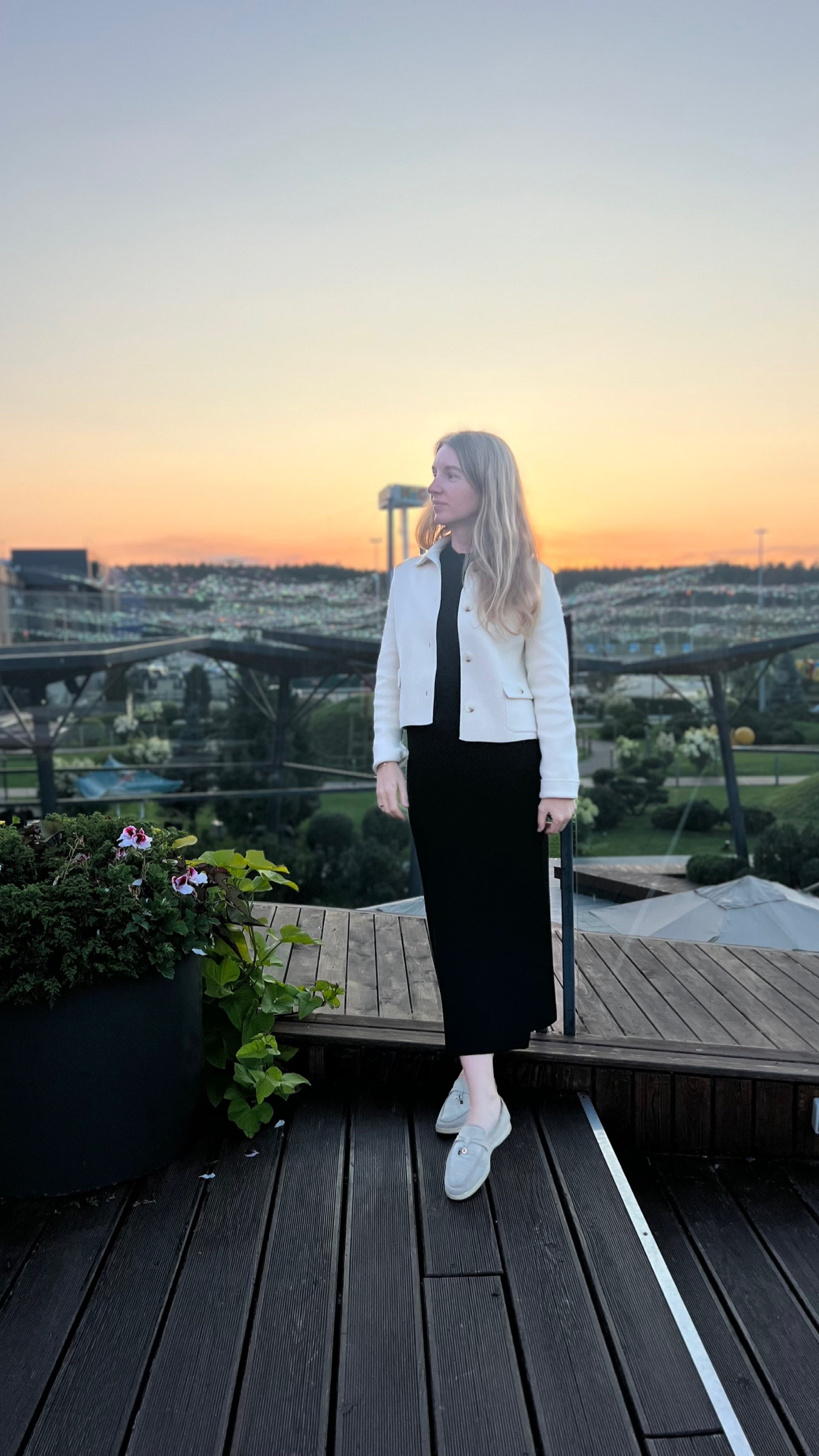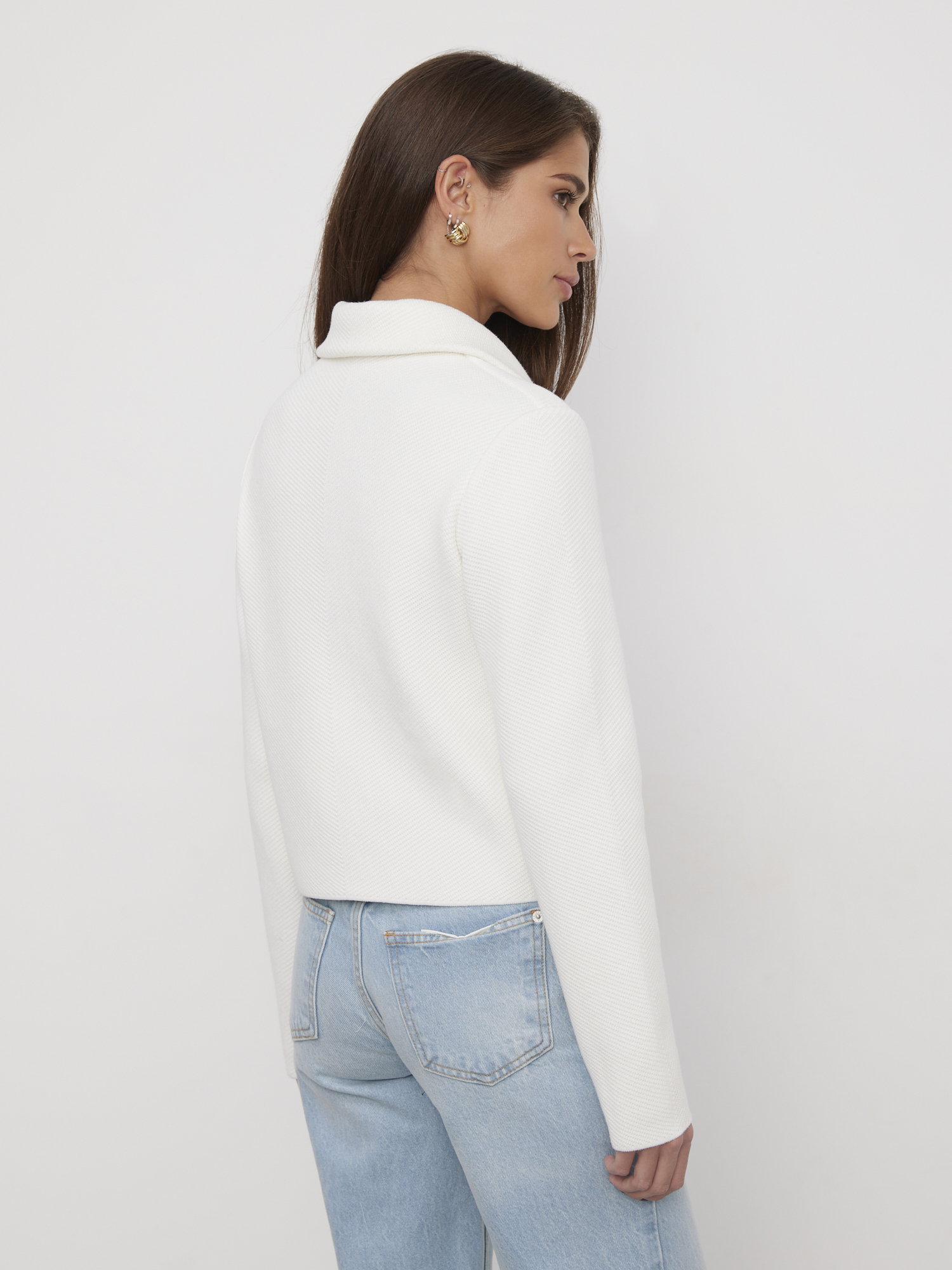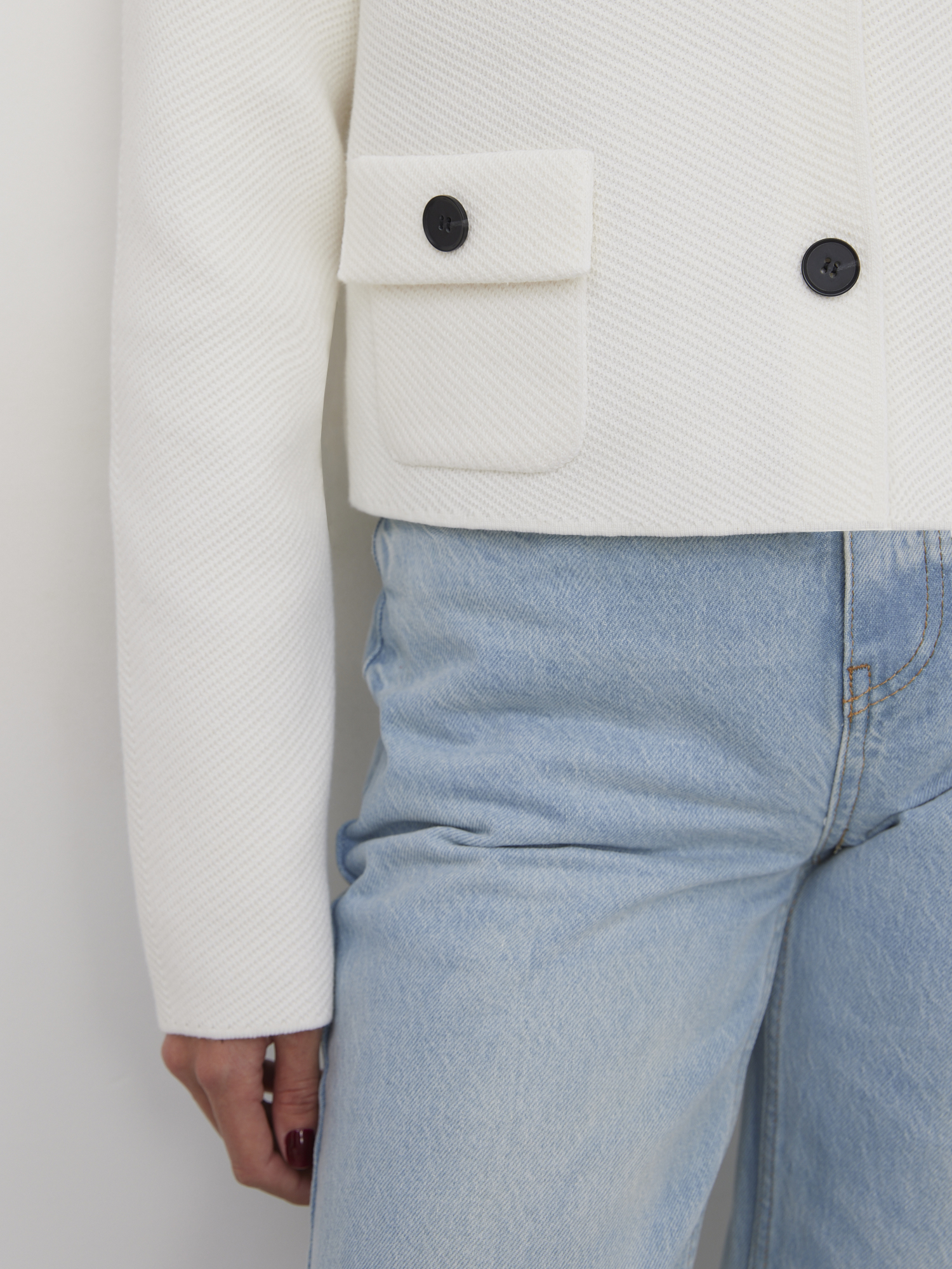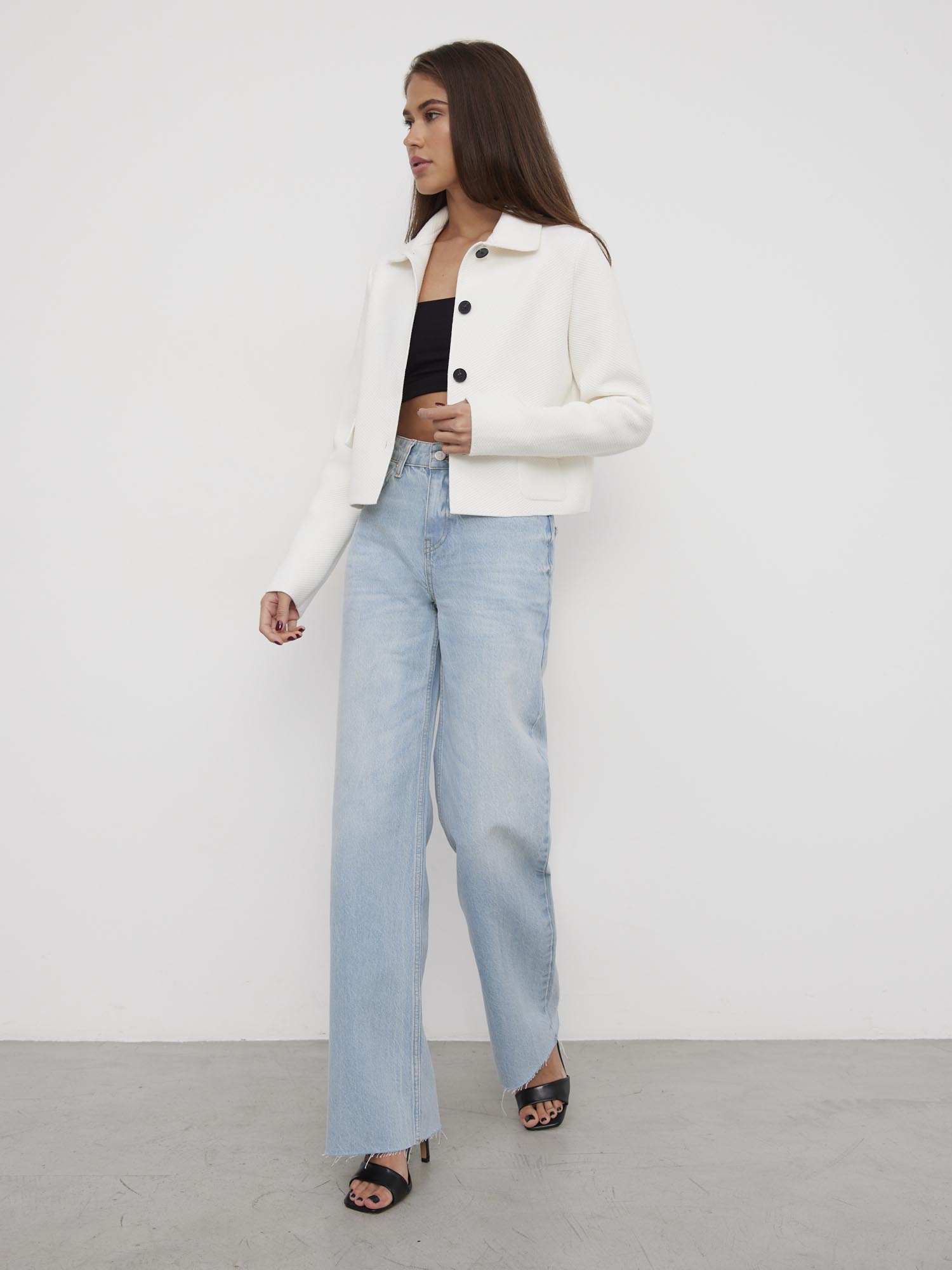 Неоклассика с отсылкой к легендарным пиджакам Шанель. Плотный фактурный трикотаж с хлопком сохраняет четкость линий и полноценно дышит. Отложной воротник, круглые пуговицы и накладные карманы гармонично расставляют акценты. Идеальный жакет, чтобы собрать офисную капсулу во французском стиле или дорогой вечерний дресс-ап