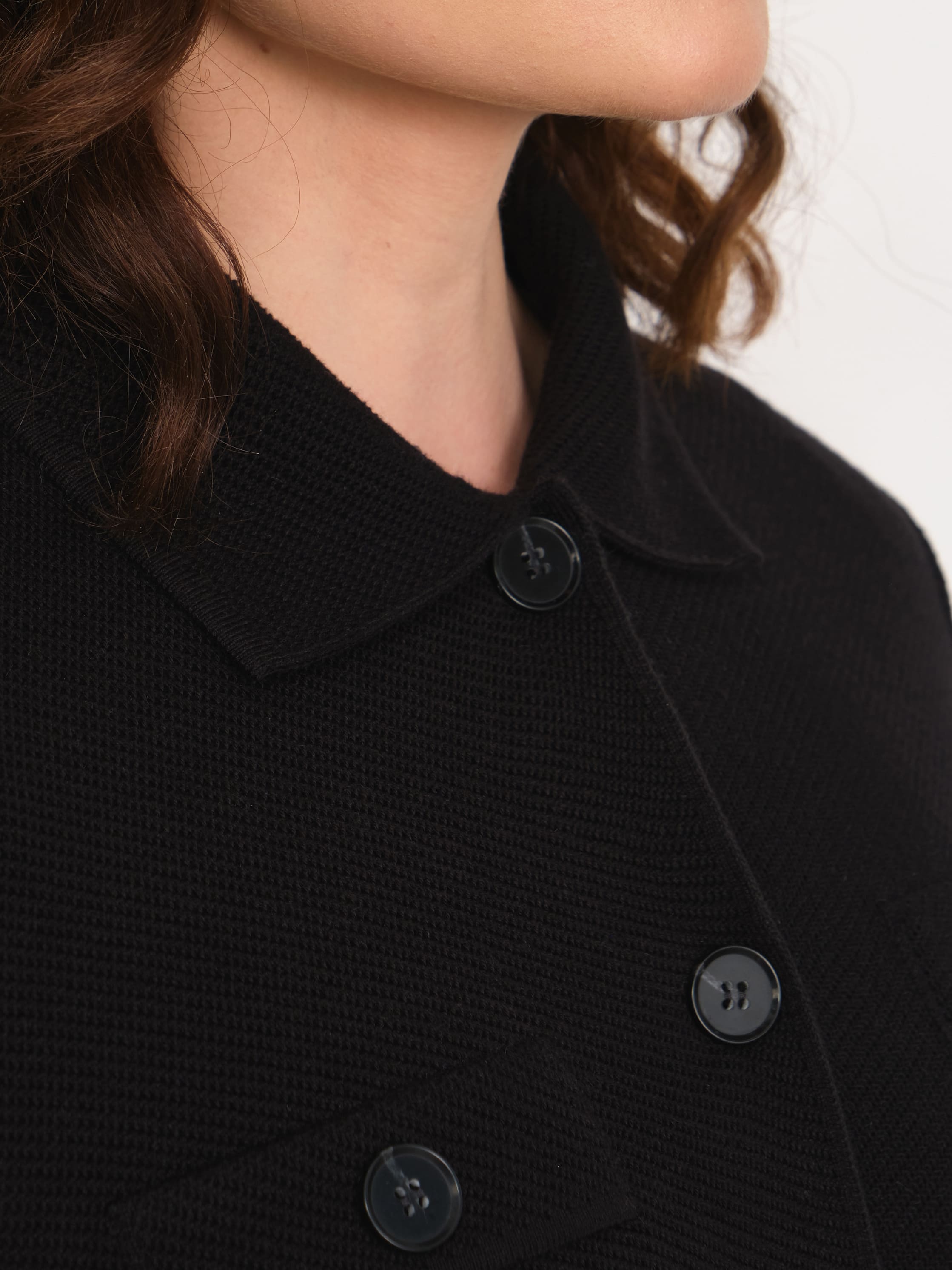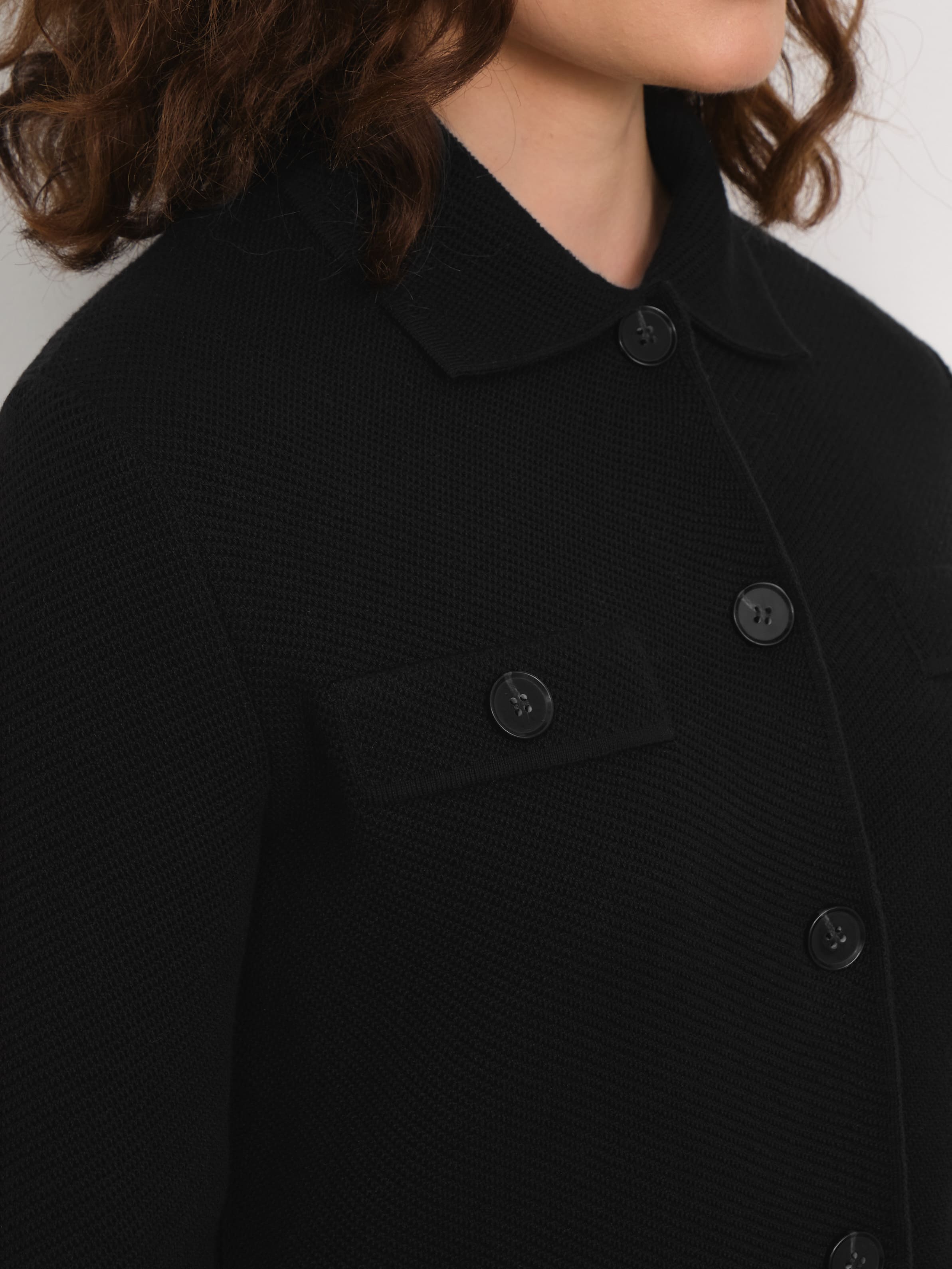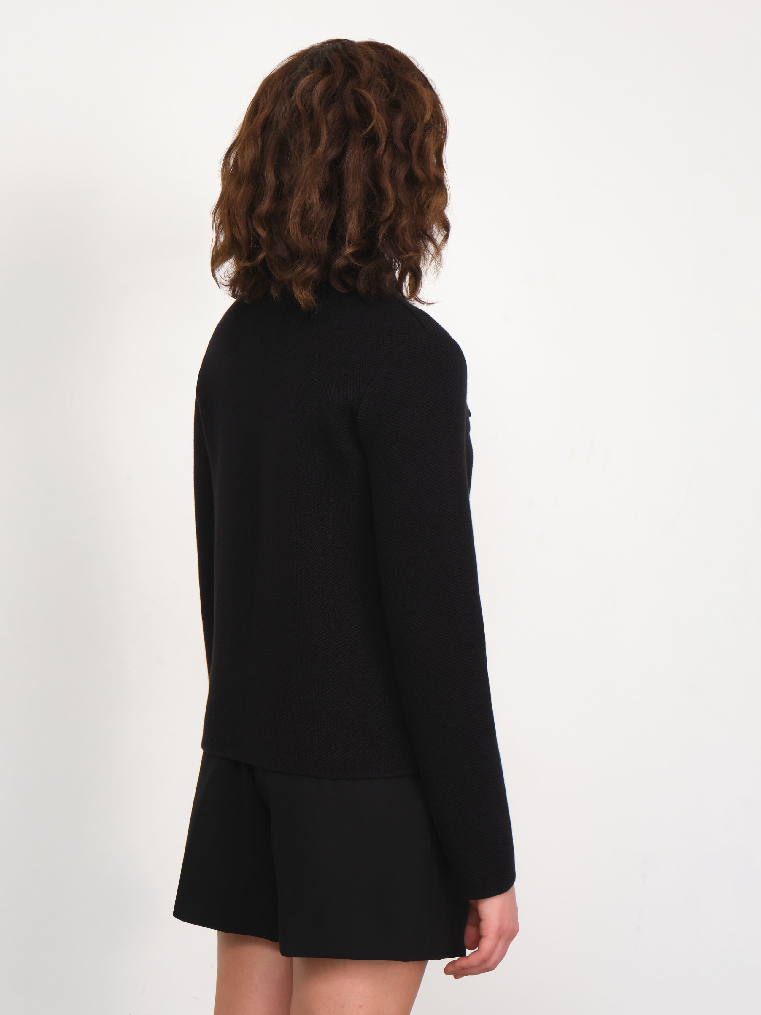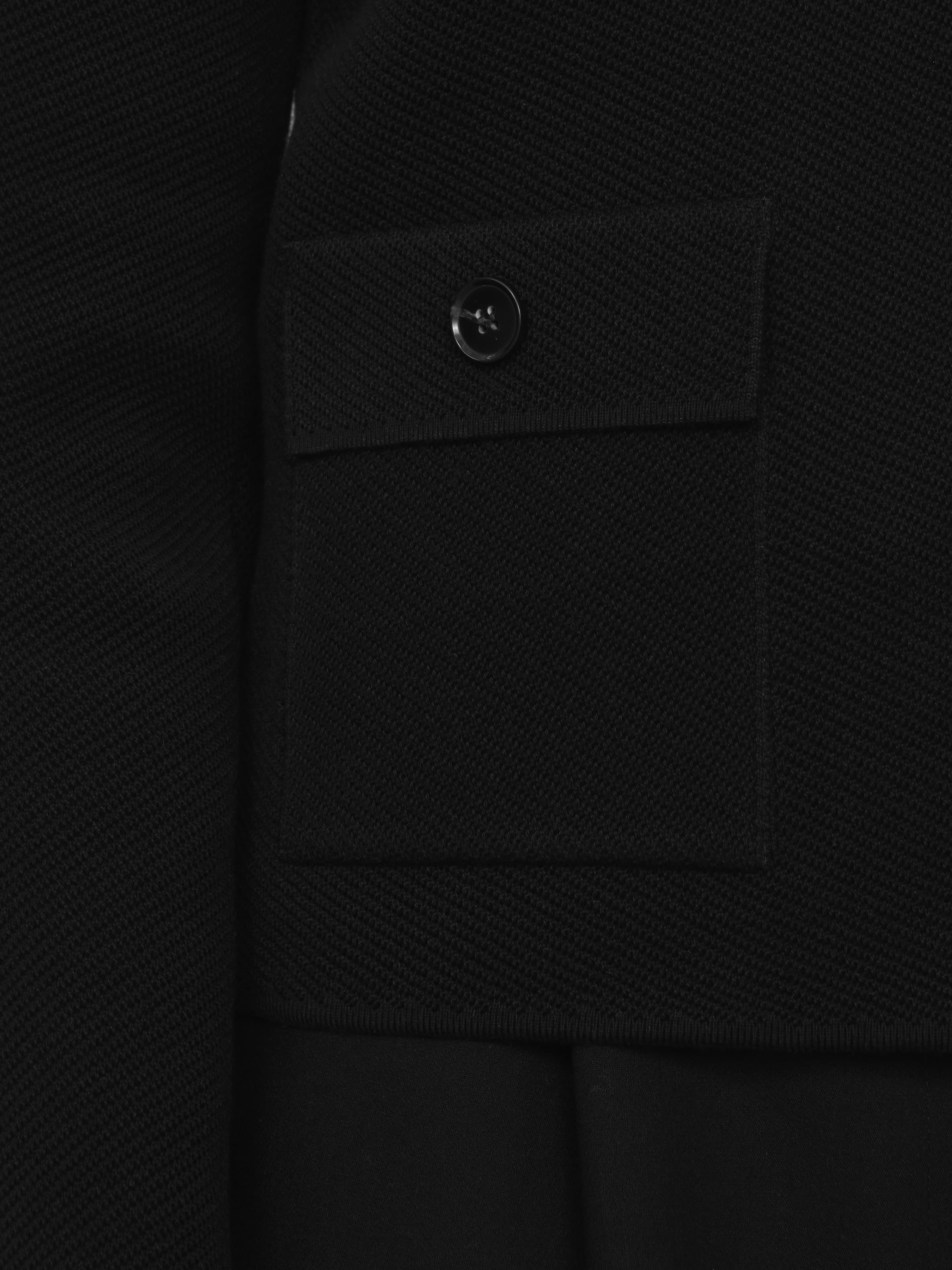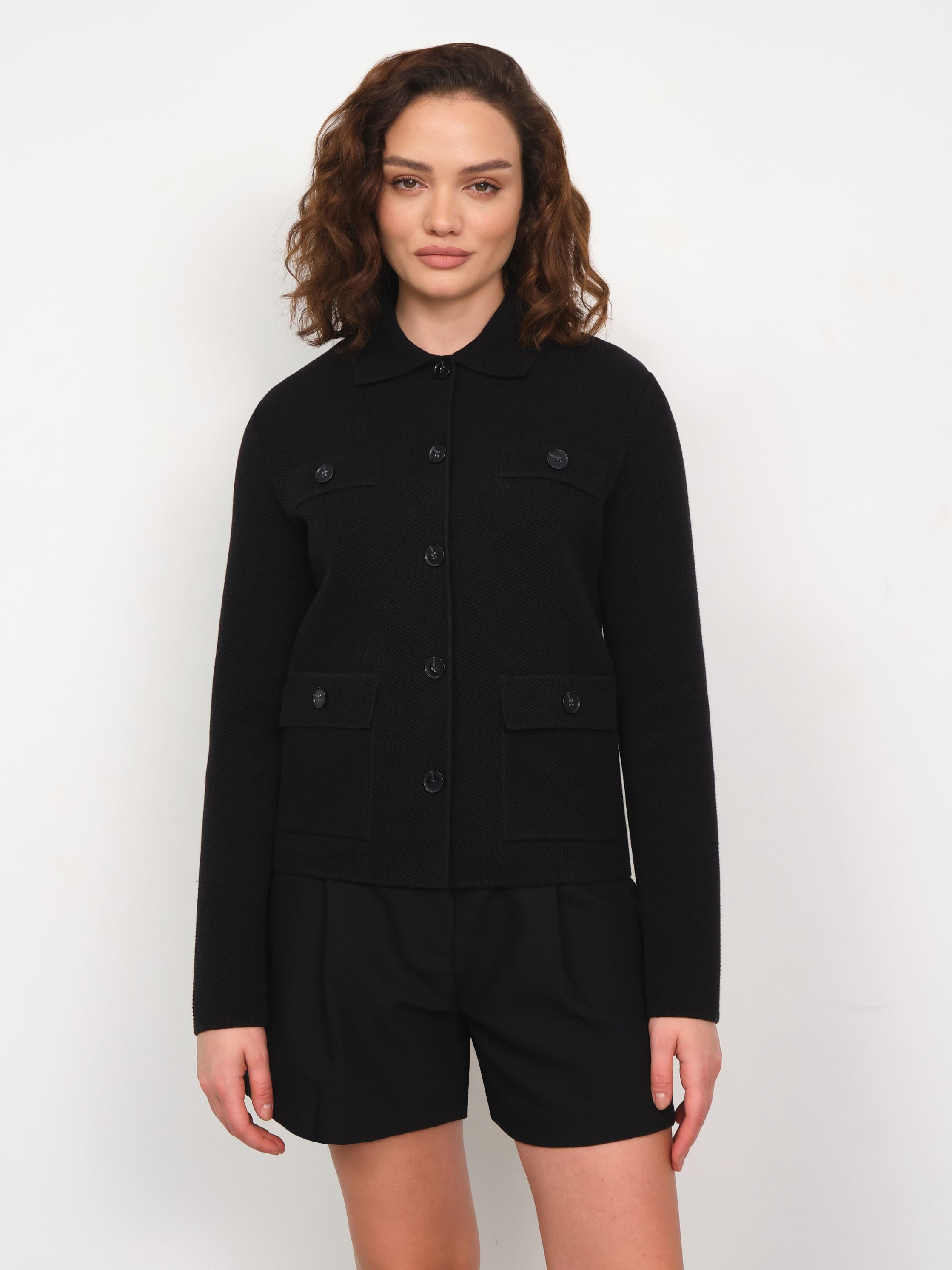 Дышащий хлопковый жакет с интересной фактурой рисунка станет приятной альтернативой коктейльным пиджакам. Сдержанные линии и классические детали отделки предусматривают возможность сочетания с нестрогим дресс-кодом. Но на пятничном на бранче с подружками модель тоже будет смотреться вполне органично.