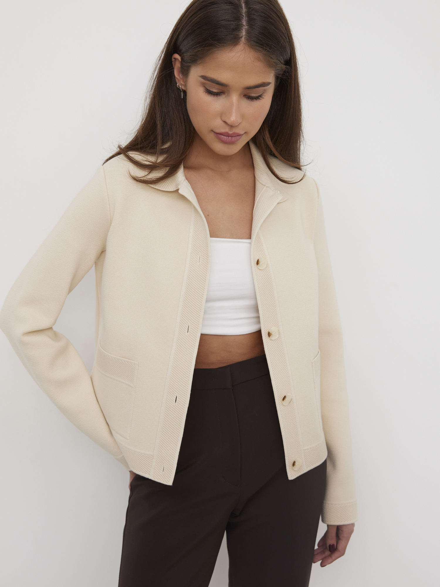 Ницца жакет трикотажный (кремовый, 46)