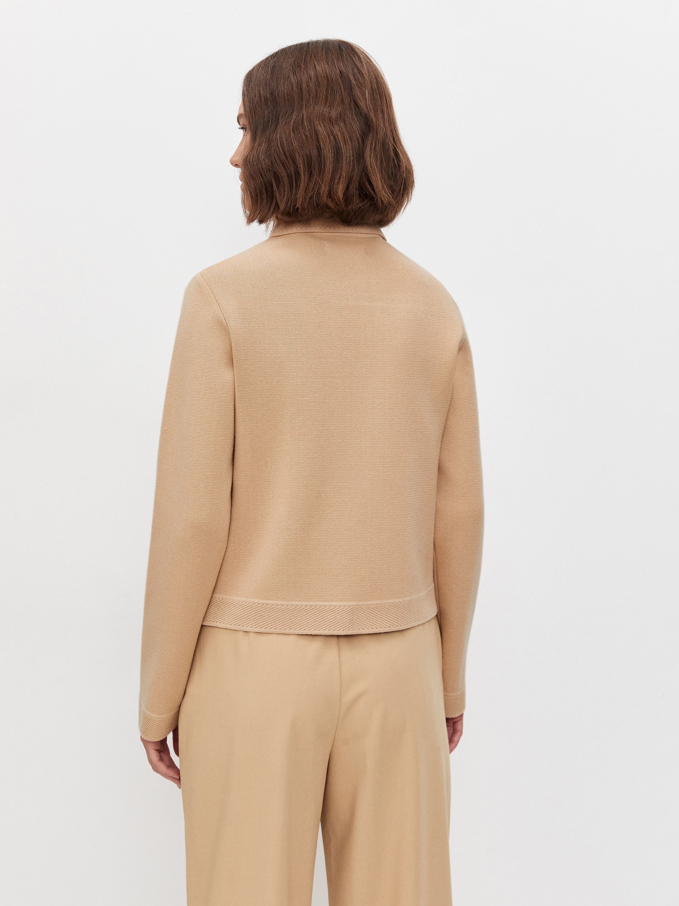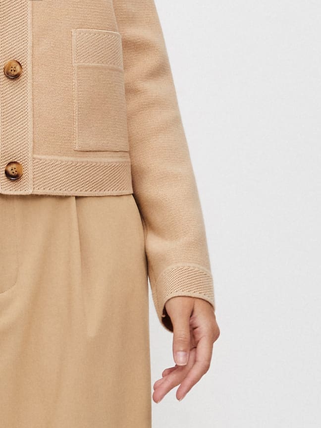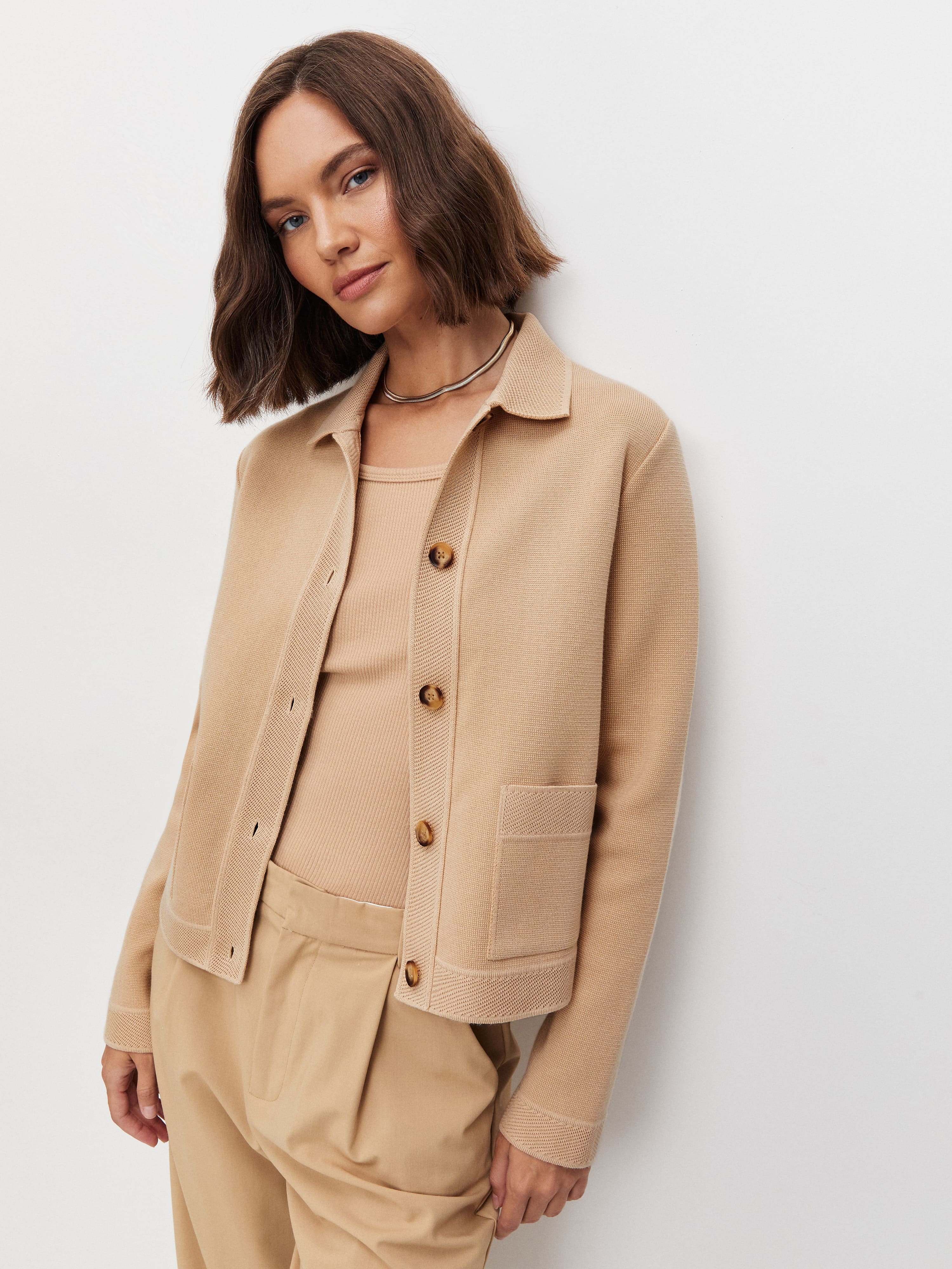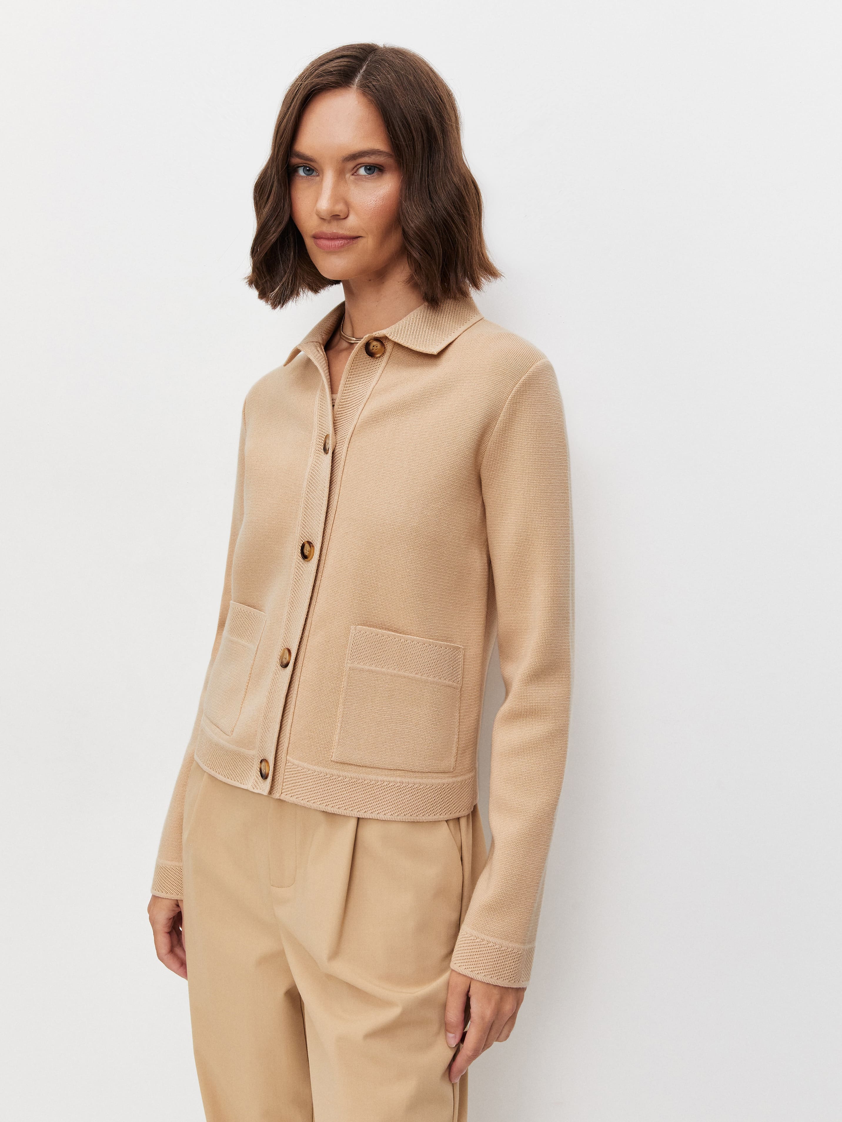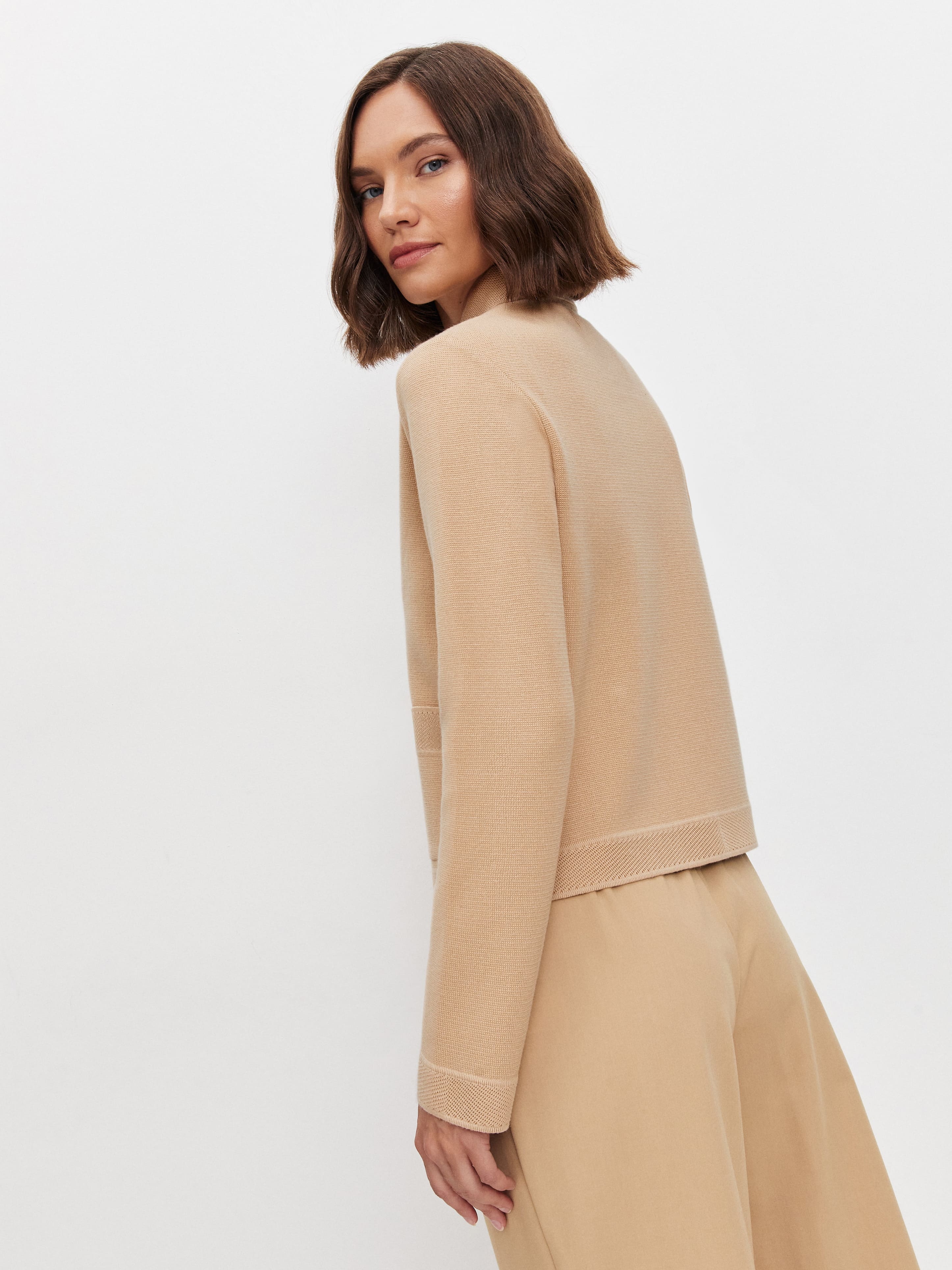 Кроп длина этого нейтрального хлопкового жакета вдохновляет на интересные сочетания. Чтобы модель не смотрелась скучно, мы прибегли к контрасту текстур – гладкий трикотаж оттенили рельефной отделкой полочек, воротника и рукавов. Чтобы структура хлопка идеально сохраняла форму, в состав введена шелковистая вискозная нить. Она укрепила переплетение петель и добавила изделию приятной мягкости.