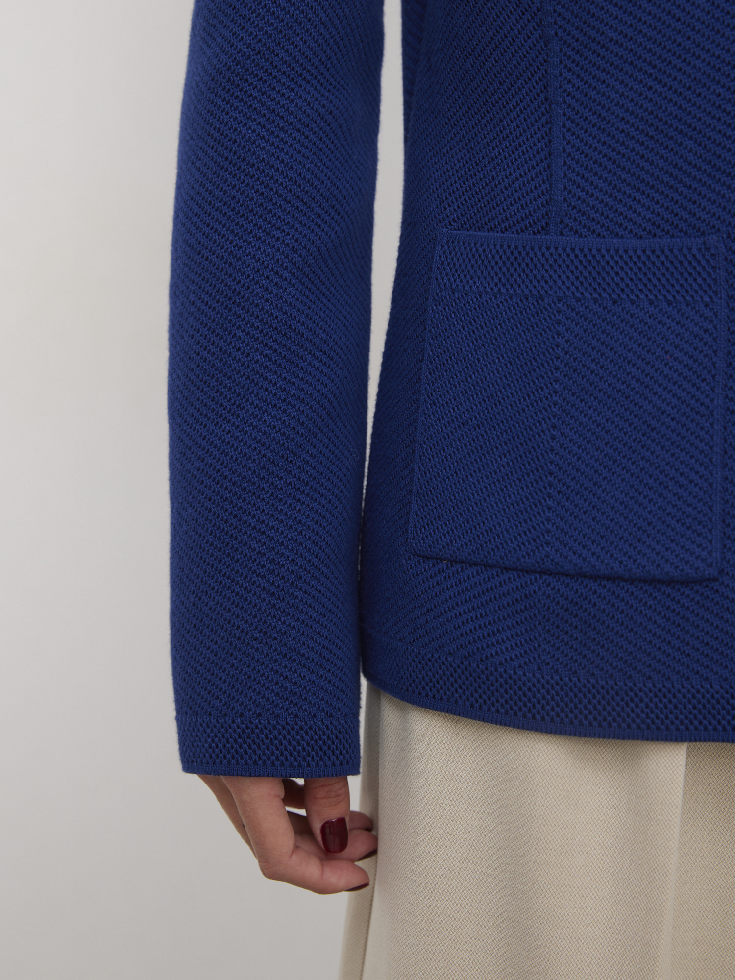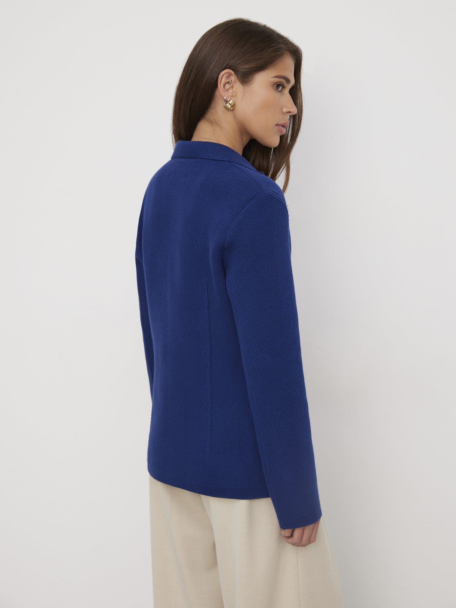 Этот хлопковый английский жакет максимально заряжен на комфорт и выпущен в самых топовых оттенках. Так что если нужен компромисс между полуприлегающим деловым пиджаком и трикотажной кофтой, – это он. Маленький штрих к образу – оригинальная текстура. Вязаный узор располагается по диагонали, что визуально стройнит. Прекрасное дополнение к ансамблям в стиле бизнес-кэжуал, но при желании возможна интеграция и в более непринужденный гардероб.