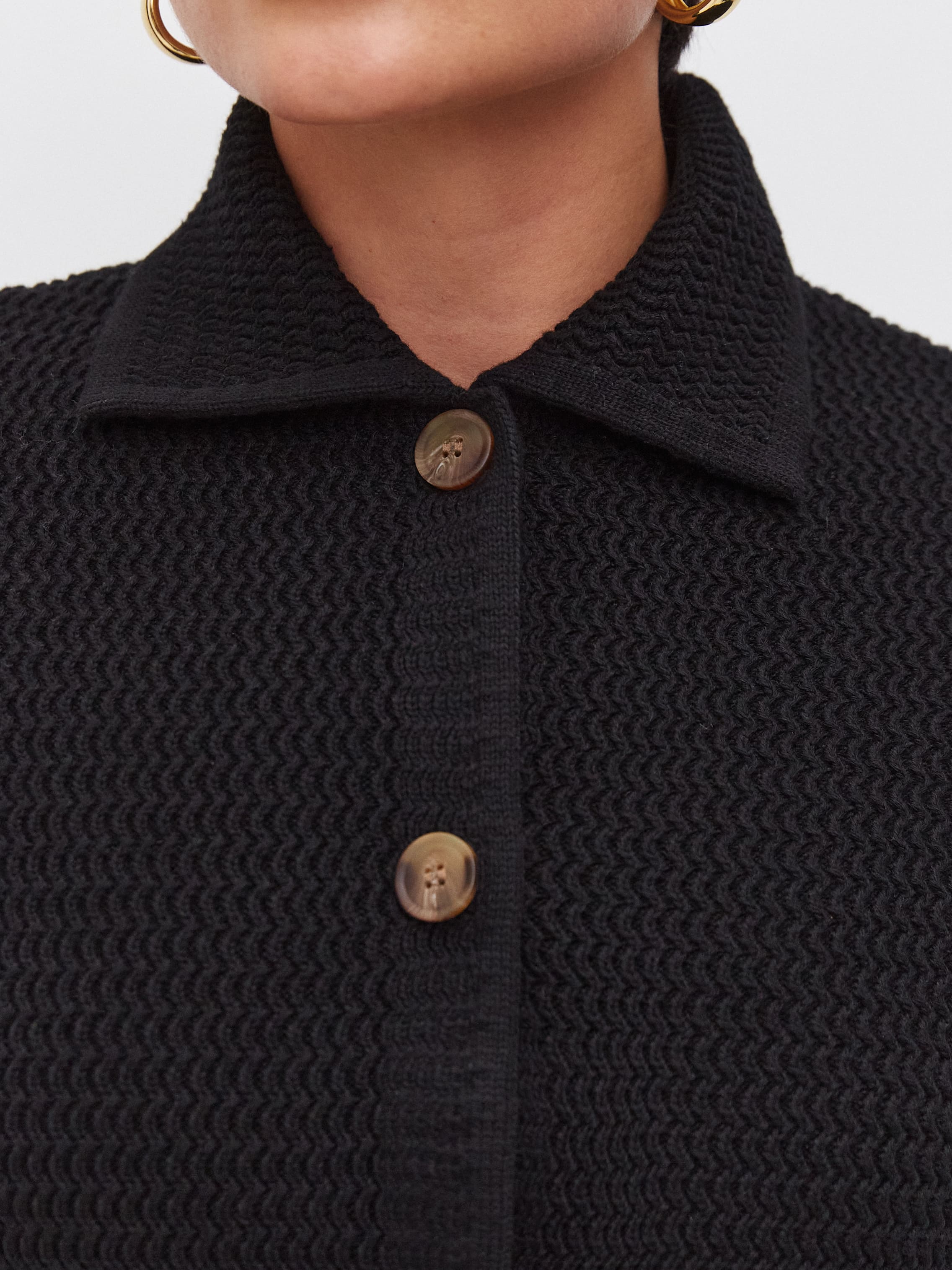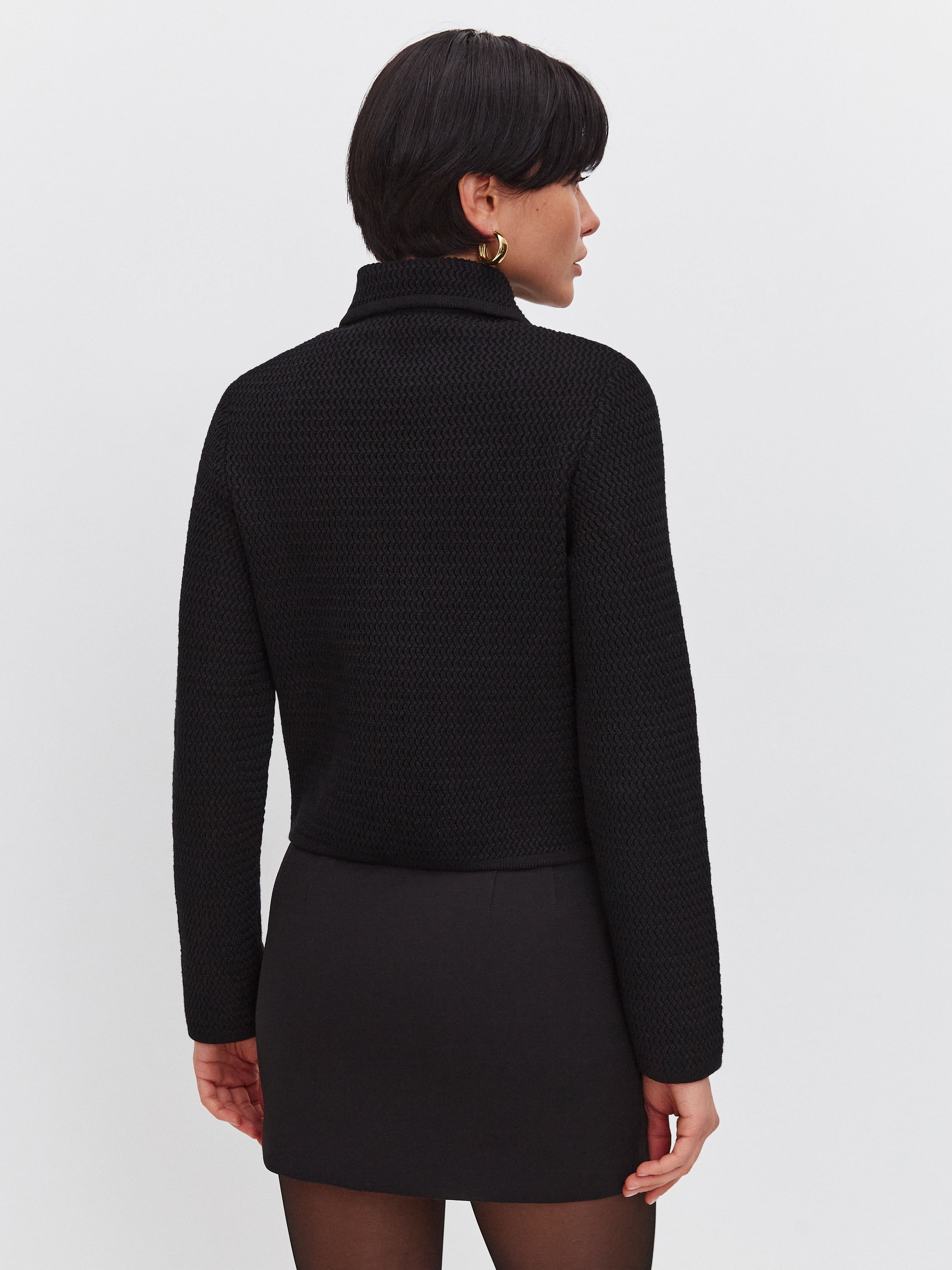Облегченный мини-жакет, пришедший на смену тяжелым пиджакам из текстиля. Модель в стиле элегантных 60-х выполнена из нежного длинноволокнистого хлопка. Рельефная текстура трикотажа оттеняется контрастным рядом пуговиц. Добавление в пряжу небольшого количества полиамида позволило отказаться от подклада, стабилизирующего форму изделия. В итоге кроп-жакет прекрасно держит силуэт и сохраняет изумительную воздухопроницаемость, что открывает ему дорогу в весенне-летний гардероб.