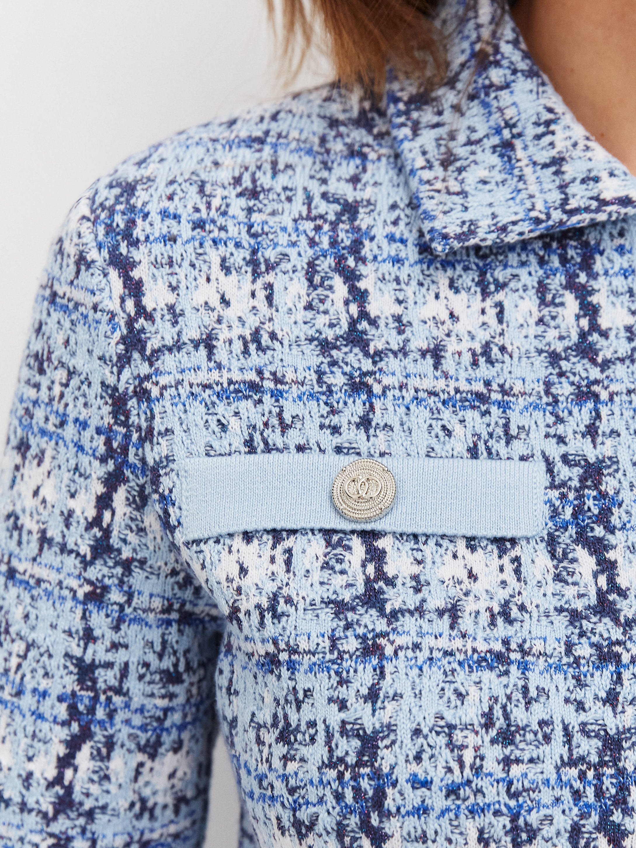 Шанель жакет трикотажный (голубой/синий, 46)