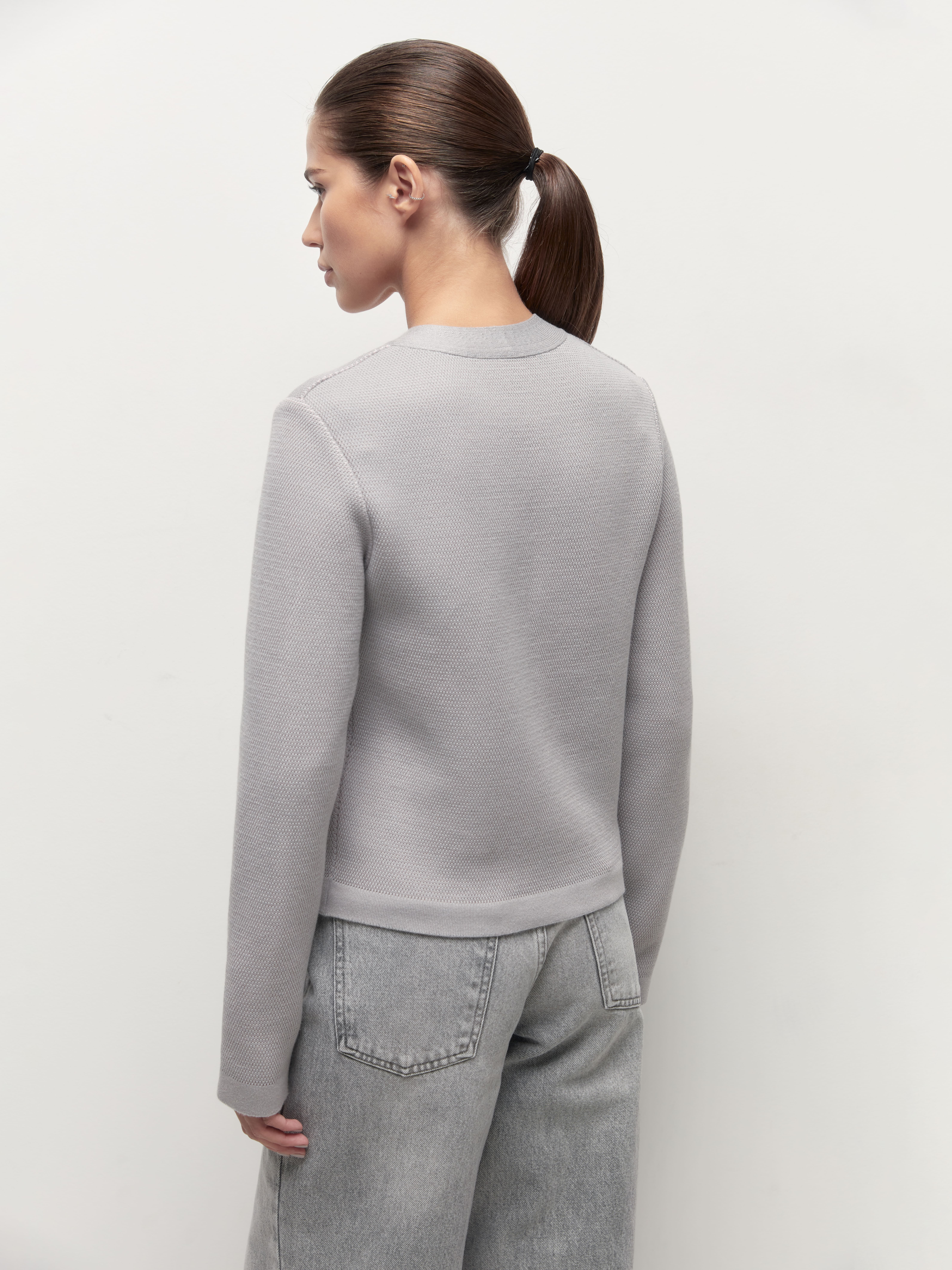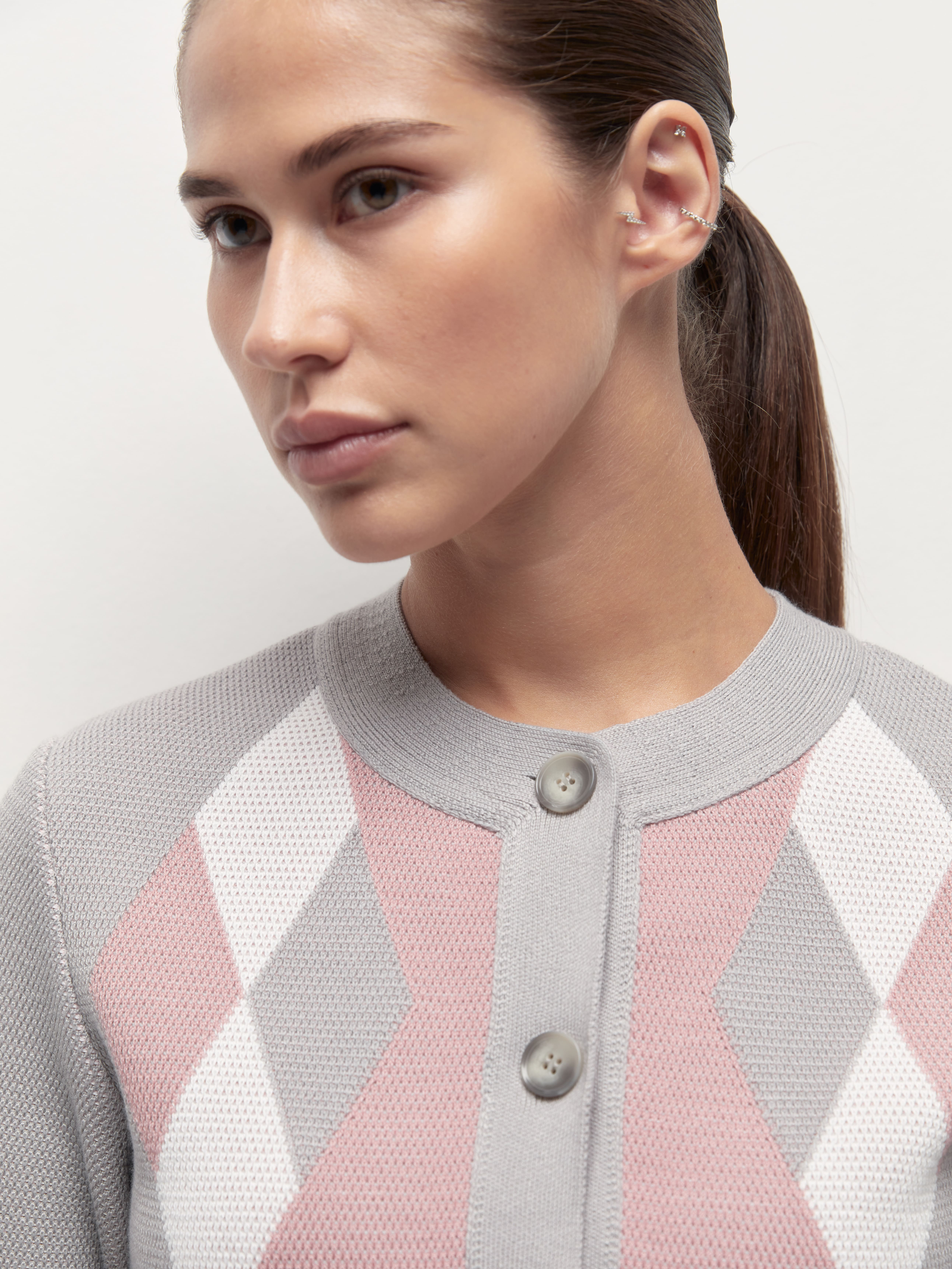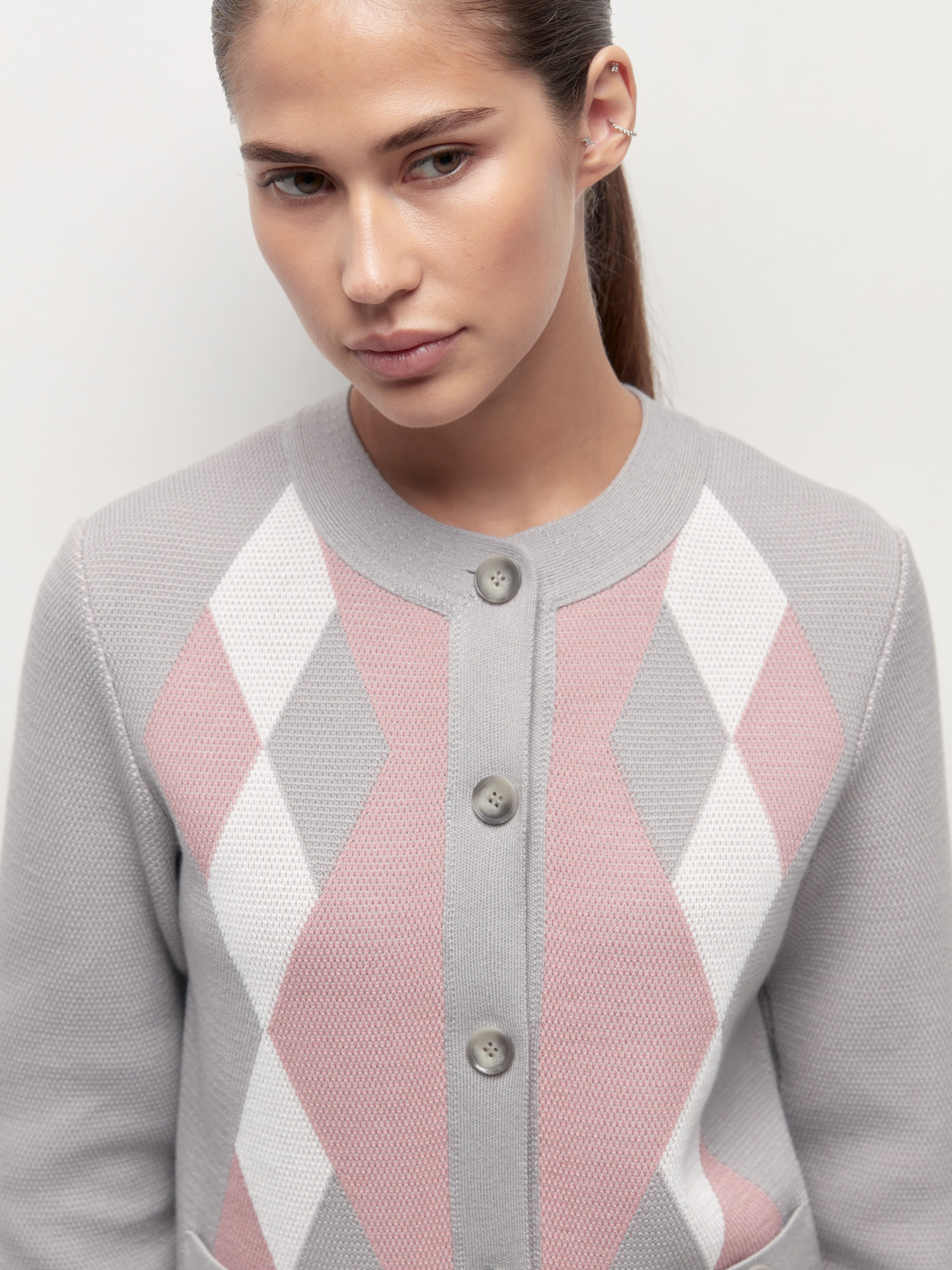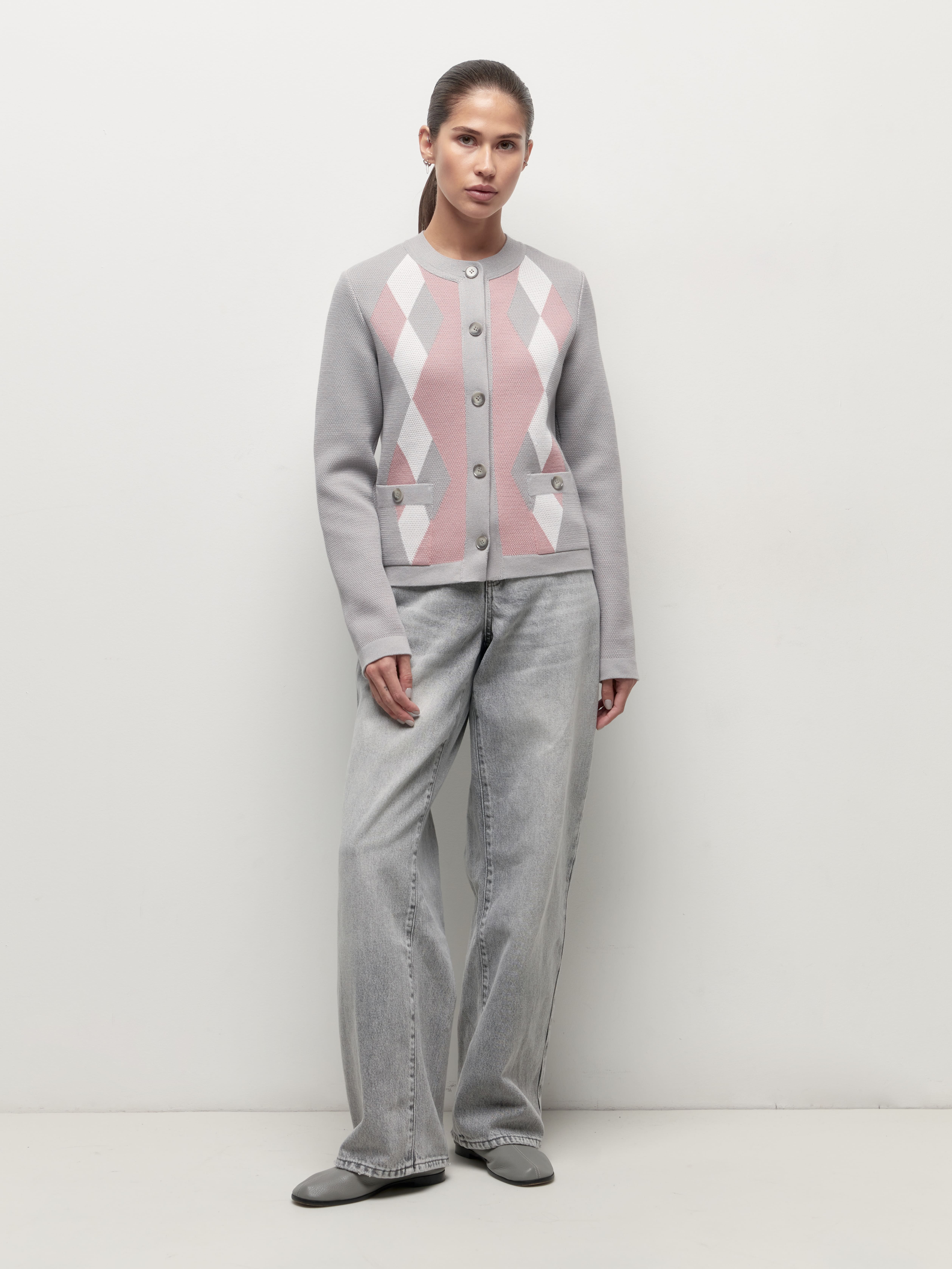 Весенний хлопковый жакет с геометрическим принтом, которого так не хватало вашим офисным капсулам. Мы создали его из премиальной пряжи с включением вискозы и слегка поиграли с техникой вязания. Присмотритесь к петелькам. Они располагаются послойно, что дает эффект объемной текстуры и формирует двойной оттенок трикотажного полотна. Модель доступна в нежных пастельных и строгих базовых расцветках.