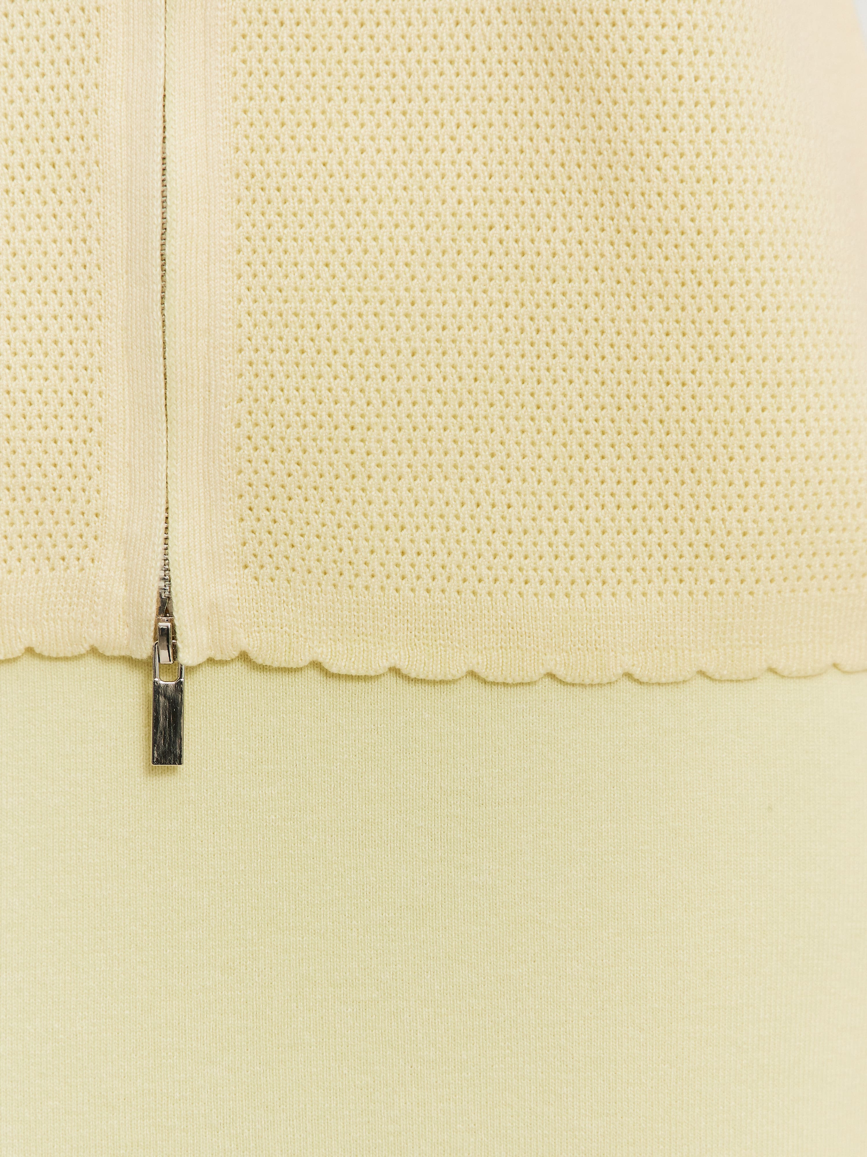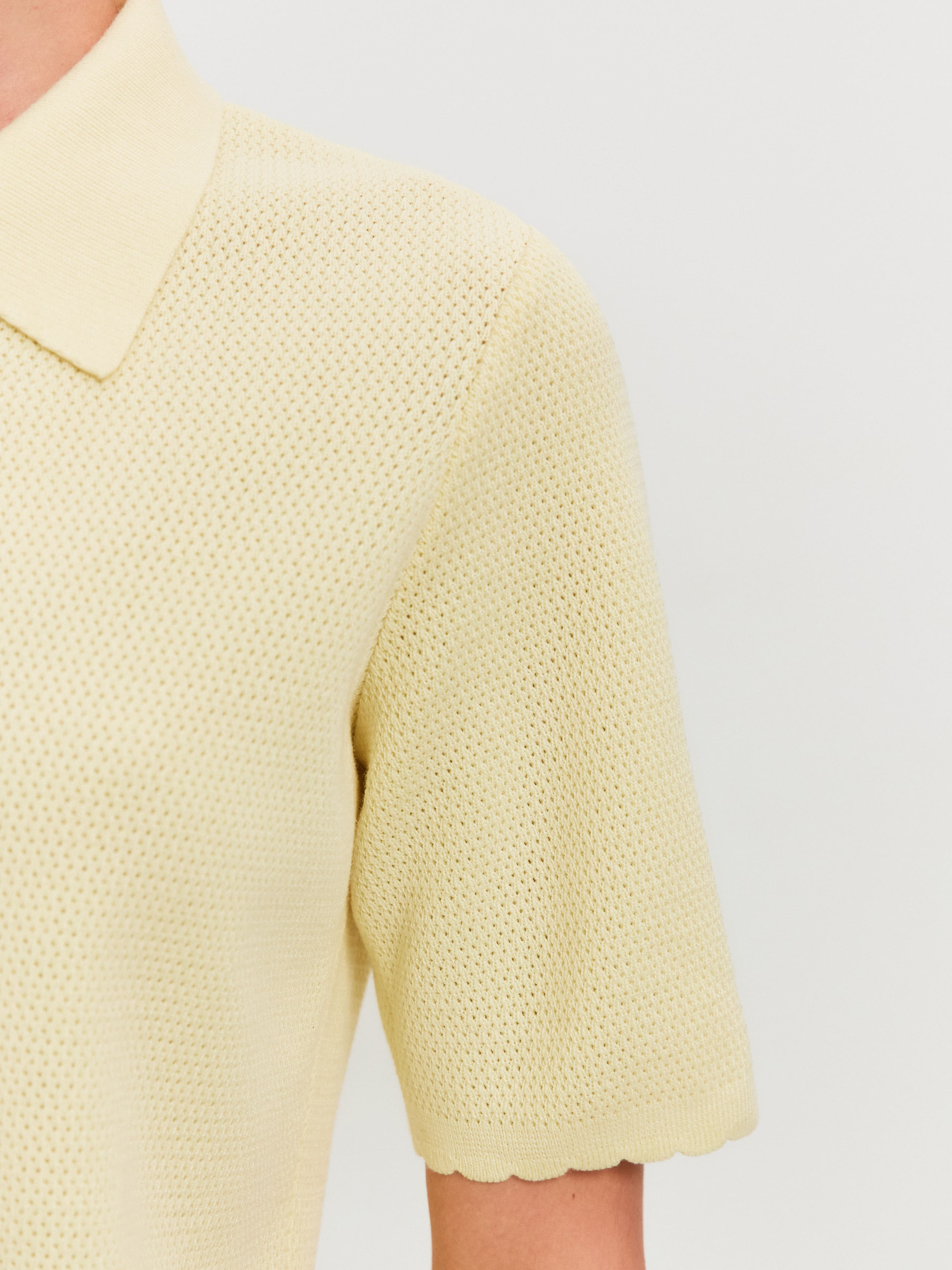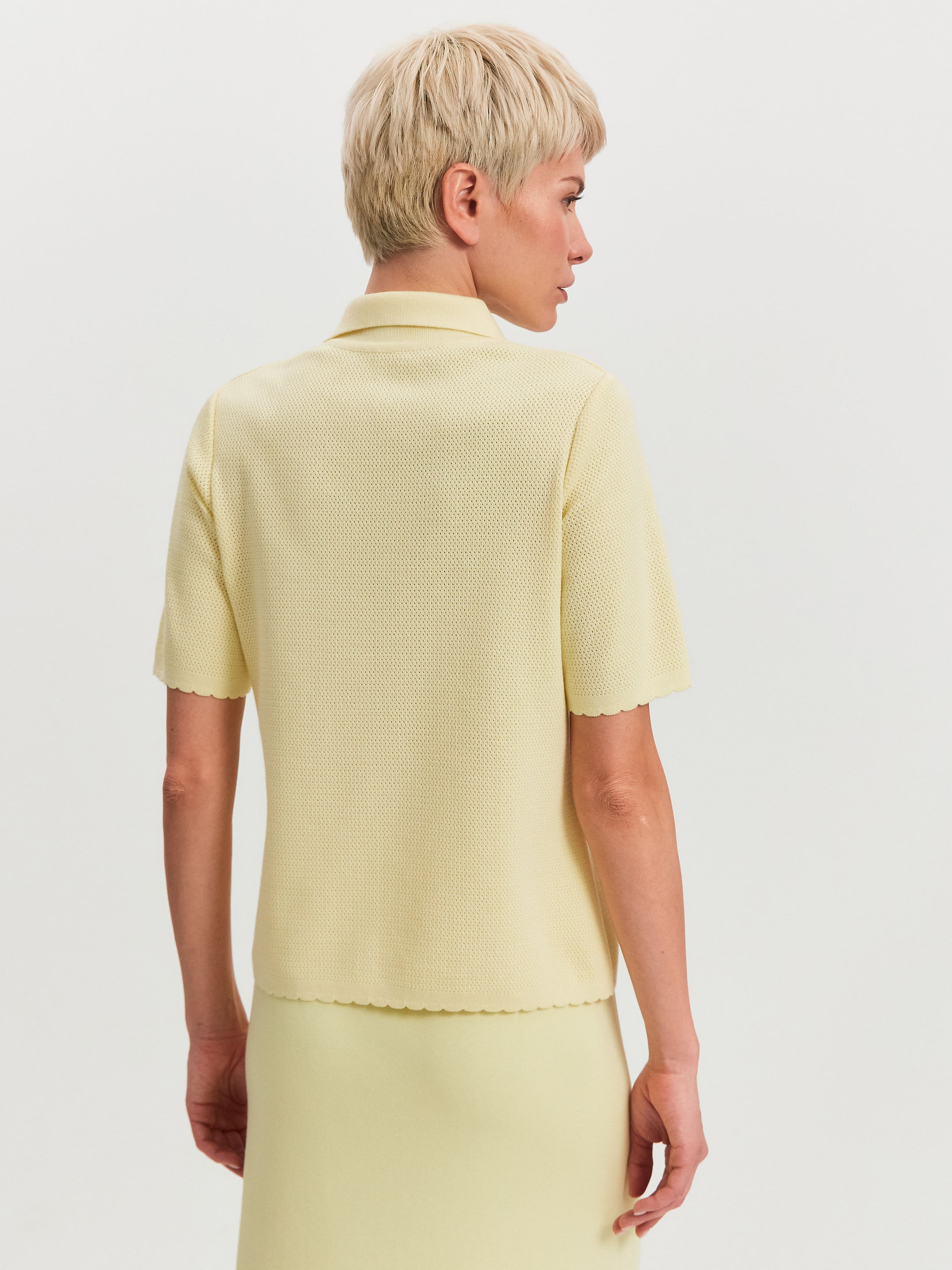 Модель летнего жакета с коротким рукавом и воротником в рубашечном стиле. Выполнена из ажурной хлопко-вискозы. Жакет на металлической молнии с двумя замками, которые расстегиваются в разных направлениях. Рукава, спинка и полочки декорированы кокетливым волнистым краем. За счет пористой структуры трикотаж не блокирует движение воздуха в волокнах и дольше сохраняет ощущение нежного холодка на коже. Оптимальная модель верха для отпускных и летних городских капсул, требующих предельно легких, дышащих вещей.