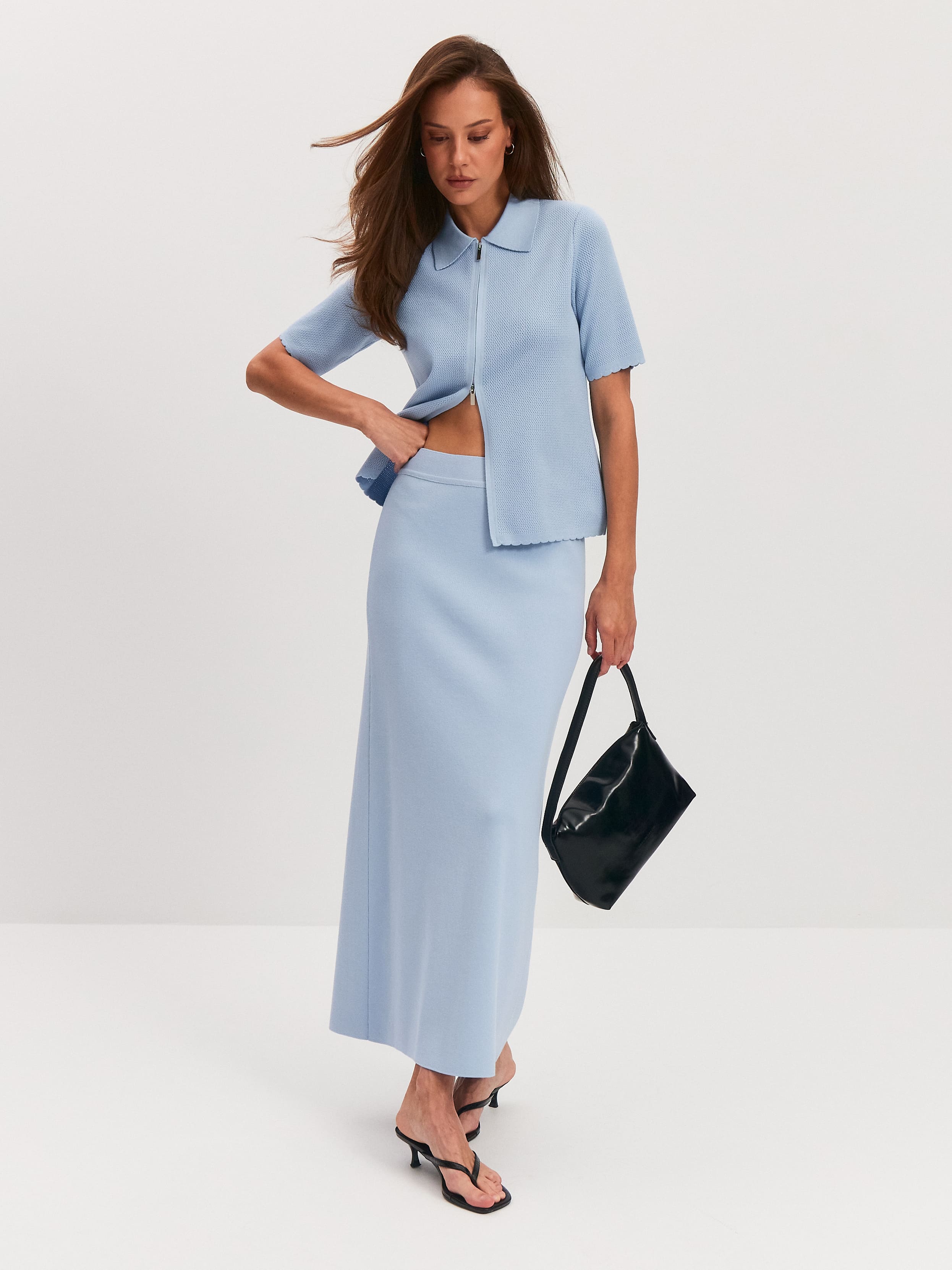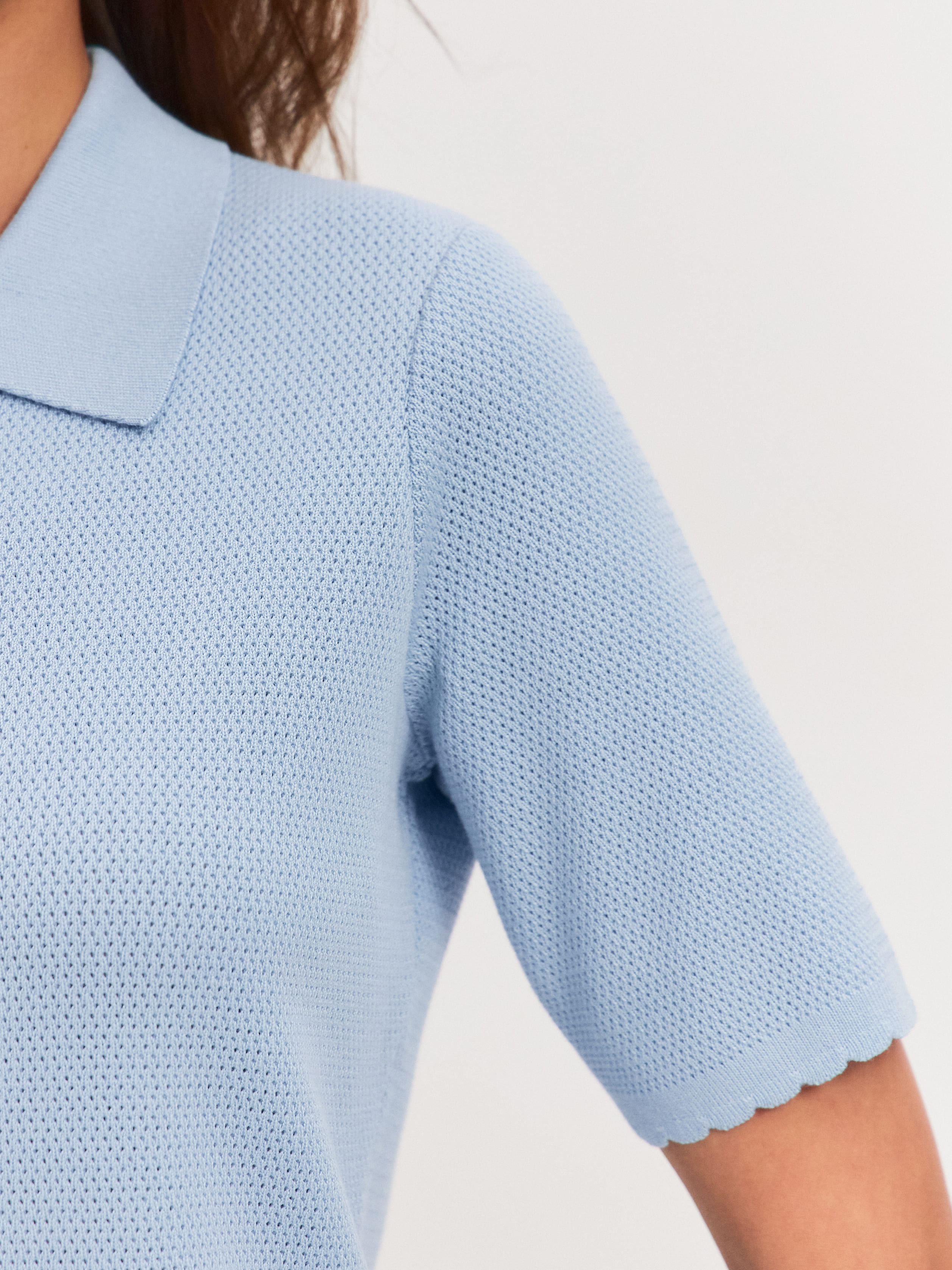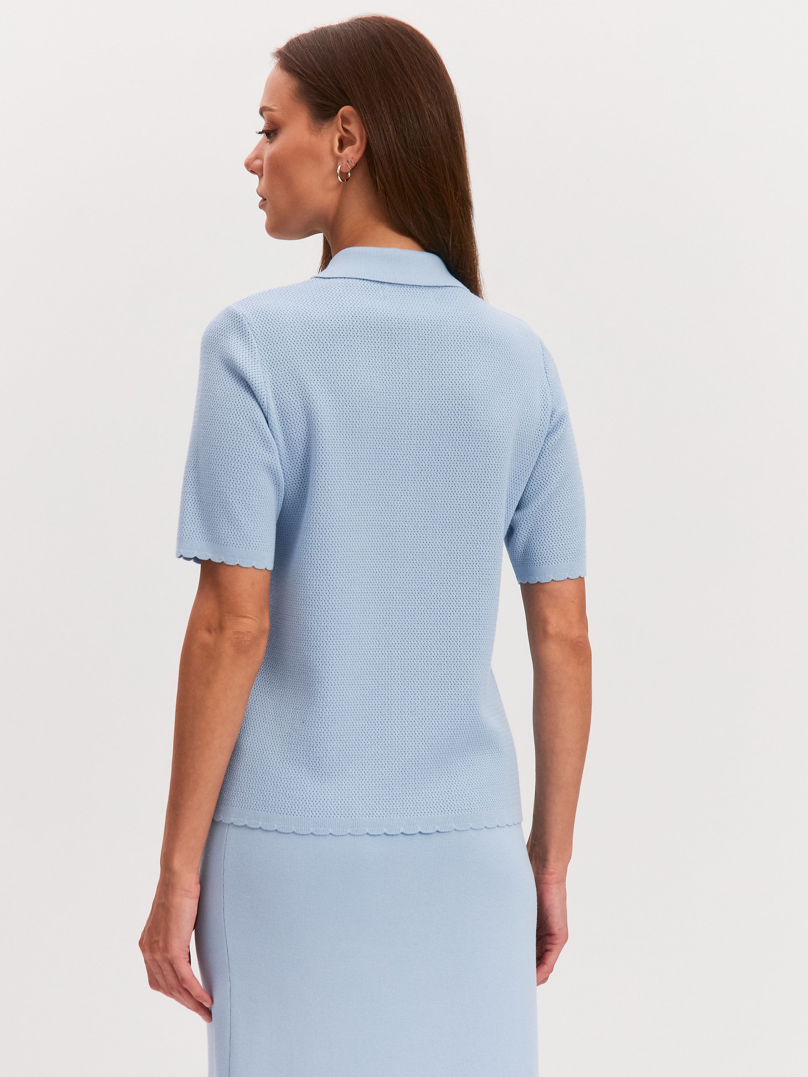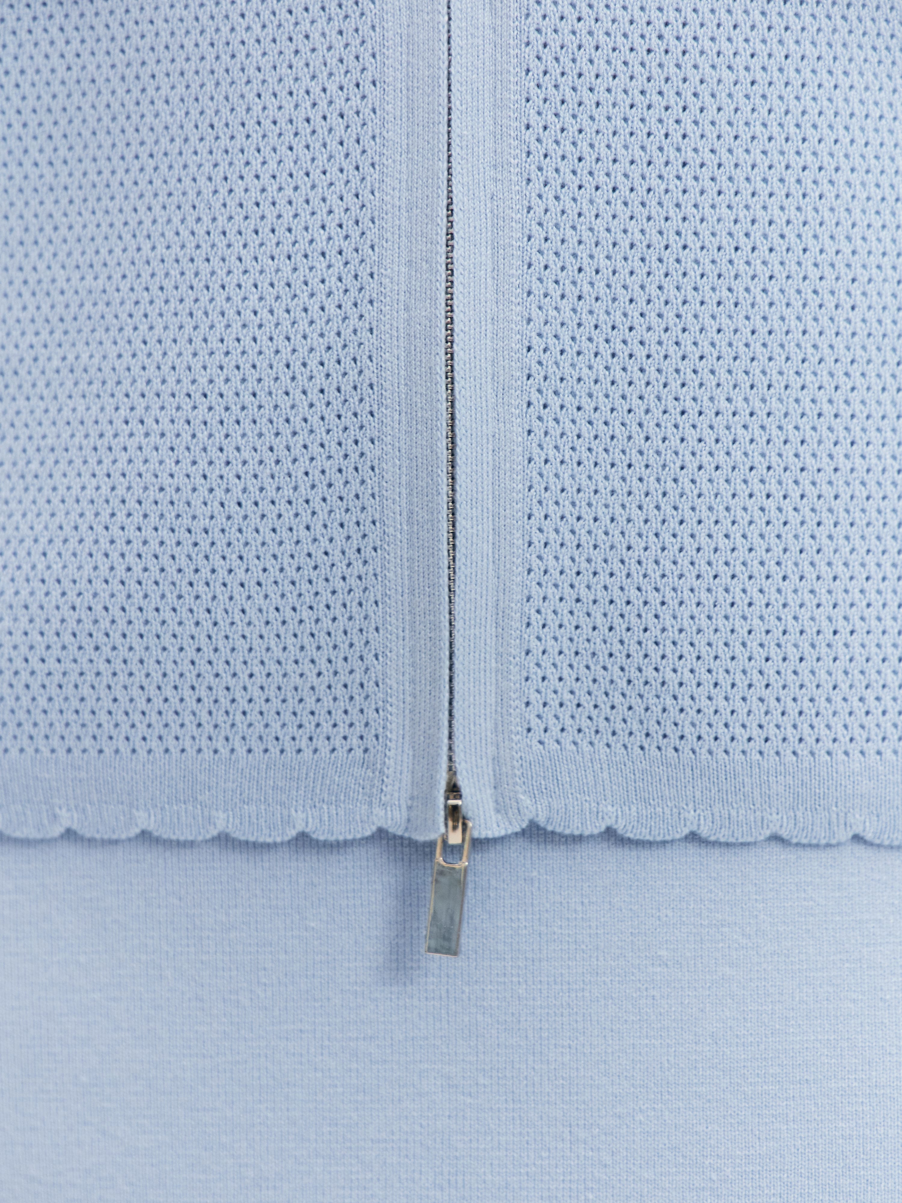 Модель летнего жакета с коротким рукавом и воротником в рубашечном стиле. Выполнена из ажурной хлопко-вискозы. Жакет на металлической молнии с двумя замками, которые расстегиваются в разных направлениях. Рукава, спинка и полочки декорированы кокетливым волнистым краем. За счет пористой структуры трикотаж не блокирует движение воздуха в волокнах и дольше сохраняет ощущение нежного холодка на коже. Оптимальная модель верха для отпускных и летних городских капсул, требующих предельно легких, дышащих вещей.