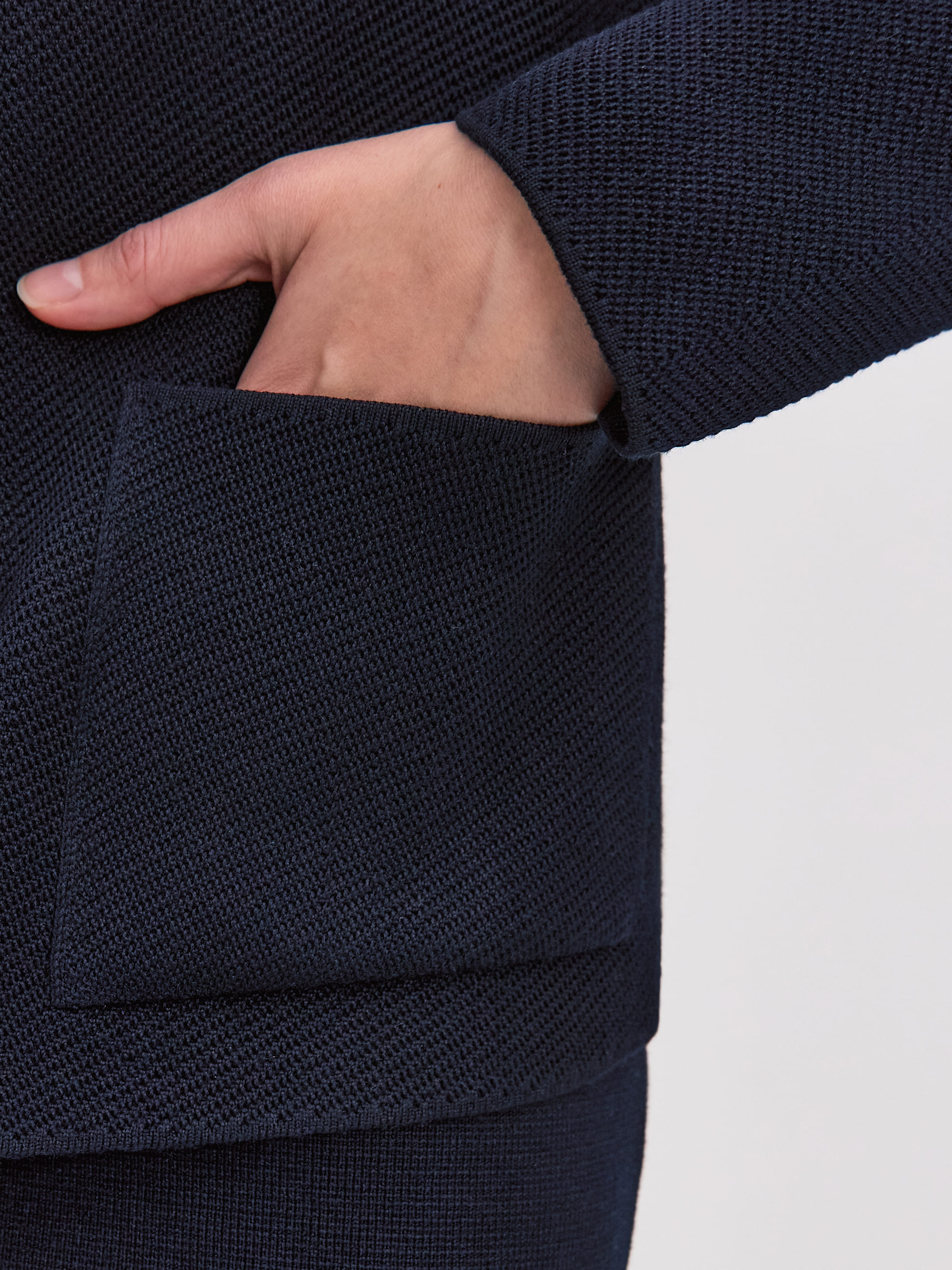 Тот самый жакет из рельефно-фактурного хлопка, который с легкостью пройдет офисный дресс-код. Полотно изделия обладает хорошей формоустойчивостью и приятной тяжестью – отличительной чертой натурального трикотажа. Жакет с полуприлеганием, классической длины. Отделан воротничком, акцентными карманами и рядом роговых пуговиц. Важно! Модель не дублируется подкладом, что делает ее удобной альтернативой строгому пиджаку. Рекомендуемые варианты сочетаний: с мягкими брюками Палаццо; с хлопковыми юбками Моне и Кейт.