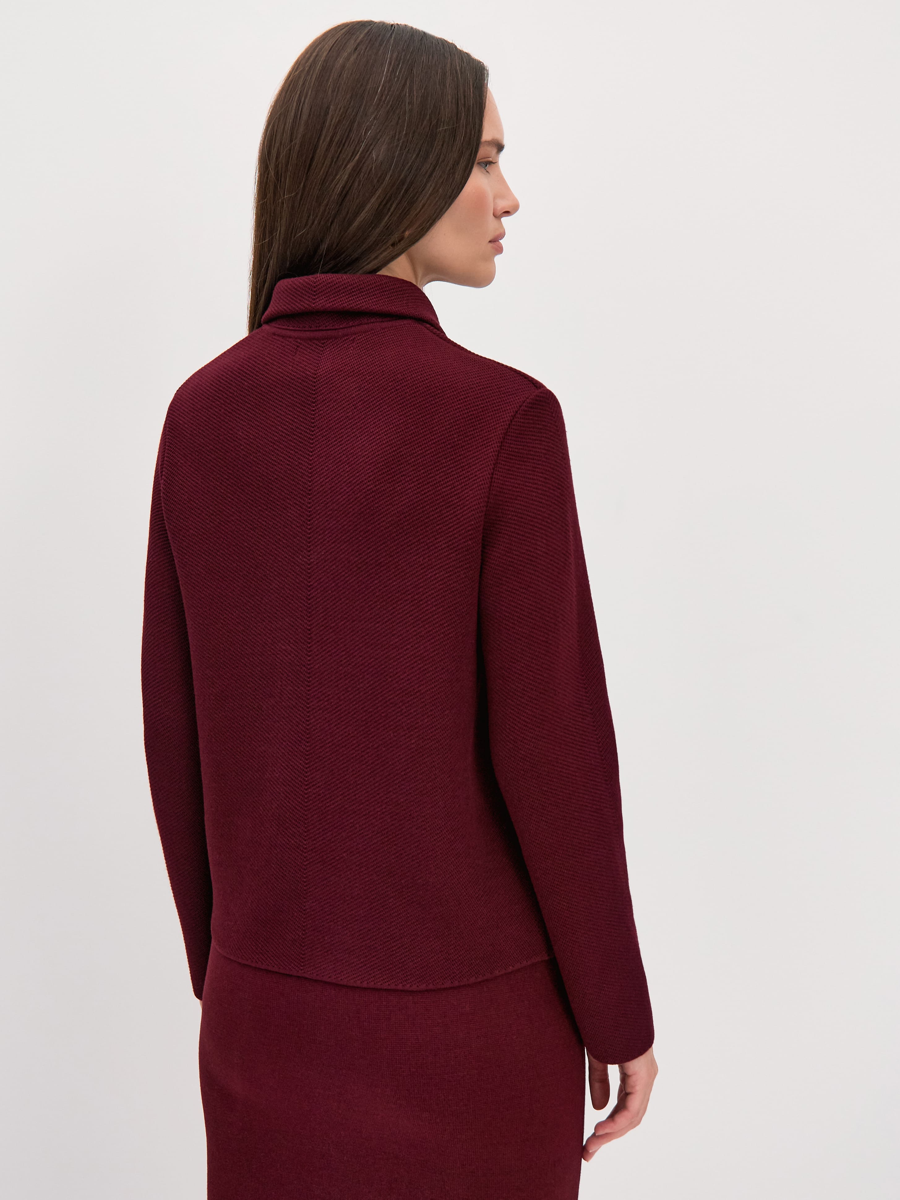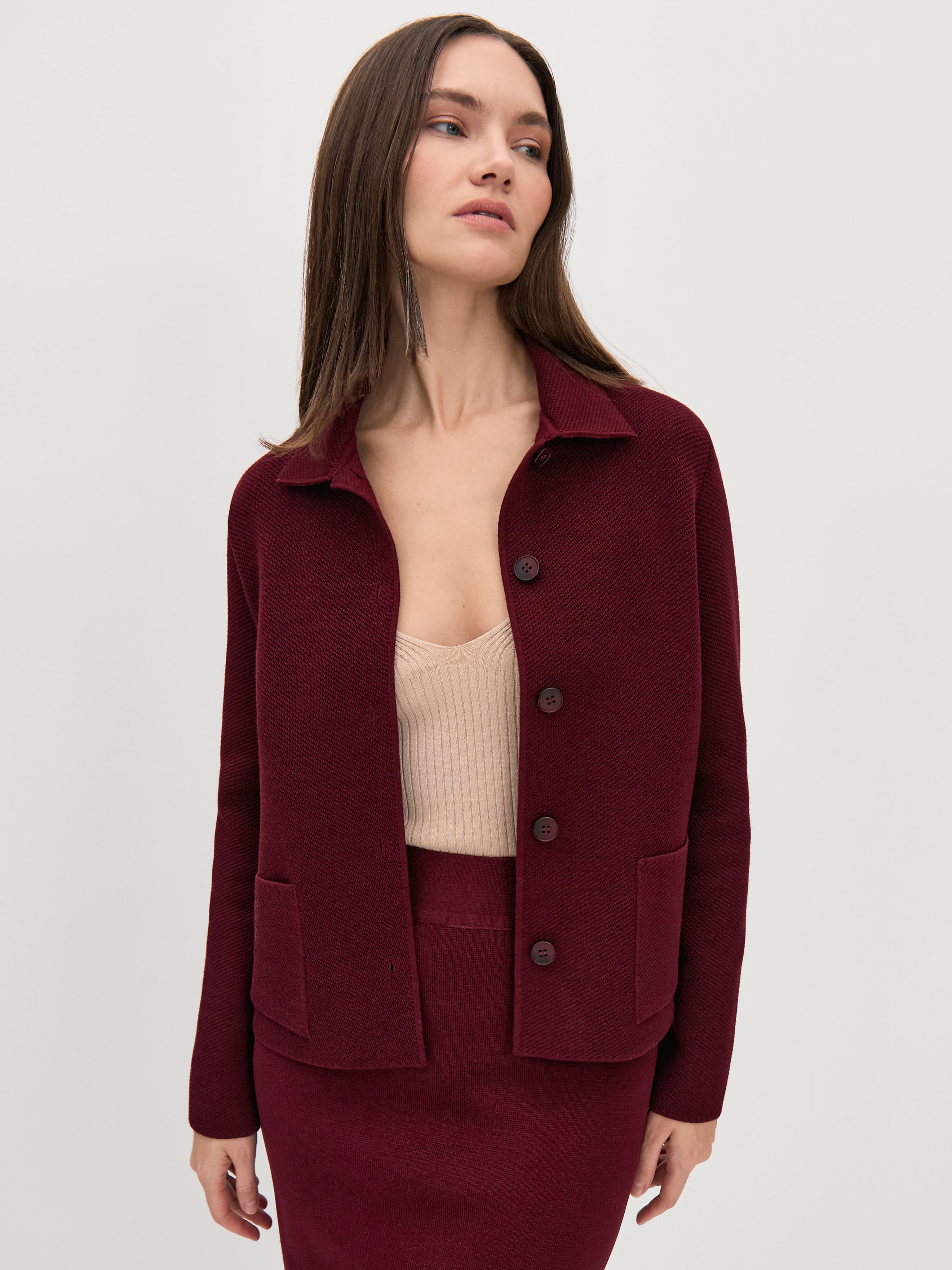 Тот самый жакет из рельефно-фактурного хлопка, который с легкостью пройдет офисный дресс-код. Полотно изделия обладает хорошей формоустойчивостью и приятной тяжестью – отличительной чертой натурального трикотажа. Жакет с полуприлеганием, классической длины. Отделан воротничком, акцентными карманами и рядом роговых пуговиц. Важно! Модель не дублируется подкладом, что делает ее удобной альтернативой строгому пиджаку. Рекомендуемые варианты сочетаний: с мягкими брюками Палаццо; с хлопковыми юбками Моне и Кейт.